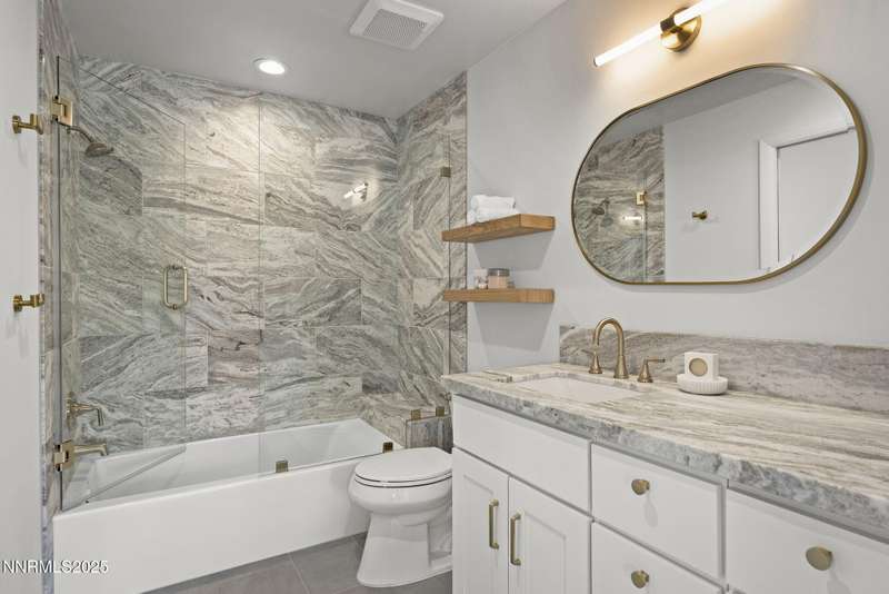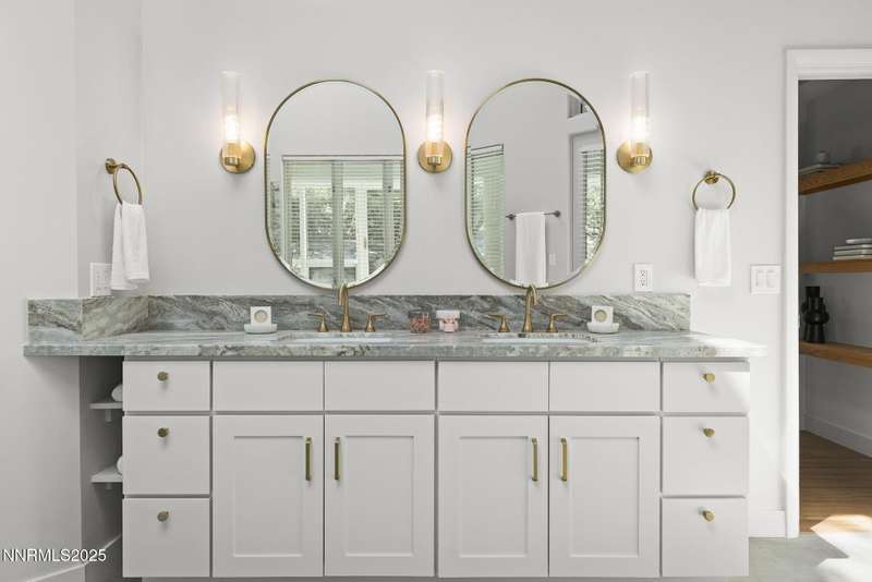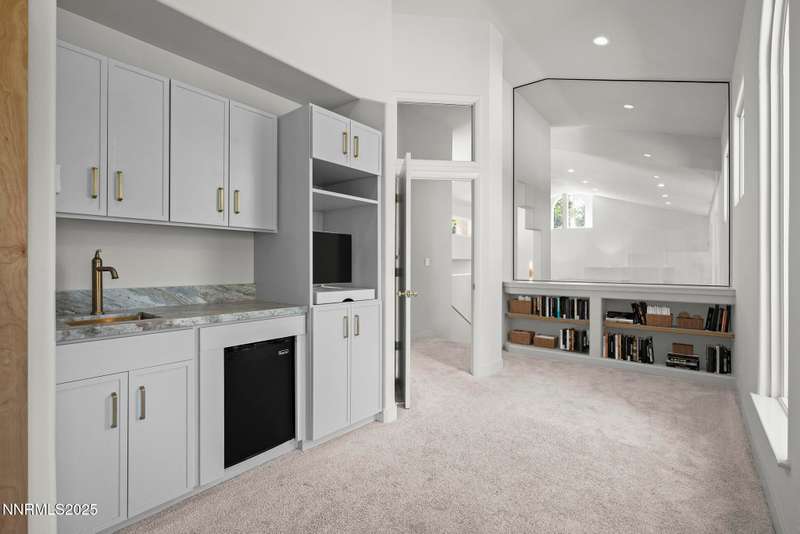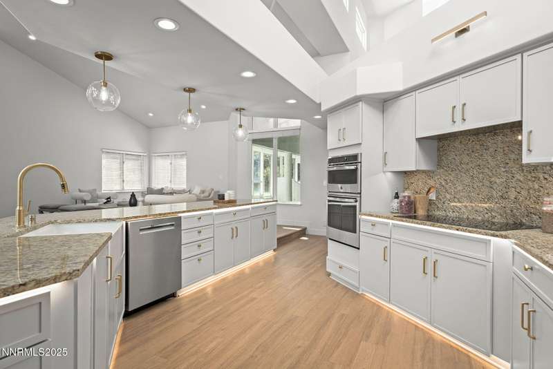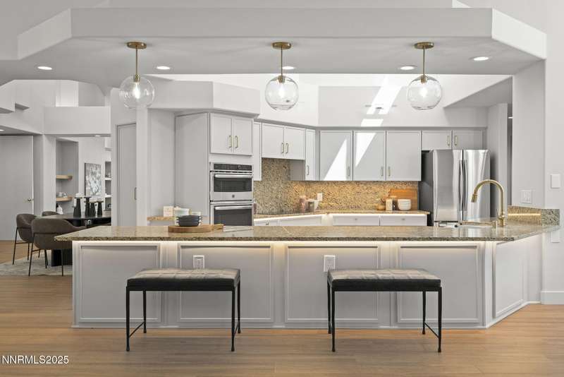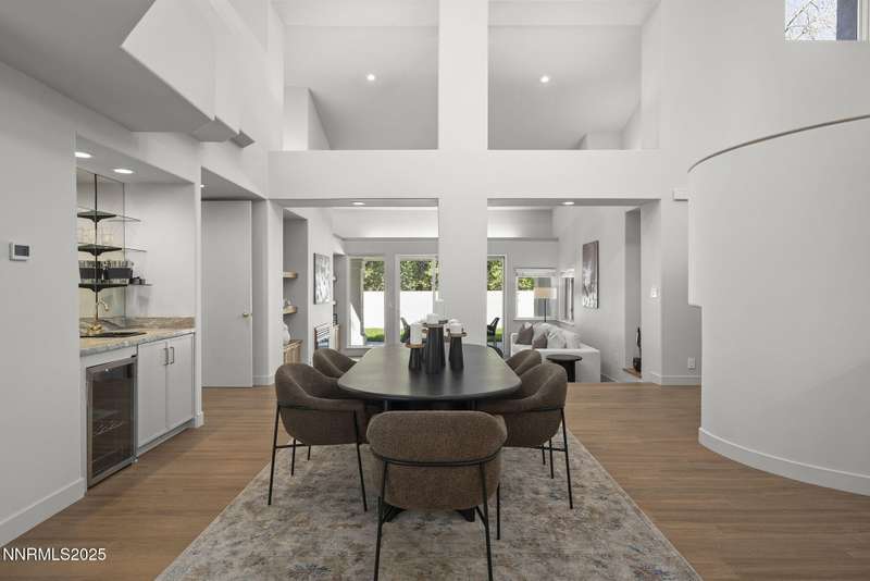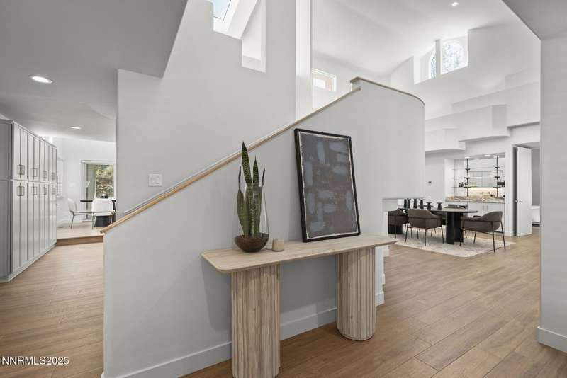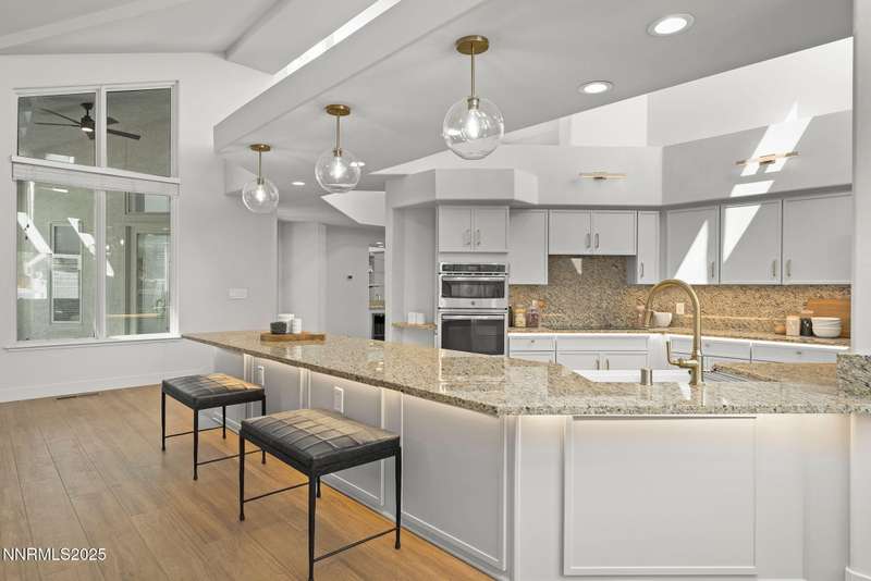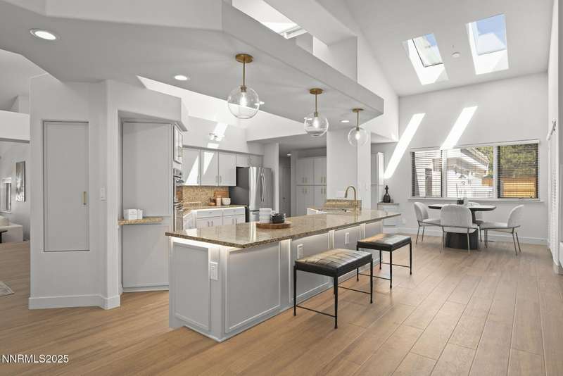 Extensively Renovated in the Heart of Caughlin Ranch. This newly reimagined custom home offers the perfect balance of outdoor entertaining and refined living. Nestled in one of Reno's most desirable neighborhoods, surrounded by miles of beautifully maintained walking and biking trails, tranquil ponds and open green space are just steps from your front door. Over the past year, this home has undergone a stunning transformation with over six hundred thousand dollars in recent renovations and improvements—every detail chosen to blend modern sophistication with the natural beauty of its setting. Soaring cathedral ceilings rise above expansive living areas anchored by two elegant fireplaces. Walls of glass and skylights fill the space with natural light, framing views of mature trees and the mountains beyond. Multiple covered patios create seamless indoor-outdoor living—ideal for hosting gatherings, enjoying a quiet morning coffee, or savoring an evening glass of wine. The stunning chef's kitchen flows effortlessly into the great room, creating a warm hub for daily living. A generous island invites conversation, while refinished cabinets, designer lighting, a premium induction cooktop, farmhouse sink, and custom pantry combine style with function, making cooking and entertaining a joy. On the main level, the oversized primary suite offers a serene retreat. Spa-like finishes include a double vanity, luxurious soaking tub, and custom shower. A remarkable two-story walk-in closet provides abundant storage and a touch of architectural drama. Upstairs, three additional bedrooms and two full bathrooms ensure comfort and privacy for family or guests. A versatile enclosed loft—complete with wet bar and beverage fridge , offers the perfect space for a home office, playroom, or additional lounge area. The exterior is equally impressive, with fresh stucco and paint, new and thoughtfully designed landscaping, and a custom wood and iron entry gate marking the entry. A lush lawn, enclosed by a privacy stucco wall, creates a secure and tranquil outdoor escape. Caughlin Ranch residents enjoy exceptional community amenities, including a recreation center, tennis courts, and swimming pool—all just moments away. With coffee shops, restaurants, top rated schools and shopping nearby, this home offers unmatched convenience alongside its peaceful, trail-connected setting.