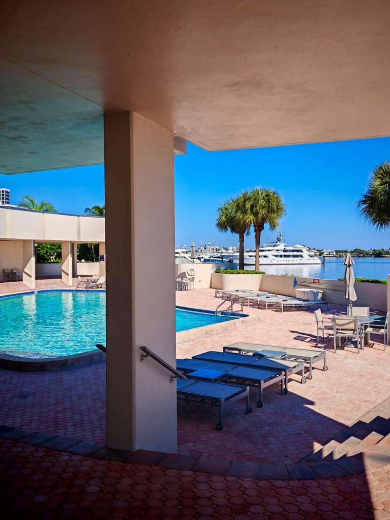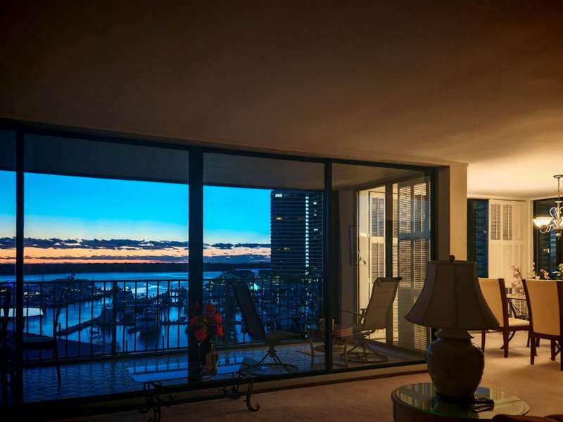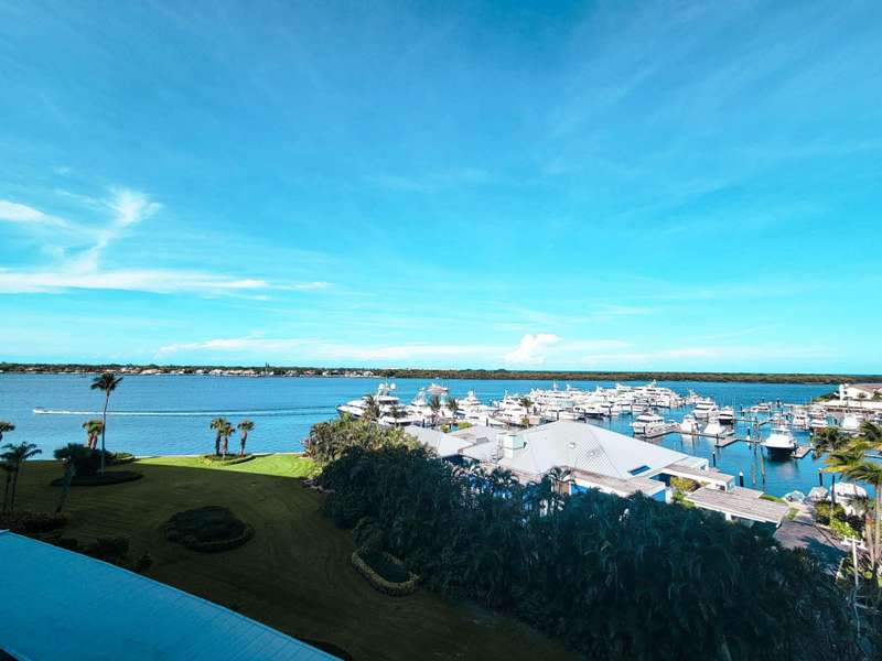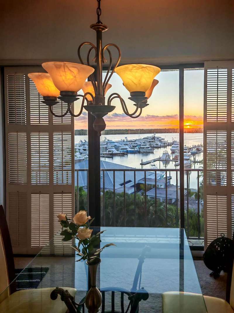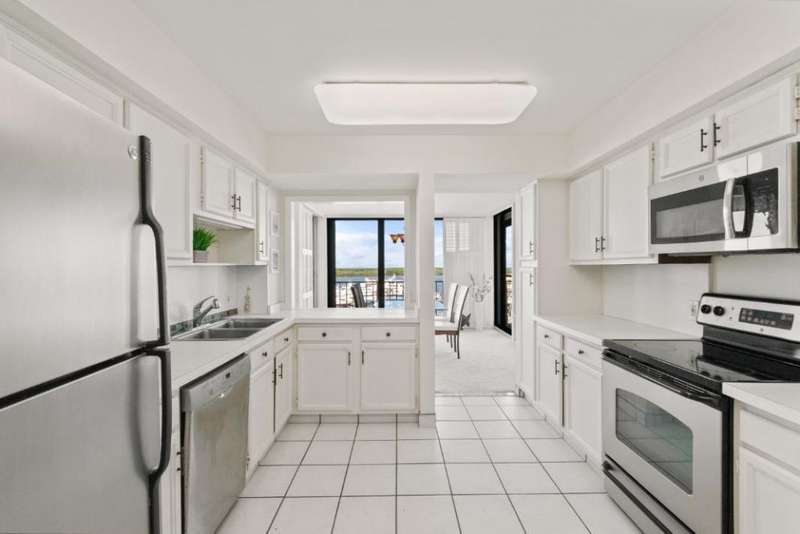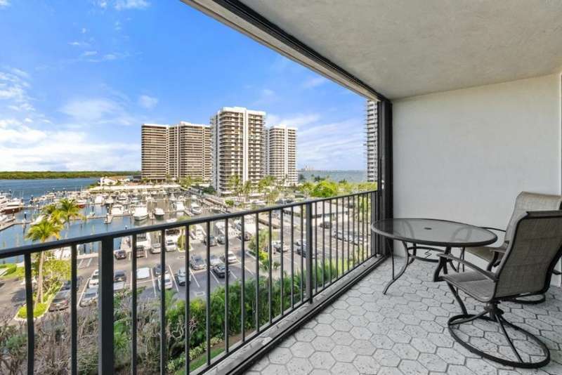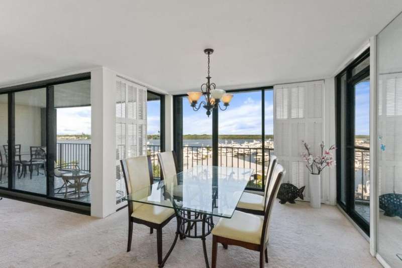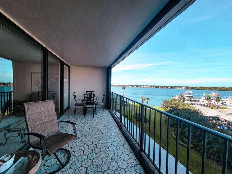 Amazing views of the Ocean, Bay, and Marina from this deluxe floor plan condo in Old Port Cove. Enjoy two covered balconies, one off the spacious 19x18 living and dining room, and another off the large master bedroom. Formal dining area offers beautiful water views, and the kitchen features stainless steel appliances and is partially open to the dining space. The master suite includes private balcony access and a spacious master bathroom with dual sinks, a soaking tub, and a walk-in shower. The guest bathroom also has a walk-in shower. Full-size washer and dryer inside the unit. Old Port Cove is a secure, beautifully maintained condo and marina community with an on-site restaurant. Amenities include a lap pool, fitness center, saunas, community room, and more. Conveniently located near shopping, dining, golf, walking paths, and the beach.