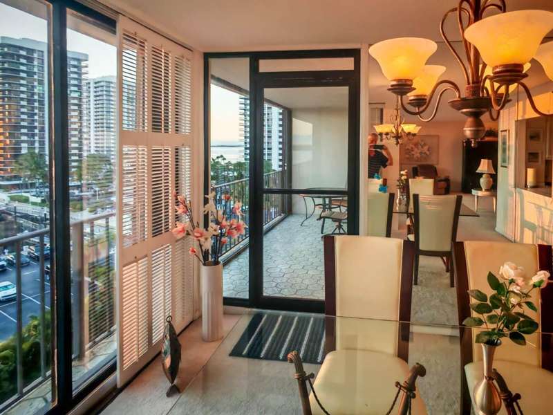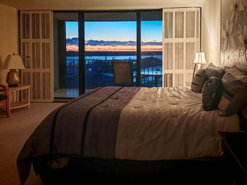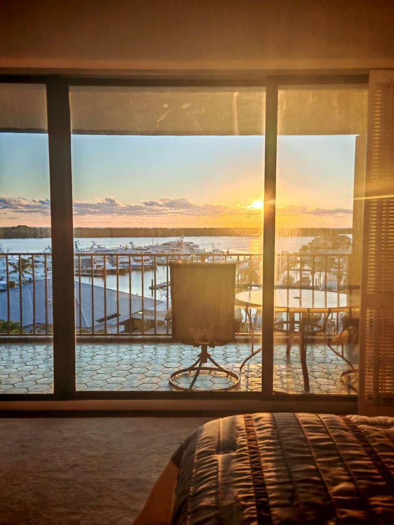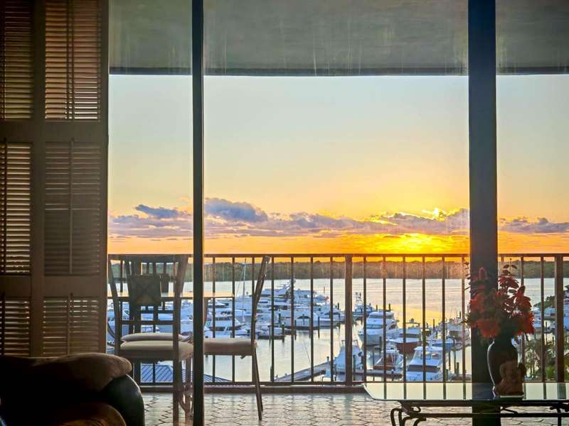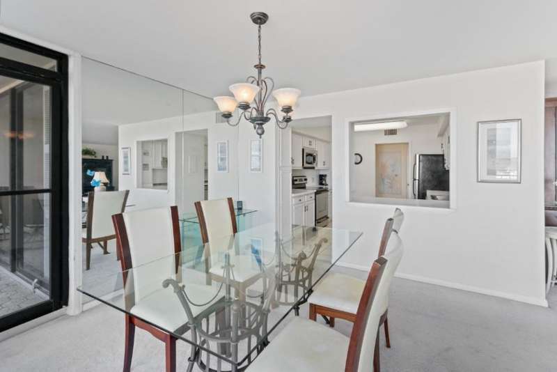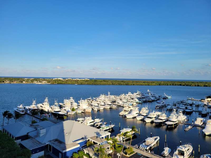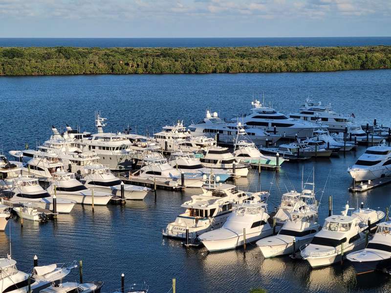 Amazing views of the Ocean, Bay, and Marina from this deluxe floor plan condo in Old Port Cove. Enjoy two covered balconies, one off the spacious 19x18 living and dining room, and another off the large master bedroom. Formal dining area offers beautiful water views, and the kitchen features stainless steel appliances and is partially open to the dining space. The master suite includes private balcony access and a spacious master bathroom with dual sinks, a soaking tub, and a walk-in shower. The guest bathroom also has a walk-in shower. Full-size washer and dryer inside the unit. Old Port Cove is a secure, beautifully maintained condo and marina community with an on-site restaurant. Amenities include a lap pool, fitness center, saunas, community room, and more. Conveniently located near shopping, dining, golf, walking paths, and the beach.