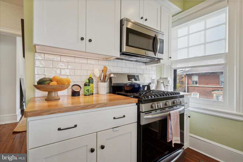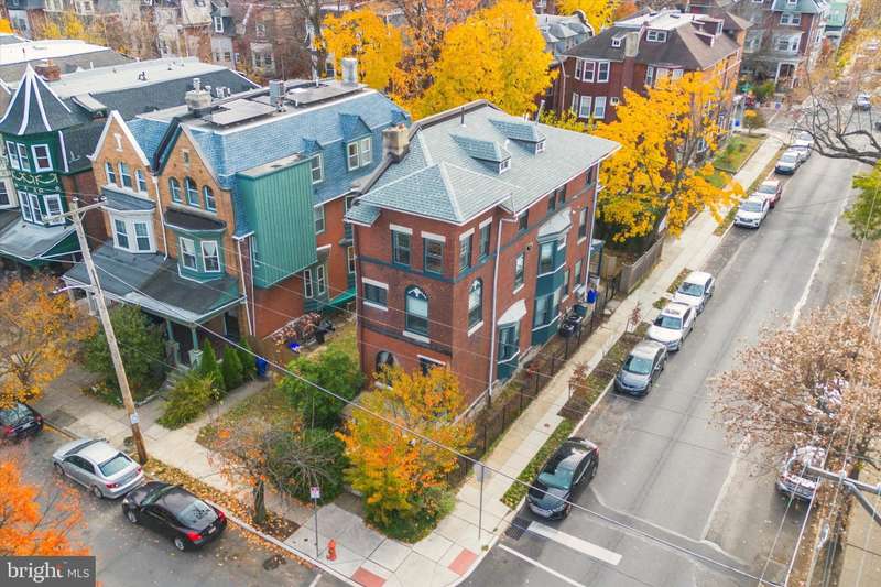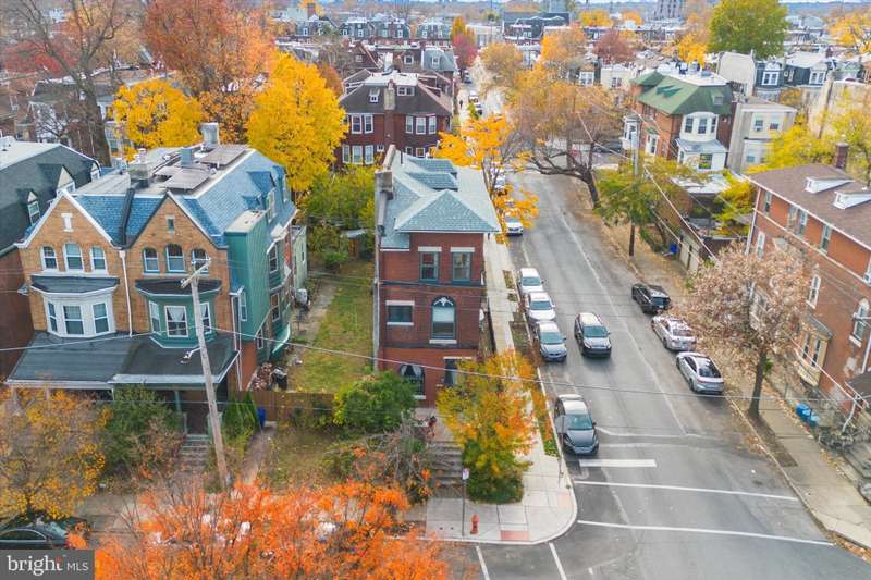 This majestic three-unit corner property with a coveted garage is a great candidate for an owner occupant looking for a long-term investment and home in one, a house hack for friends seeking a cooperative lifestyle while preserving privacy with separate living quarters, or as a straightforward turnkey addition to an investor's portfolio-and the potential for a future condo project comes to mind for any of the above. All three apartments are spacious and brimming with classic West Philly charm; units 2 and 3 were totally renovated for two of the owners to occupy, while the first-floor unit received a nice facelift, making it uber-rentable. Unit 1 has private front porch access, a vestibule entrance and large coat closet, newly refinished original pine floors throughout; living room with oversized arched window; a bay window with bench in the renovated kitchen; bathroom with mid-mod black and yellow tile; in-unit laundry; and two good-sized bedrooms-one with a bay window and the other with access to the rear porch and yard. The second and third floors have both been renovated with stylish, high-quality finishes, and both feel like stepping into a lifestyle mag, albeit in notably different ways. Unit 2, which has new Bruce oak floors that run throughout, has a more modern sensibility, with Scandinavian-inspired finishes that blend nicely with the original details. The open-plan living space with two exposures has a decorative fireplace with original mirrored mantel, a sweet set of leaded glass windows along with a large closet, and a sleek kitchen with breakfast bar and stainless steel appliances including a GE French door fridge and a Frigidaire five-burner range with architectural hood. Green Muuto pendant lights and cabinet hardware are set against white quartz countertops and ample white Shaker-style cabinets; there's also an enormous pantry closet. The center room has another sweet leaded glass window, an extra-large closet and a full wall of built-in shelving. It is currently used as a den; all it needs for total privacy is a set of barn or double doors. The large rear bedroom is flooded with light from two exposures. A hallway laundry closet with GE frontloaders and a mid-mod pink and black bathroom with original cast iron tub complete this space. Unit 3, with a more traditional feel, also offers a large open-plan living space with two exposures and a gorgeous U-shaped kitchen. Here original pine floors run throughout and the living room features a charming beadboard built-in bookcase and coat closet. This kitchen has classic globe pendant lighting, Frigidaire stainless steel appliances featuring a five-burner range and French door fridge, warm butcher block countertops and white polished ceramic subway tile backsplash. The good-sized middle bedroom with double windows has a large closet, and the rear has more than enough space for a king-size bed, a large closet and two exposures. Off the hallway is access to the standing-height attic, a large utility closet with GE frontloading laundry and a mid-mod green tile bathroom with pedestal sink and original cast iron tub. The basement with utilities and additional storage is accessed directly from the charming rear yard, which is enclosed at the rear by the detached one-car garage. This lovely building with two mature cherry trees (one edible!) on a lovely block of Hazel Ave is in an ideal Cedar Park location that's just a hop, skip and a jump to Baltimore Ave.