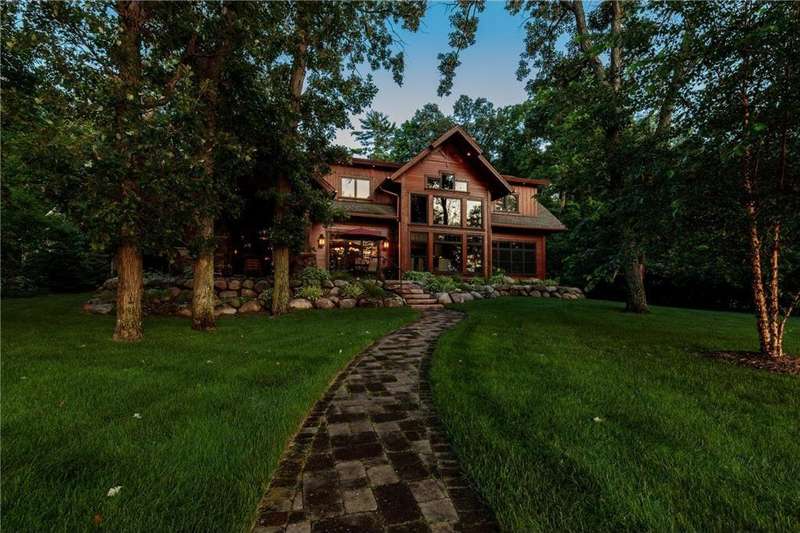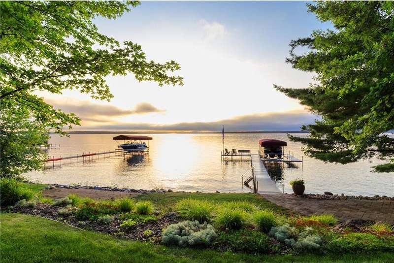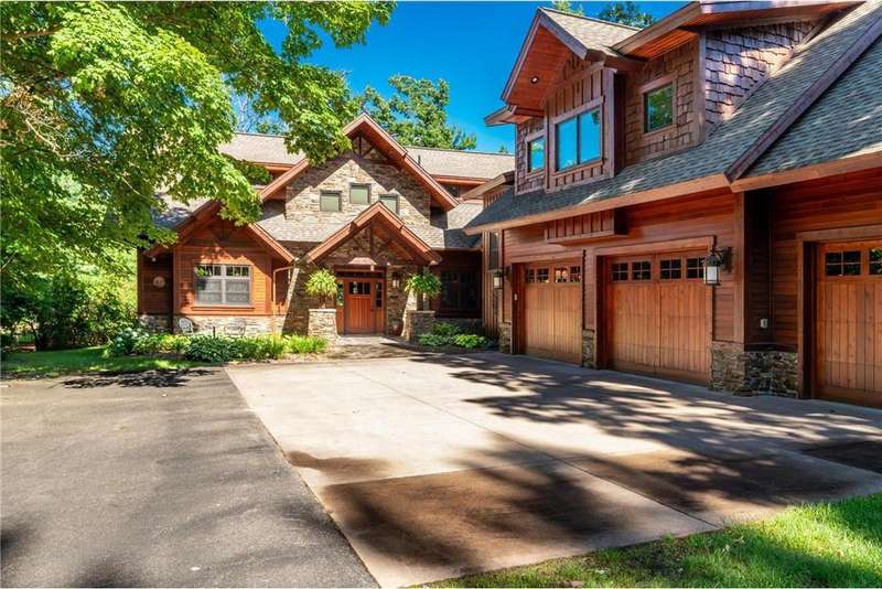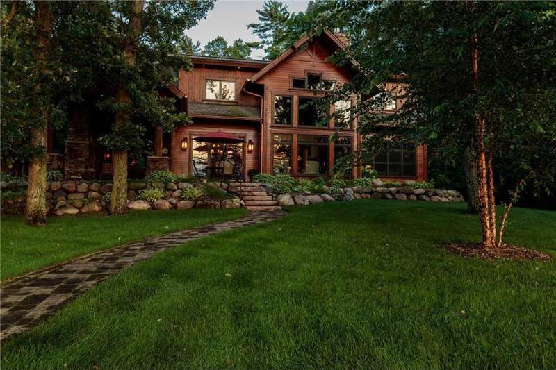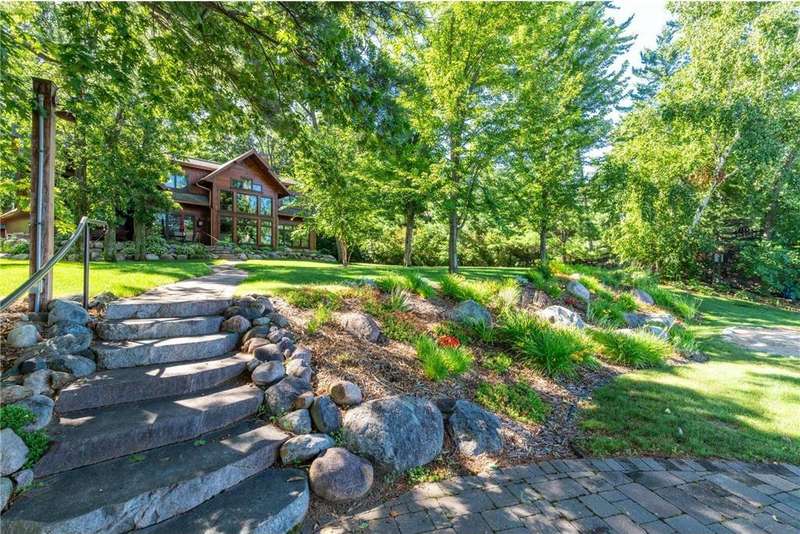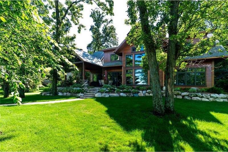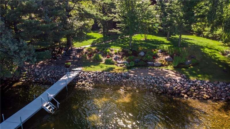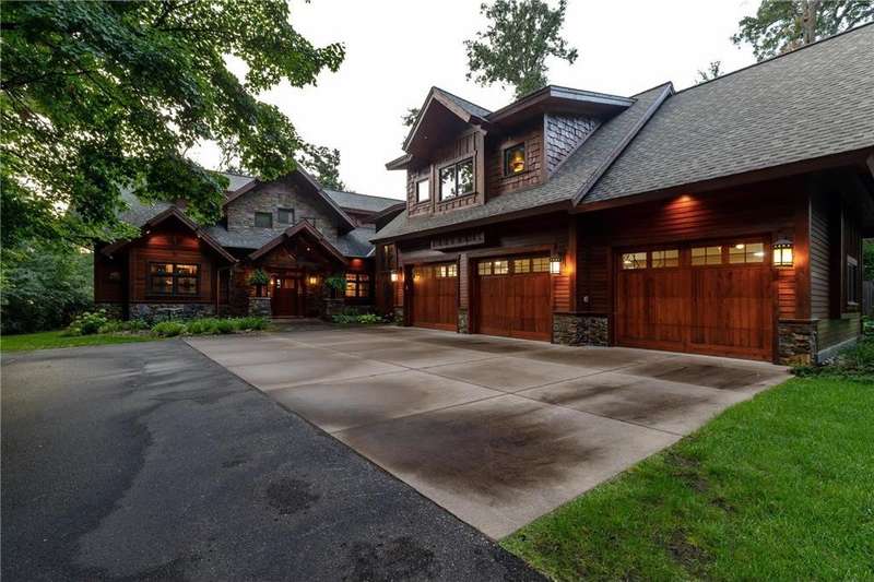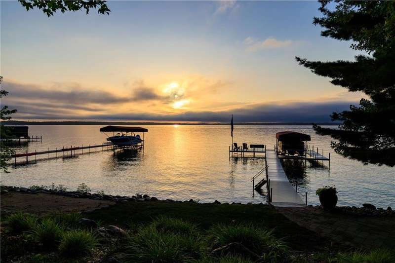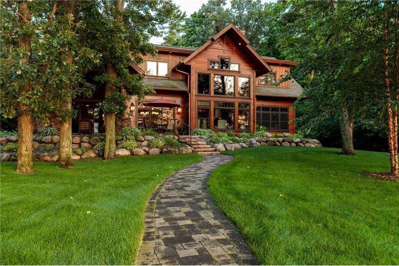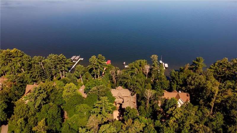 Nestled amidst the enchanting landscape of Gull Lake, your dream of indulging in luxurious lake life finds its realization at this exceptional estate. A masterpiece of architectural brilliance, this exquisite residence is a testament to the visionary design of RemWhirl and the unparalleled craftsmanship of Wes Hansen Builders. Spanning an impressive 5,000 square feet, this home seamlessly marries rustic charm with modern elegance, encapsulating architectural styles that include exposed beams, elegant stone arches, and distressed hardwood floors, all contributing to its timeless allure. As you step through the front door, the grand foyer welcomes you, instantly revealing beautiful views of the lake. A haven of tranquility awaits you in the spa-like primary suite. This sanctuary offers an unparalleled retreat with a wall of windows that frame the serene lakeside views. The spacious bathroom is a true oasis, featuring a soaking tub and a walk-in shower, perfect for unwinding after a day on the water. The living room is a symphony of design and comfort, where expansive lakeside windows draw the eyes to the breathtaking views. Anchoring this space is a floor-to-ceiling fireplace, a stunning centerpiece that exudes warmth and coziness, creating an inviting atmosphere for family gatherings or quiet evenings by the fire. The heart of the home, the kitchen, is a culinary artist's dream. Its beauty is underscored by a custom range hood that serves as a focal point, complemented by gleaming granite countertops and the practicality of double ovens. A striking copper light fixture hangs over the island, adding a touch of sophistication and charm. Adjacent to the kitchen, the dining room opens up to a picturesque patio and covered patio, where a magnificent stone fireplace beckons you to savor the Minnesota summers in style. The den provides an ideal space for handling business matters with ease and efficiency, allowing you to balance work and leisure seamlessly. Ascend to the upper level, where three additional bedrooms await, each thoughtfully designed to ensure that hosting family and guests is a pleasure. These guest quarters are complemented by the elegantly appointed bathrooms, ensuring every visitor enjoys the utmost comfort. The bonus room is a versatile haven, destined to become a favorite gathering spot. With two built-in beds, ample space for games, and a wet bar, it is perfectly suited for entertaining and enjoying quality time with loved ones. For those with a penchant for vehicles or hobbies, the finished three-stall attached garage is a dream come true. Meanwhile, the detached garage offers abundant storage for recreational items and features a climate-controlled room that can be customized to suit your desires—be it a man-cave, she-shed, or an additional guest retreat. All of this magnificence is cradled on a meticulously manicured lot, adorned with mature pines that whisper in the breeze. The property boasts excellent elevation to the lake, granting access to a pristine sandy shoreline that is perfect for sunbathing, swimming, or simply soaking in the natural beauty. As the day draws to a close, revel in the stunning sunset views that paint the sky over Gull Lake, a daily reminder of the paradise you call home. Don't let this opportunity slip away; schedule your private showing today and step into a world where lake life meets unparalleled luxury.