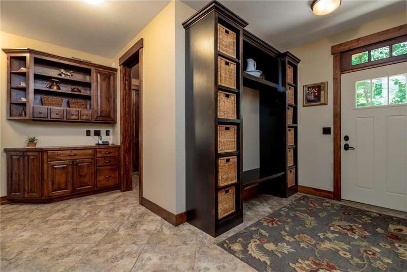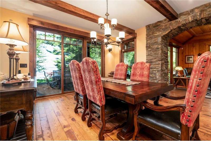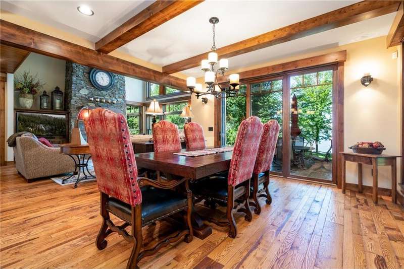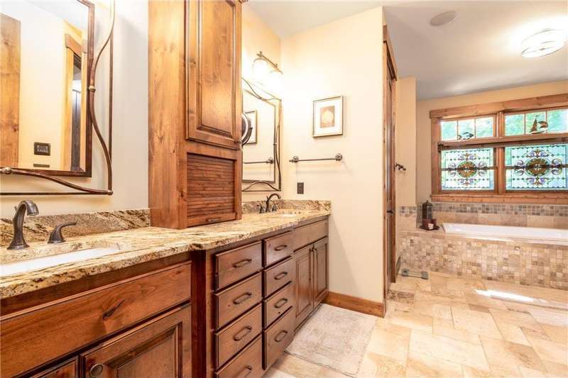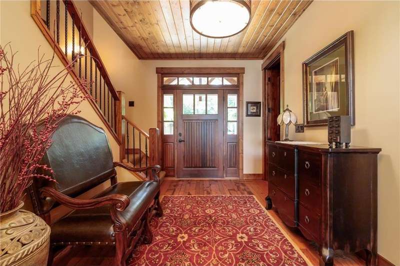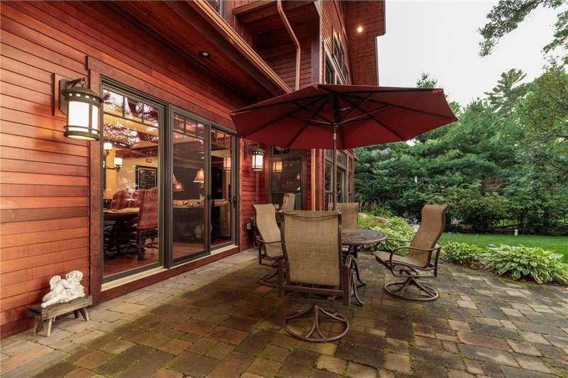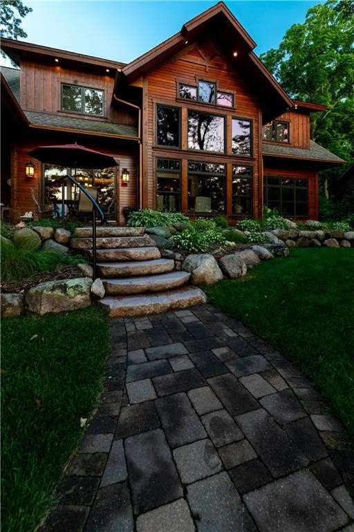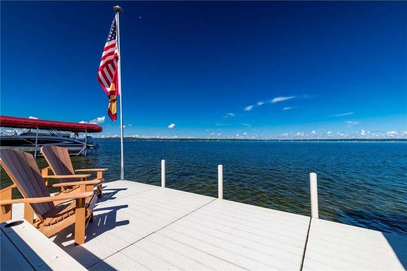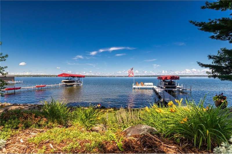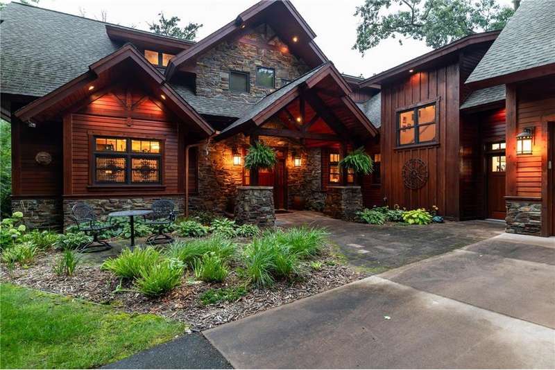 Nestled amidst the enchanting landscape of Gull Lake, your dream of indulging in luxurious lake life finds its realization at this exceptional estate. A masterpiece of architectural brilliance, this exquisite residence is a testament to the visionary design of RemWhirl and the unparalleled craftsmanship of Wes Hansen Builders. Spanning an impressive 5,000 square feet, this home seamlessly marries rustic charm with modern elegance, encapsulating architectural styles that include exposed beams, elegant stone arches, and distressed hardwood floors, all contributing to its timeless allure. As you step through the front door, the grand foyer welcomes you, instantly revealing beautiful views of the lake. A haven of tranquility awaits you in the spa-like primary suite. This sanctuary offers an unparalleled retreat with a wall of windows that frame the serene lakeside views. The spacious bathroom is a true oasis, featuring a soaking tub and a walk-in shower, perfect for unwinding after a day on the water. The living room is a symphony of design and comfort, where expansive lakeside windows draw the eyes to the breathtaking views. Anchoring this space is a floor-to-ceiling fireplace, a stunning centerpiece that exudes warmth and coziness, creating an inviting atmosphere for family gatherings or quiet evenings by the fire. The heart of the home, the kitchen, is a culinary artist's dream. Its beauty is underscored by a custom range hood that serves as a focal point, complemented by gleaming granite countertops and the practicality of double ovens. A striking copper light fixture hangs over the island, adding a touch of sophistication and charm. Adjacent to the kitchen, the dining room opens up to a picturesque patio and covered patio, where a magnificent stone fireplace beckons you to savor the Minnesota summers in style. The den provides an ideal space for handling business matters with ease and efficiency, allowing you to balance work and leisure seamlessly. Ascend to the upper level, where three additional bedrooms await, each thoughtfully designed to ensure that hosting family and guests is a pleasure. These guest quarters are complemented by the elegantly appointed bathrooms, ensuring every visitor enjoys the utmost comfort. The bonus room is a versatile haven, destined to become a favorite gathering spot. With two built-in beds, ample space for games, and a wet bar, it is perfectly suited for entertaining and enjoying quality time with loved ones. For those with a penchant for vehicles or hobbies, the finished three-stall attached garage is a dream come true. Meanwhile, the detached garage offers abundant storage for recreational items and features a climate-controlled room that can be customized to suit your desires—be it a man-cave, she-shed, or an additional guest retreat. All of this magnificence is cradled on a meticulously manicured lot, adorned with mature pines that whisper in the breeze. The property boasts excellent elevation to the lake, granting access to a pristine sandy shoreline that is perfect for sunbathing, swimming, or simply soaking in the natural beauty. As the day draws to a close, revel in the stunning sunset views that paint the sky over Gull Lake, a daily reminder of the paradise you call home. Don't let this opportunity slip away; schedule your private showing today and step into a world where lake life meets unparalleled luxury.