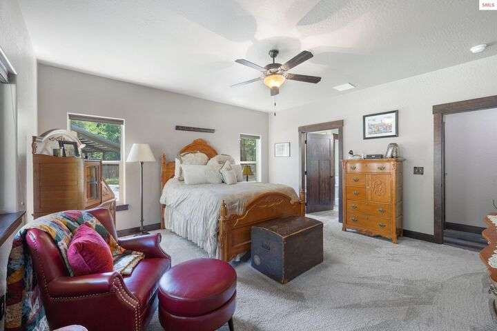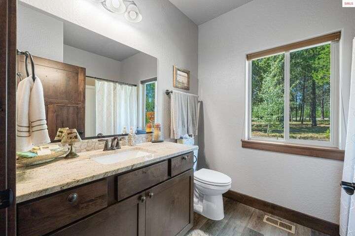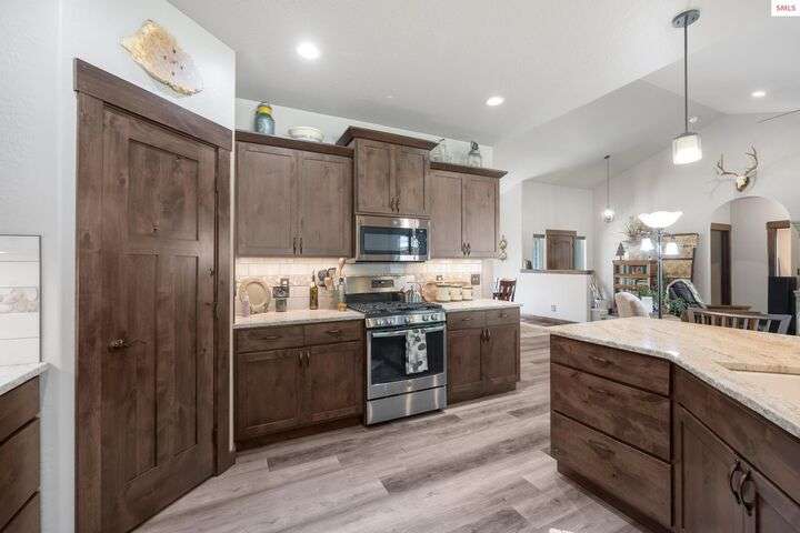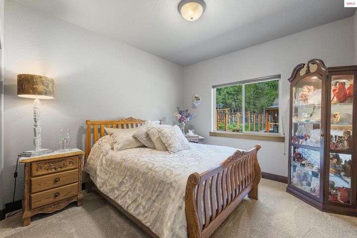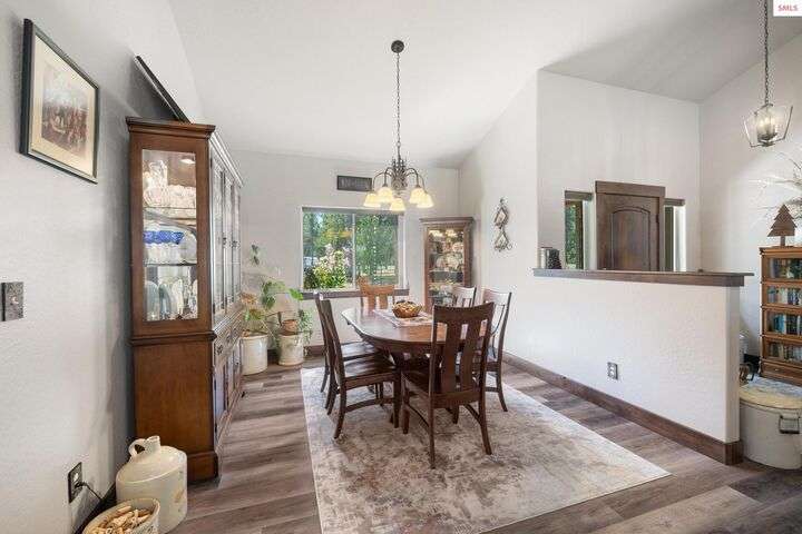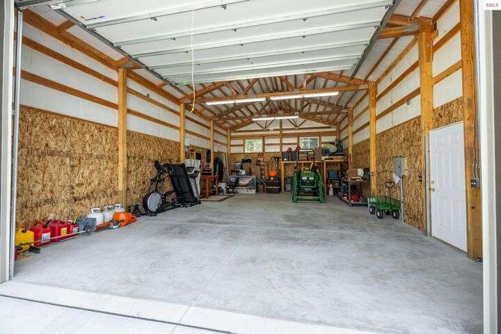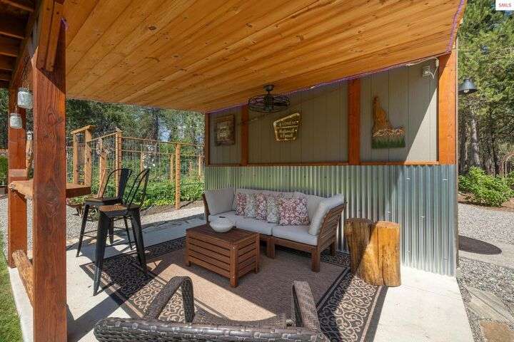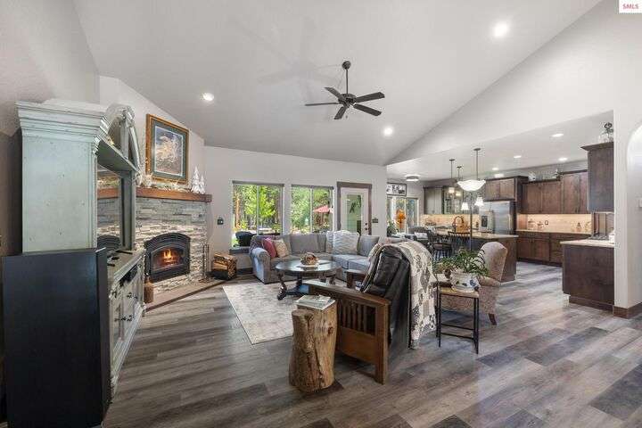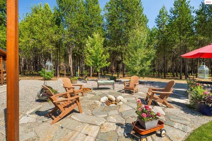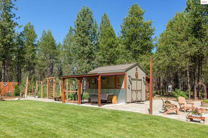 Welcome to Lone Mountain Estates, an exclusive community with 5-acre lots, paved roads, and easy access to Coeur d'Alene, Rathdrum, and Spirit Lake. This 2,359 sq ft single level home with bonus room features an open concept, wood burning fireplace, custom kitchen with stainless gas appliances, wine fridge, granite surfaces and a walk-in pantry. The luxurious master suite offers covered patio access to your hot tub, a spacious walk-in closet, separate vanities, soaking tub, and a beautiful walk-in shower. Additional highlights include vaulted ceilings, covered patio, a versatile bonus/media room and a mudroom/laundry room with sink. Finally, a large 24x40 shop with 12x40 lean too & 14' doors & RV parking complete this residence. The property grounds are manicured with outdoor living space, a luscious fenced in 20’x32’ garden w/irrigation, fire pit, storage shed and barbecue area, making it an entertainers dream. This exclusive location has a private drive offering solitude like no other in the neighborhood.
