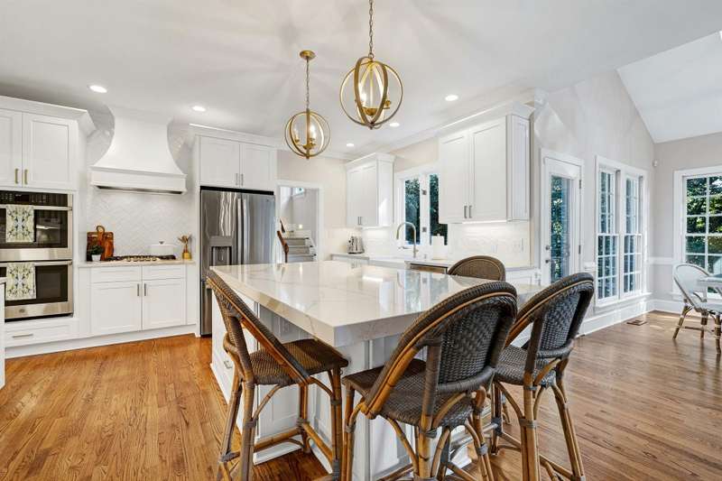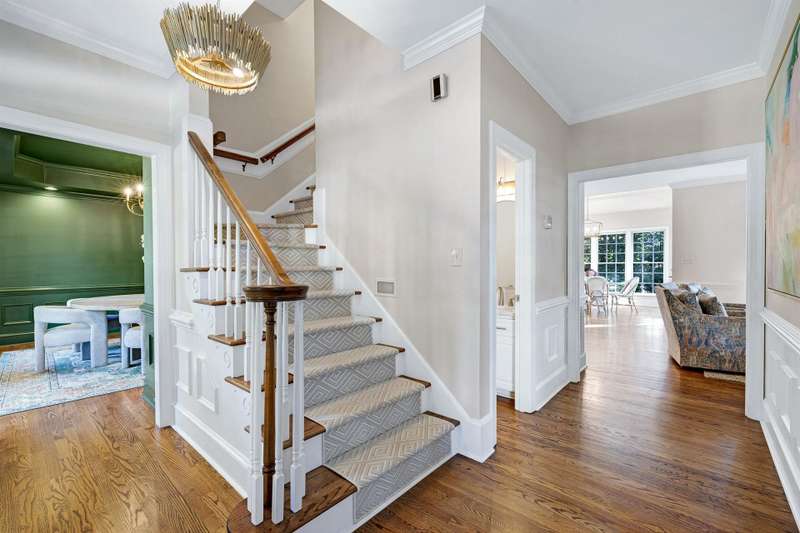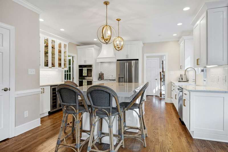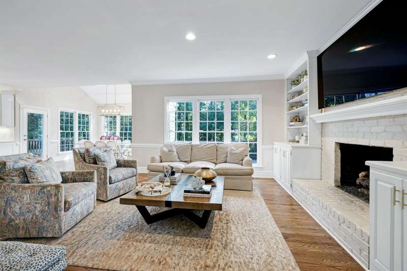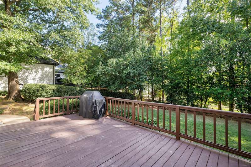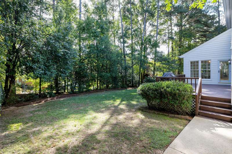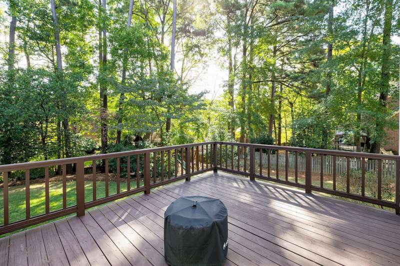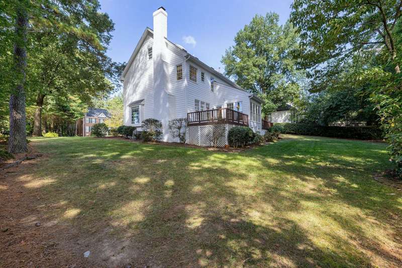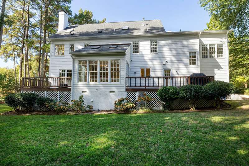 North Ridge classic at its best! This beautiful home was made for easy entertaining with formal areas. Enjoy memorable dinners in the dining room which features a trey ceiling and wainscoting. The living room is perfect for quiet conversations. The updated kitchen is appointed with quartz counters, center island, SS appliances, tile backsplash, gas cooktop, glass front cabinets and a large pantry. It opens to the sunny breakfast room and family room with cozy fireplace There is a rear staircase leading to the second floor bonus room. The primary suite has a huge bedroom, office area, luxury bath with double vanities, whirlpool bath, separate shower and walk in closet. Three additional bedrooms are on the second floor. The walk up attic will meet your storage needs or can be used for future expansion. Enjoy the view of the private backyard from the two decks or the playset . You are minutes from North Ridge Country Club, shopping and dining. It's an easy commute to I-540, downtown Raleigh, North Hills and the airport. This home is waiting for you!
