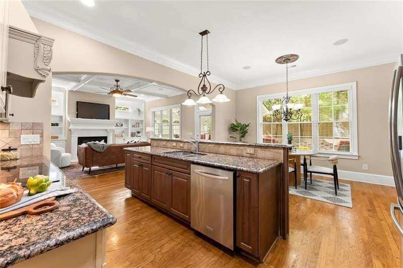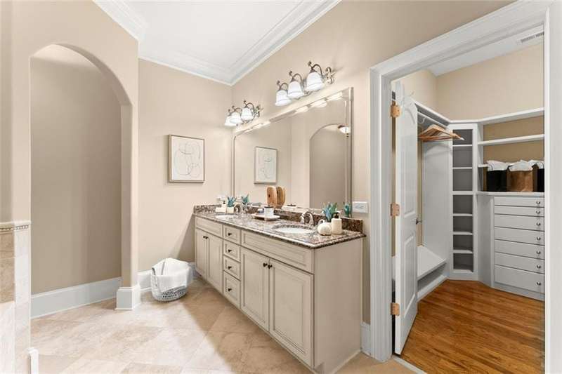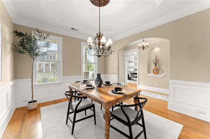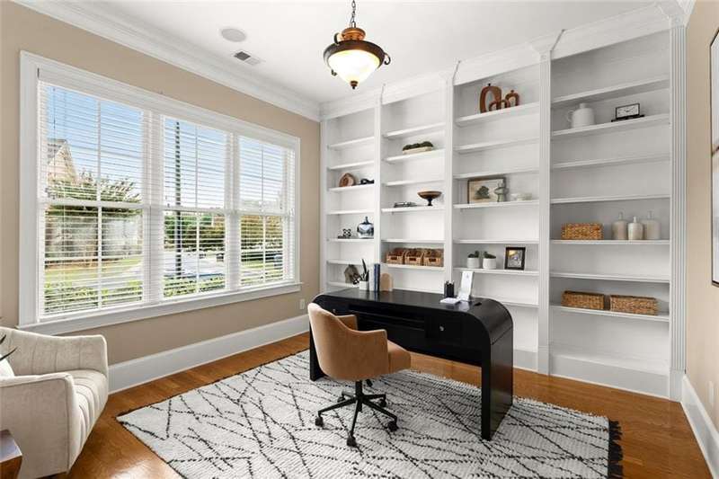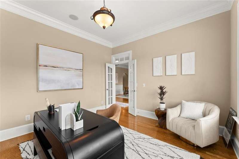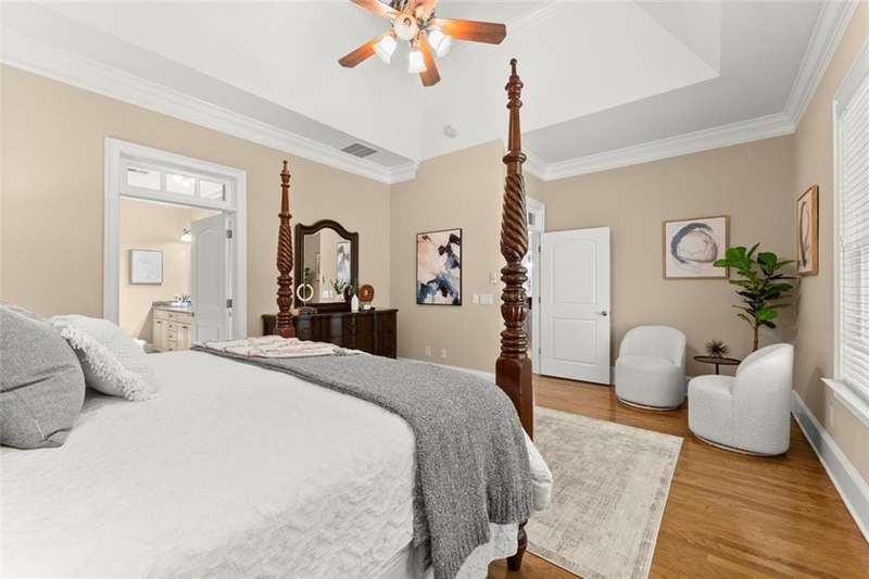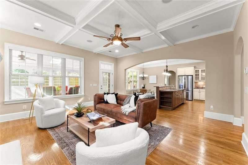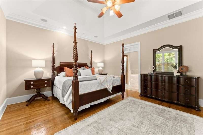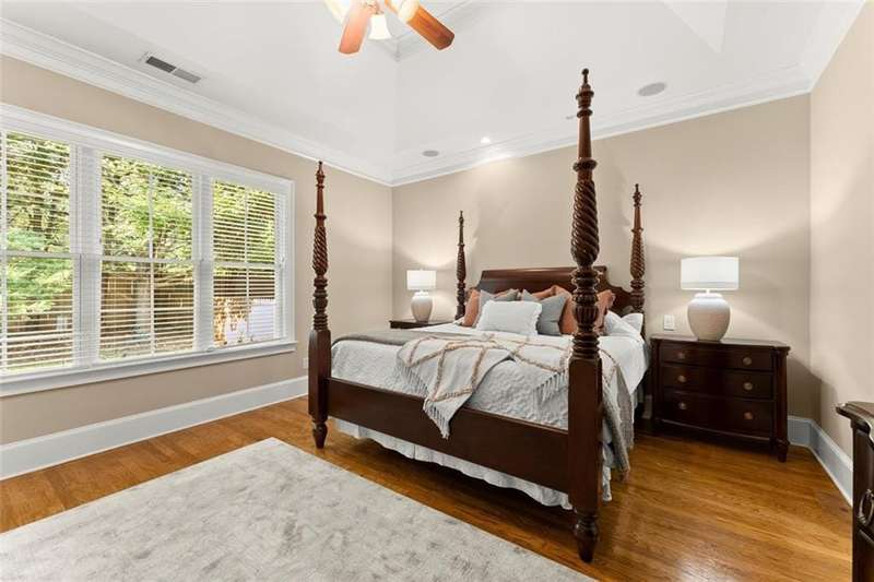 This luxurious home is located in the desirable community of The Oaks at Sandy Springs in East Cobb. This home has been meticulously maintained, it features two levels serviced by a private Elevator. The main level is designed for both comfort and elegance. The living room includes a fireplace, coffered and beamed ceilings, crown molding, and built-in selving, creating an inviting atmosphere for relaxation or entertaining. The eat-in kitchen is a chefs dream with stone countertops, a custom range hood, stylish backsplash, bar seating, and plenty of cabinet space. An elegant dining room with a tray ceiling and a private office add to the functionality of the layout. The primary suite is a true retreat with a tray ceiling, crown molding, and a serene ambiance. An additional bedroom includes a walk-in tub and walk-in closet, providing both comfort and accessibility. Gorgeous hardwood floors flow throughout, adding warmth and sophistication.The second level offers its own private retreat with a spacious secondary primary suite featuring a bedroom, full bath, and walk-in closet, large living area with an additional walk-in closet and generous storage space makes the upstairs level perfect for guests or extended family. The outdoor living is just as impressive with a spacious covered patio and a private backyard, ideal for gardening and entertaining. With thoughtful architectural details, and a welcoming community, this Marietta residence presents an unparalleled opportunity to enjoy luxurious living in a vibrant and well-maintained 55+ neighborhood.