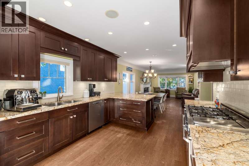 Welcome to this meticulously & fully renovated home, where modern luxury meets classic charm in a sought-after Kitsilano neighborhood. This 5 bed home boasts over 1900sqft of spacious & functional layout w/year-round comfort of A/C. Main level features an open living/dining area w/unique cove ceiling, custom mantel, & gas fireplace. Stunning chef´s kitchen was renovated w/granite countertop, s/s appliances with a top-of-the-line Italian Bertazzoni stove. Entertain on the oversized south facing deck. 2 beds on the main level & renovated bathroom. Lower level w/separate entrance features 3 bedrooms, laundry/utility room and 2 baths. Backyard is a private retreat w/a custom putting green, covered deck area Oversized garage w/Level 2 EV charger. OH Sat Oct 4, 2:30-4:30pm & Sun Oct 5, 2-4pm. (id:58403)
