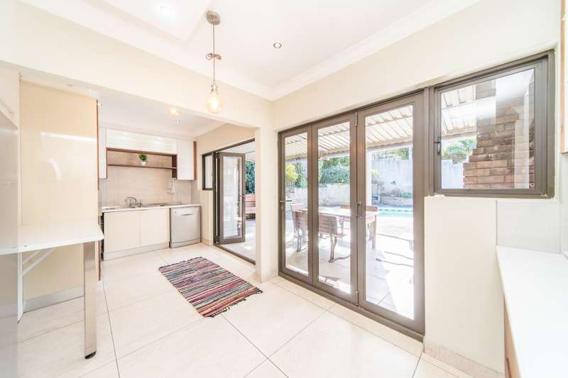 Nestled in the serene neighborhood of Bonza Bay, this delightful family home sits on a spacious corner erf and boasts a generous front garden—perfect for children to play and explore. The home features four well-sized bedrooms, with two offering private en-suite bathrooms for added comfort and convenience. The modern living spaces include a dining room, sunroom, and two expansive lounges. The front lounge is enhanced by a cozy fireplace and large stack-away doors that overlook the garden, creating a warm and inviting atmosphere. At the heart of the home lies a beautiful, spacious kitchen that flows effortlessly to a covered braai area and a sparkling swimming pool—ideal for entertaining all year-round. Additional features include a double garage, a separate storeroom, an alarm system, and ample off-street parking for guests. This home offers comfort, space, and excellent family living – view today!