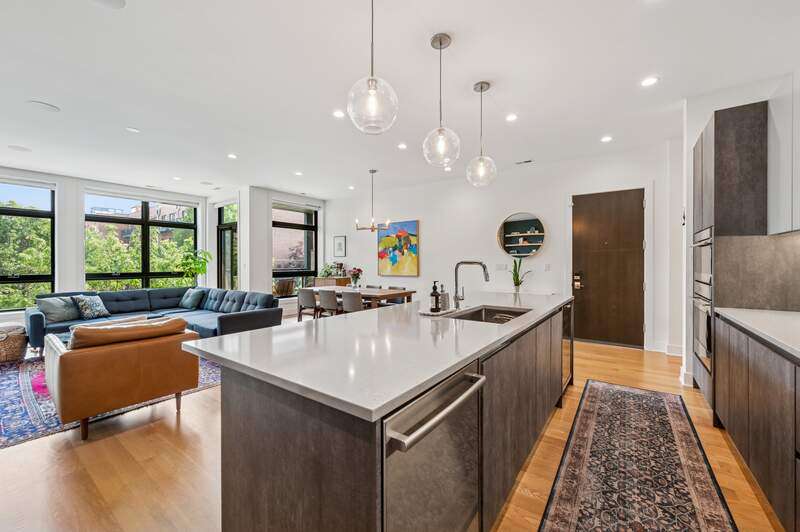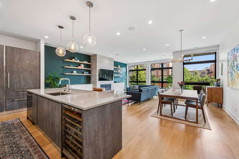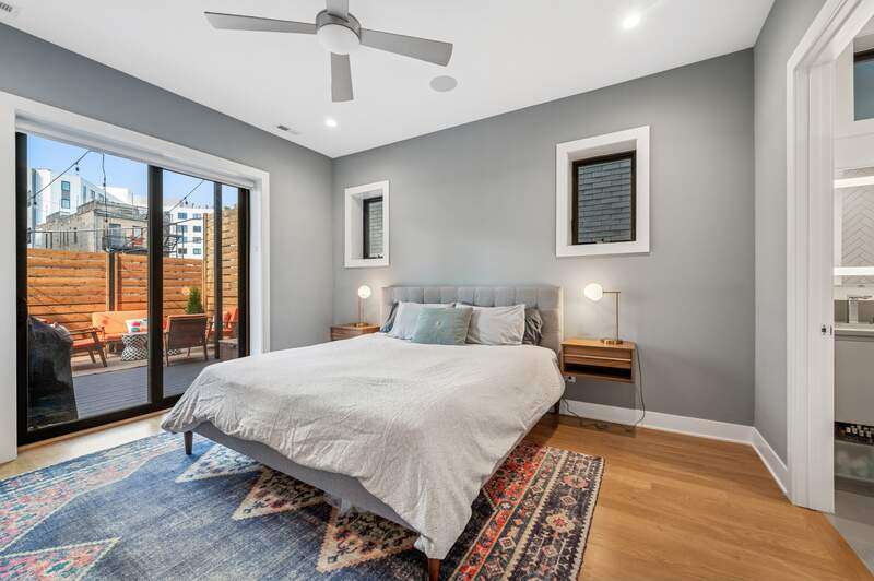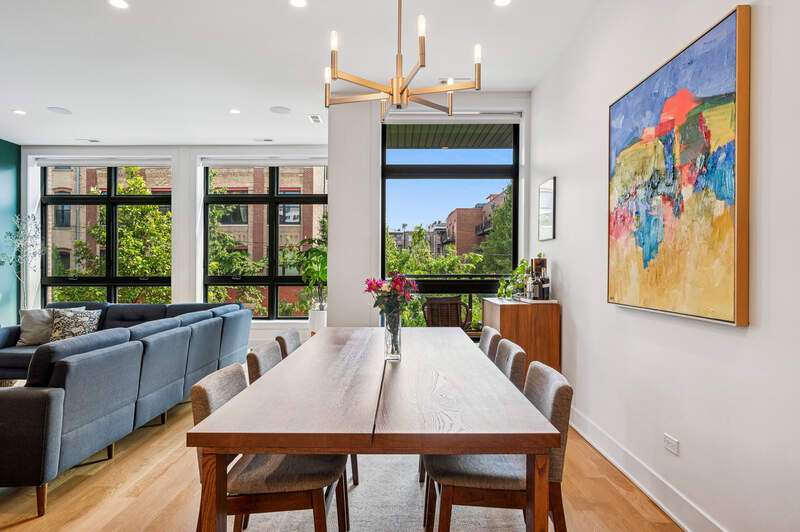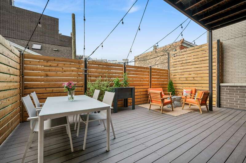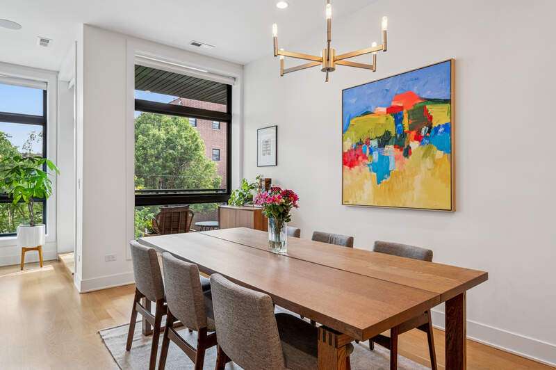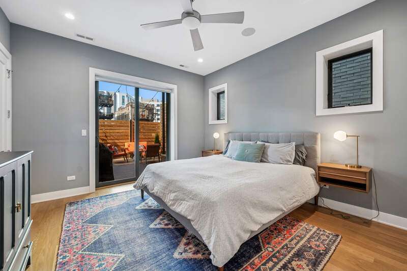 Stunning 3 bedroom 2.1 bath condo in wonderful boutique 8-unit elevator building. At the nexus of West Town, River North and Fulton Market. Modern and open 1927 sq. ft. floor plan with huge windows and amazing south exposure. Unit is flooded with light. Wonderful, highly upgraded kitchen featuring Bosch, Sub-Zero and Miele appliances, Italian cabinetry, Caesarstone countertops. Primary bedroom features great organized closet, wonderful bath with double vanity, soaking tub, and radiant heated floors. Unit has 4" solid oak floors, GBFP, upgraded light fixtures, motorized blinds, and Nest system. Unit has large (17x23) private rear deck over the garage with new pressure treated lumber and a lovely front terrace off the public rooms.Full masonry building with concrete floors. 9.5"+ ceilings throughout the unit. 1 car garage parking with EV charging station. Location is ideal: a 10 minute walk to the Grand Ave Blue Line stop, 2 minute drive to 90/94, close to Randolph Street and Loop. Perfect neutral decor. Move right in.