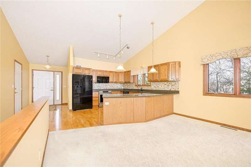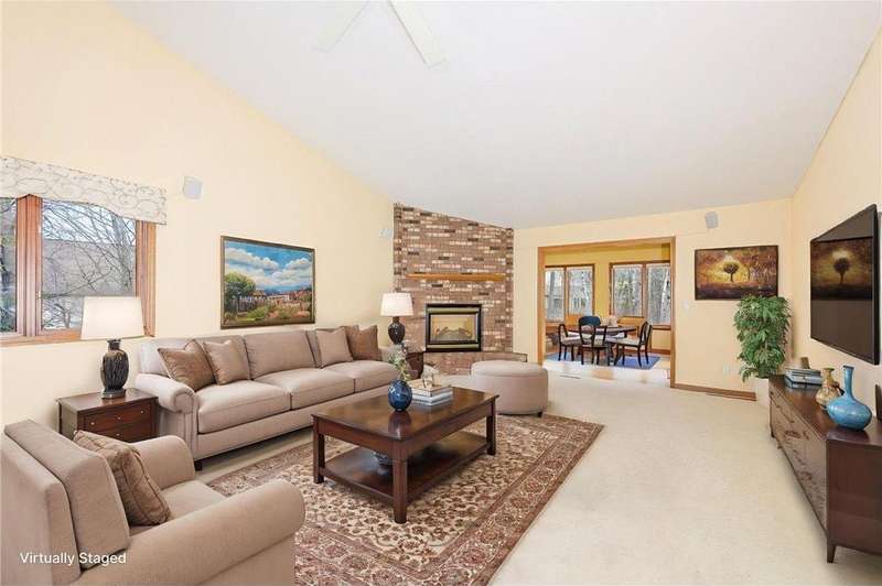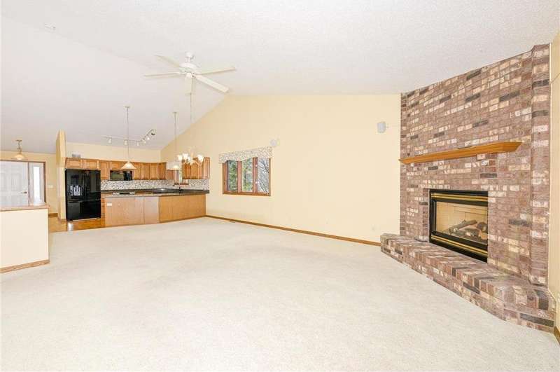 Welcome to this stunning side by side townhome in the highly desirable Maple Ridge community! This home boasts an open floor plan with vaulted ceilings, corner gas fireplace, and tons of natural light. Spacious kitchen flows seamlessly into the dining and living areas, creating the perfect space for entertaining. Private owner's bath plus additional bedroom, a full bath with jetted tub, and laundry complete the main level. Semi-private views from the sunroom and deck. The fully finished basement offers incredible versatility, including a large family room, third bedroom with a 3/4 bath, an office/den or craft room, and a workshop/storage space complete with utility sink. Exceptional exposures and a location just minutes from shopping, dining, and more, this home is a rare find. Don’t miss this opportunity!