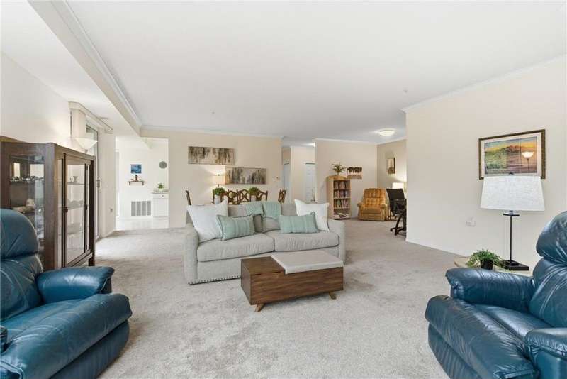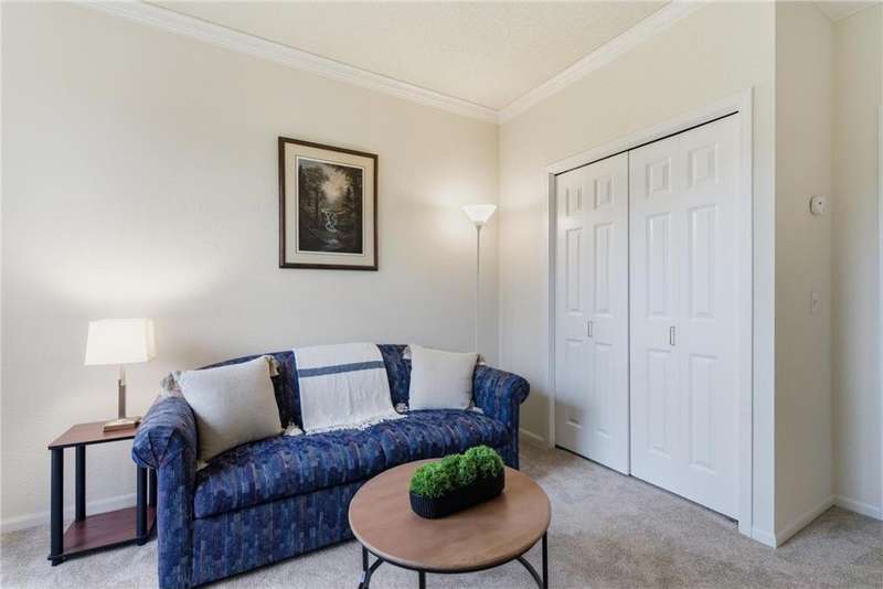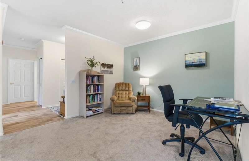 Your 62+ one level living chapter awaits! Rare 2-bedroom, 2-bath - one of only three in the building with this larger, light-filled floorplan w/ both west & SW facing windows. Move-in ready w/ newer carpet in living/bedrooms, luxury vinyl plank in entry/hallway & crown molding throughout. Modern white kitchen w/ newer SS appliances & solid surface counters w/ nearly floor to ceiling windows in the bright kitchen nook. Primary suite with updated walk-in shower & double linen storage closets + an oversized walk-in closet that anyone would love! Bonus same floor storage across the hall +2 underground garage stalls. An exceptional building w/ an abundance of shared amenities including a fitness studio, library, party room, hobby shop & resort style clubhouse w/ pool, hot tub, sauna & more! An affordable HOA fee that includes cable, all exterior repairs & grounds mntc + trash, water AND interior repairs of furnace / AC, & more. Come explore & see why there’s lots to love!