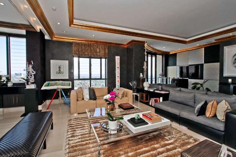 Opportunities to own an apartment of this calibre don't come often. You will not find another Penthouse like this. No expense has been spared in creating this unique masterpiece. Furniture is included. All you need is to personalise it with your own artwork. Enter your new Climate controlled Penthouse through its massive door and immerse yourself in luxurious opulence with some of the best views Sandton has to offer. There is no shortage of space and comfort. Entertain indoors or outdoors and revel in the uninterrupted views...they say "on a clear day you can see forever" Enjoy unparalleled sophisticated luxury on top of the world. Relax and entertain in your Cigar lounge, drink Dom Perignon whilst watching the game. Humidors and Wine fridges ensure your Cigars are optimally kept and your drinks perfectly chilled. Move outside through the floor to ceiling stacking glass doors to the balconies and be mesmerised with 180-degree views. Here you entertain on top of the world. Enjoy dinner parties at the spectacular large designer table. The chef's kitchen features only the best appliances, top quality finishes, and granite countertops. Move effortlessly between the different reception rooms and enjoy the luxurious space. Relax upstairs in your Master bedroom with unparalleled dressing room and magnificent travertine bathroom ensuite. There is no shortage of space and the views from your bed are exceptional; Curtains are controlled with your remote and your TV appears at the push of a button. You couldn't wish for more. The upstairs patio is fully enclosed using frameless stacking glass giving you the option of being enclosed or completely open. The skylights let in natural light and the big fans enhance the look and feel. The second bedroom upstairs is as expansive and features magnificent views from the comfort of your bed. You have a dressing area, beautiful bathroom.as well as remote controlled curtains and automated hidden TV. There is a well-appointed guest suite downstairs that doubles as a Butler suite. Residents of the Michelangelo Towers enjoy an unrivalled, service-rich lifestyle with five-star onsite services, including world-class concierge, restaurant plus indoor and outdoor pools, Fitness Centre and so much more. Security is exceptional and you have access to the extended Sandon City, Michelangelo Towers, Nelson Mandela Square Mega Shopping Complex. Nothing has been spared in creating the ultimate luxury living experience. Call today to set up your exclusive viewing.