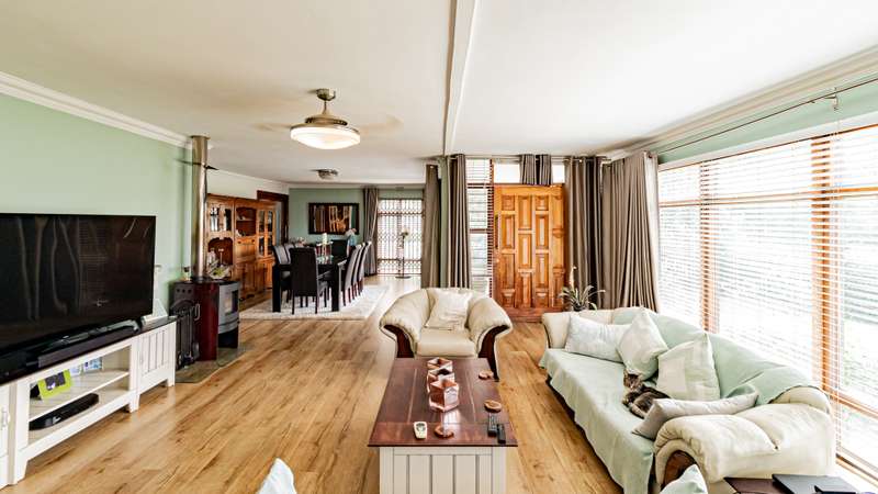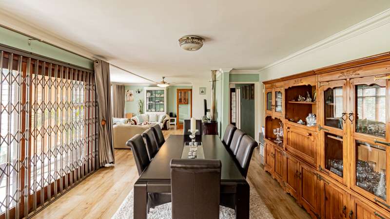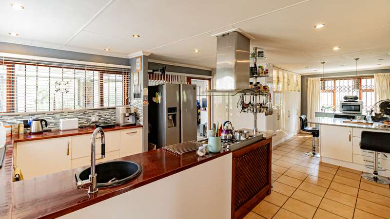 Welcome to this luxurious and modern 5-bedroom family home, designed with both comfort and style in mind. Situated in a prime location, this property offers an abundance of space, upscale finishes, and a wide range of exceptional features. Main House Features: • 5 Bedrooms: The spacious main bedroom boasts laminated floors, providing a sleek and stylish atmosphere. The remaining four bedrooms are carpeted, offering warmth and comfort. All bedrooms are equipped with built-in cupboards (BIC) for ample storage. • 2 Modern Bathrooms: The main bedroom includes a private en suite, while the second bathroom is equally modern and well-appointed. There is also a guest toilet for added convenience. • Lounge: The inviting lounge features laminated floors, a fan for comfort, and a cozy fireplace, perfect for relaxing evenings with the family. • Dining Area: The dining area, also with laminated floors, is ideal for hosting family dinners and gatherings. • Gourmet Kitchen: A chef’s dream, the kitchen comes equipped with a gas stove, extractor, and a scullery section for added convenience. This space is perfect for preparing meals and entertaining guests. • Covered Patio with Built-In Braai: Step outside to a covered patio, ideal for alfresco dining and entertaining, featuring a built-in braai. • Indoor Entertainment Room: A massive indoor entertainment room with a built-in bar offers the perfect space for hosting gatherings or unwinding with friends. • Outdoor Entertainment Area: The large outdoor entertainment space includes another built-in braai, a toilet, and ample space for socializing while enjoying the beautiful weather. • Swimming Pool: Take a refreshing dip in the sparkling swimming pool, adding the perfect touch of relaxation to this family home. • Home Office: A dedicated home office space with its own bathroom provides a quiet and productive area for work or study. • Large Covered Work Area: Ideal for DIY projects or additional storage, this large covered work area adds flexibility to the property. • Staff Quarters: Complete with its own bathroom and kitchen, the staff quarters offer privacy and comfort for live-in staff. • Extras: This home is equipped with a wine cellar, laundry room, CCTV system for added security, a Jojo tank, borehole (needs a new motor), and an irrigation system to keep your garden lush. • 2 Automated Garages: Secure parking for your vehicles is provided with two automated garages. Flatlet: • 2 Bedrooms: The flatlet offers two comfortable bedrooms, ideal for guests or as an independent living space. • 1 Bathroom: A well-appointed bathroom serves the flatlet for convenience and privacy. • Open-Plan Lounge & Kitchen: The flatlet features a spacious open-plan lounge and kitchen area, perfect for relaxed living. This property truly has it all – modern finishes, expansive entertainment areas, a fully equipped flatlet, and a wide range of functional and luxury features. Whether you're hosting family and friends or enjoying a quiet moment, this home is sure to impress. Situated on the border of Mondeor and Kibler Heights close to all amenities and easy access to all main roads as well... Don’t miss the chance to make it yours. Contact us today to schedule a viewing!