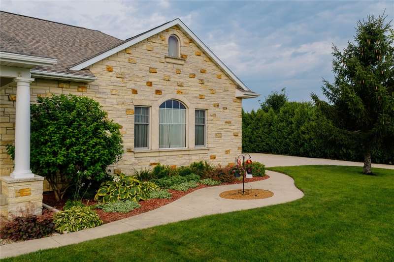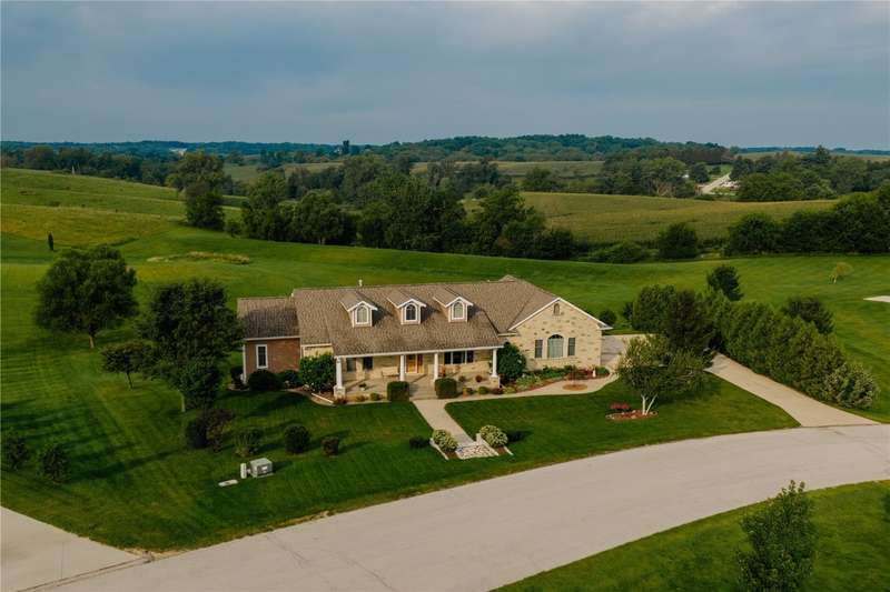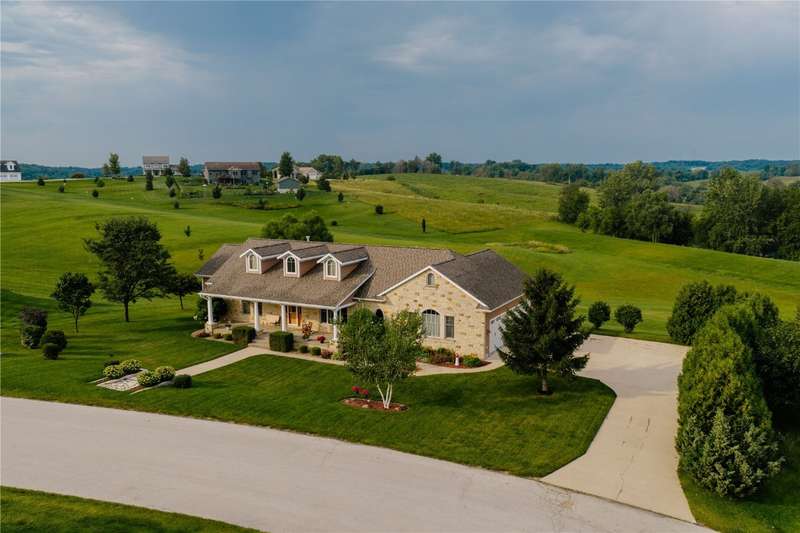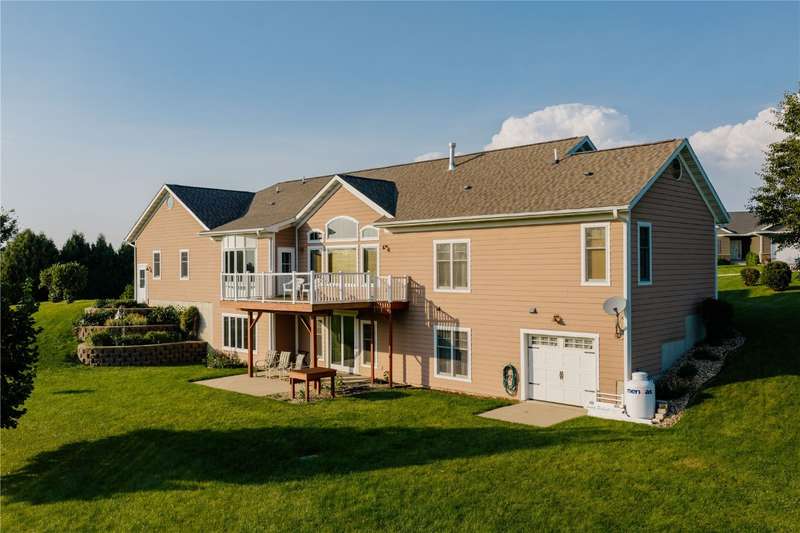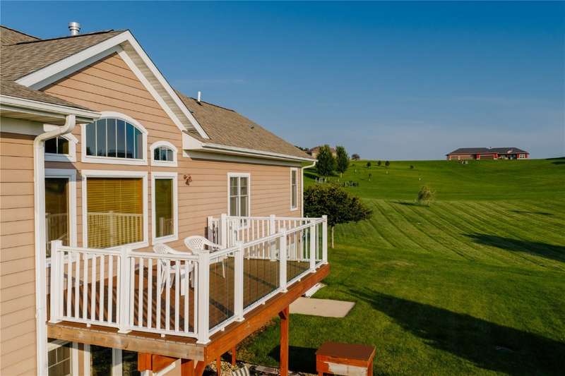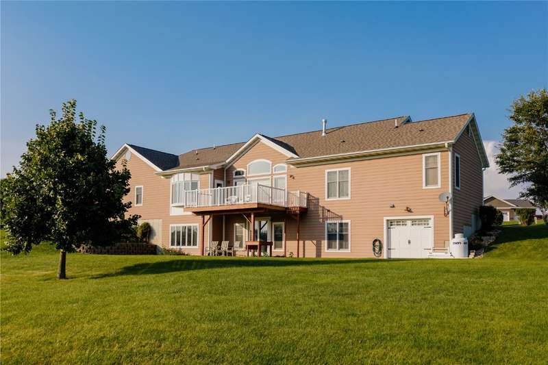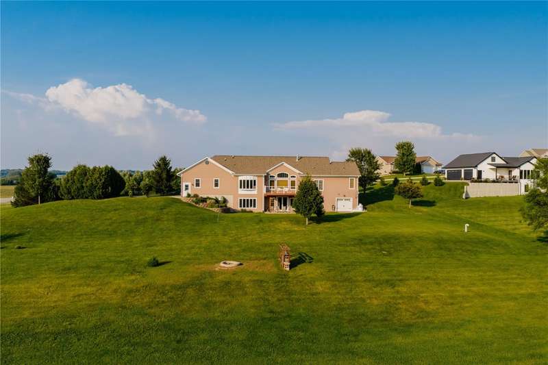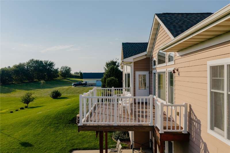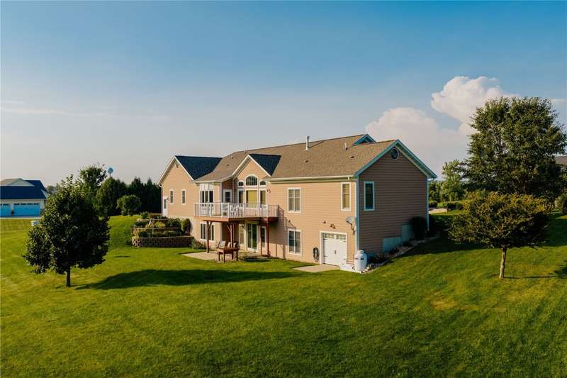 Set on a full acre with peaceful countryside and sunset views, this 4-BR custom-built home is designed to be enjoyed inside and out. The curb appeal is undeniable, with extensive stonework, a grand welcoming front porch, and a brand-new composite deck with glass railing to take in the views without obstruction. Inside, you’ll find spacious rooms filled with natural light, solid-core doors, hardwood floors, and elevated ceilings that make the home feel open and airy. The kitchen is generously sized, offering plenty of space for cooking, gathering, and entertaining. A formal dining room and easy flow between living areas make it perfect for everyday living and special occasions alike. The primary suite features a jetted tub framed by windows and a walk-through closet you’ll fall in love with. The finished walk-out lower level adds even more living space with two additional bedrooms, a bath plus a tiled recreation/game room and a handy wet bar—ideal for hosting friends and family. Comfort meets convenience with geothermal heating and cooling, radiant heated basement floors, a whole-house water softener, and reverse osmosis drinking water. The 3-car garage is a dream, complete with a utility sink, two floor drains, custom storage, and even a secondary entrance to the lower level. Plus there’s a rare 4th stall garage with lower-level entry. This special home offers the perfect blend of thoughtful design, modern features, and warm spaces to make lasting memories. Come see for yourself—you’ll feel right at home!