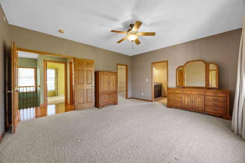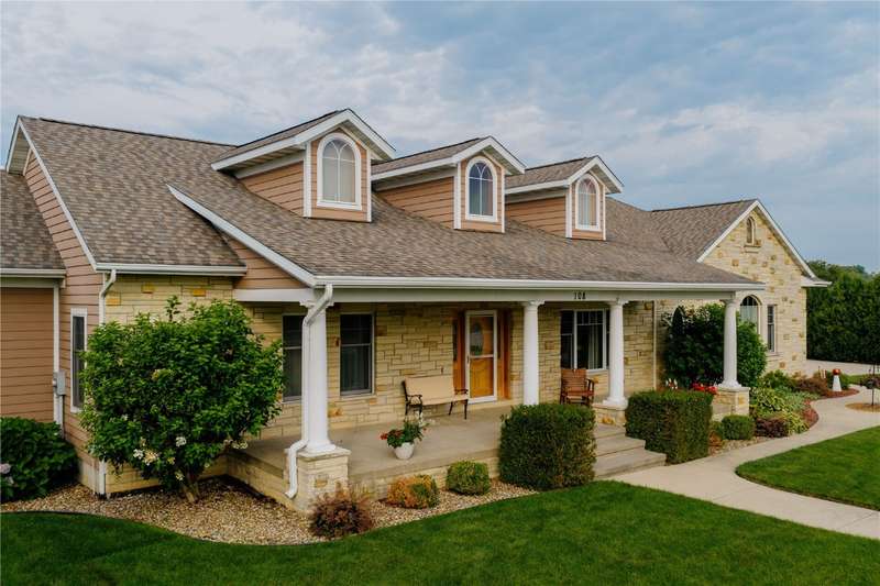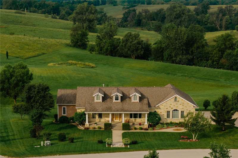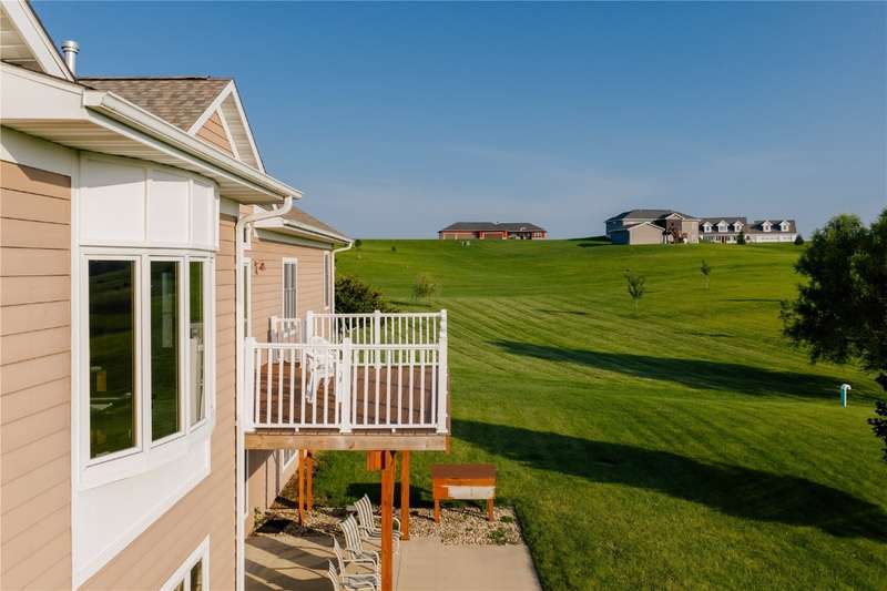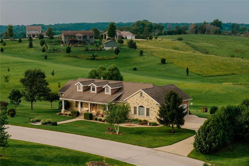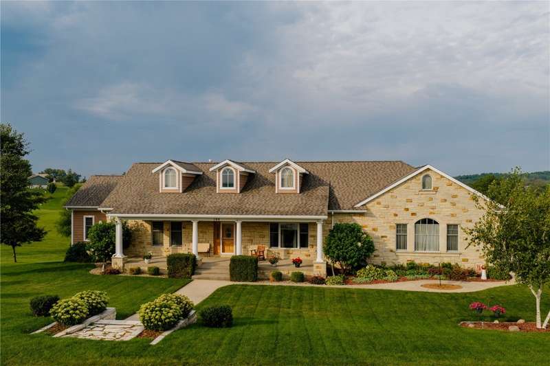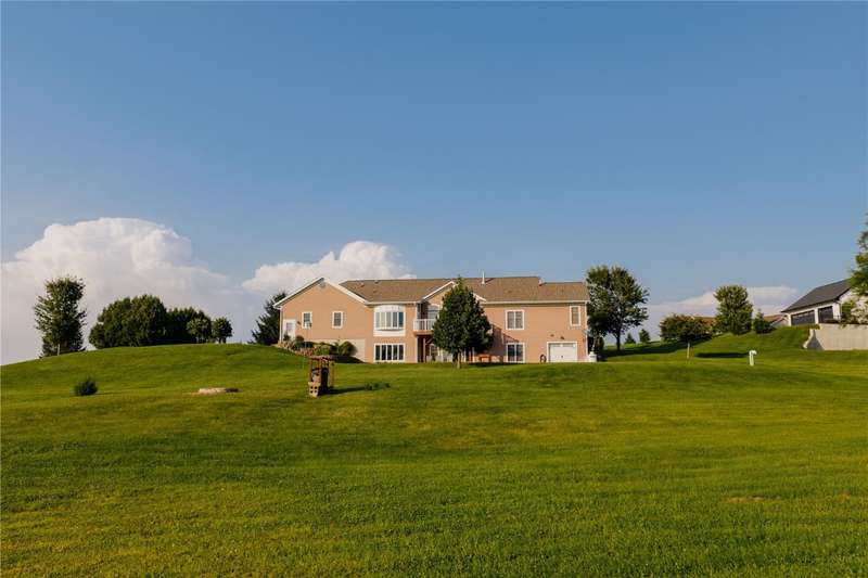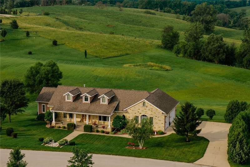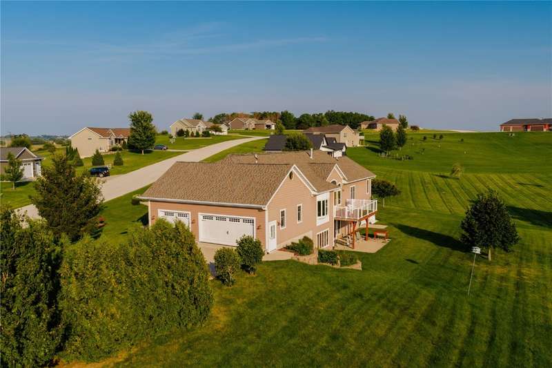 Set on a full acre with peaceful countryside and sunset views, this 4-BR custom-built home is designed to be enjoyed inside and out. The curb appeal is undeniable, with extensive stonework, a grand welcoming front porch, and a brand-new composite deck with glass railing to take in the views without obstruction. Inside, you’ll find spacious rooms filled with natural light, solid-core doors, hardwood floors, and elevated ceilings that make the home feel open and airy. The kitchen is generously sized, offering plenty of space for cooking, gathering, and entertaining. A formal dining room and easy flow between living areas make it perfect for everyday living and special occasions alike. The primary suite features a jetted tub framed by windows and a walk-through closet you’ll fall in love with. The finished walk-out lower level adds even more living space with two additional bedrooms, a bath plus a tiled recreation/game room and a handy wet bar—ideal for hosting friends and family. Comfort meets convenience with geothermal heating and cooling, radiant heated basement floors, a whole-house water softener, and reverse osmosis drinking water. The 3-car garage is a dream, complete with a utility sink, two floor drains, custom storage, and even a secondary entrance to the lower level. Plus there’s a rare 4th stall garage with lower-level entry. This special home offers the perfect blend of thoughtful design, modern features, and warm spaces to make lasting memories. Come see for yourself—you’ll feel right at home!