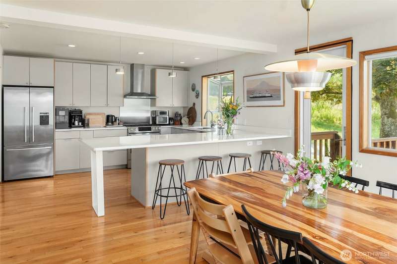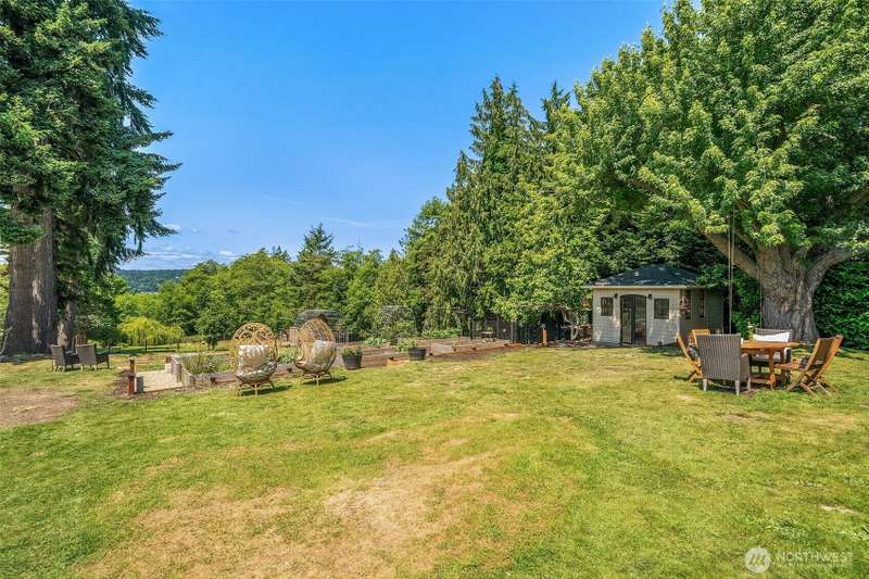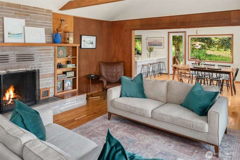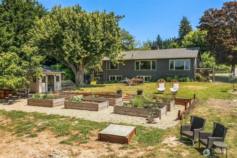 Magical island living at Vashon pocket farm w/3+ acres & 165+/- ft of accessible waterfront in coveted Westside location. 3 bed 2 bth mid-century modern w/great floorplan & tons of natural light. Spacious liv rm w/frplc, updated open kit & large din rm w/view. Walk in pantry, large laundry, hdwd floors. Lower level w/media rm, 3rd bed, bth, extra storage. New HVAC & A/C, new water filtration sys. Detached studio/office w/power. Sprawling front & back yards perfect for large celebration or casual summer BBQs.New fence, new hedge line, raised garden beds, chicken coop. Tranquil pond, small orchard. Stroll wide path to beach w/kayak/SUP storage, deck, & picnic area.W-facing provides evening sun & PNW sunsets. 5 min to town, 10 min to ferry.