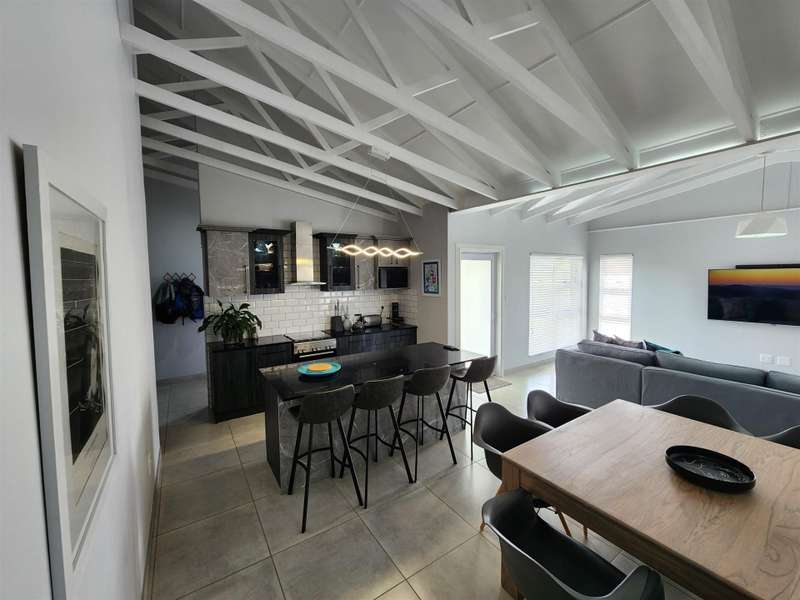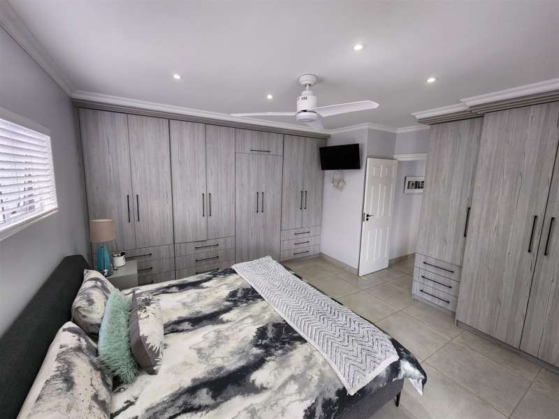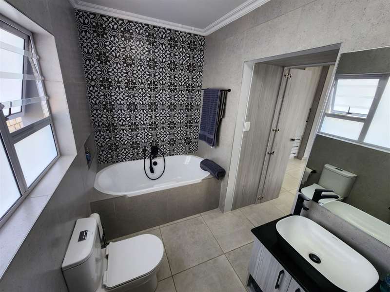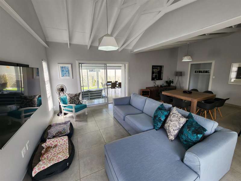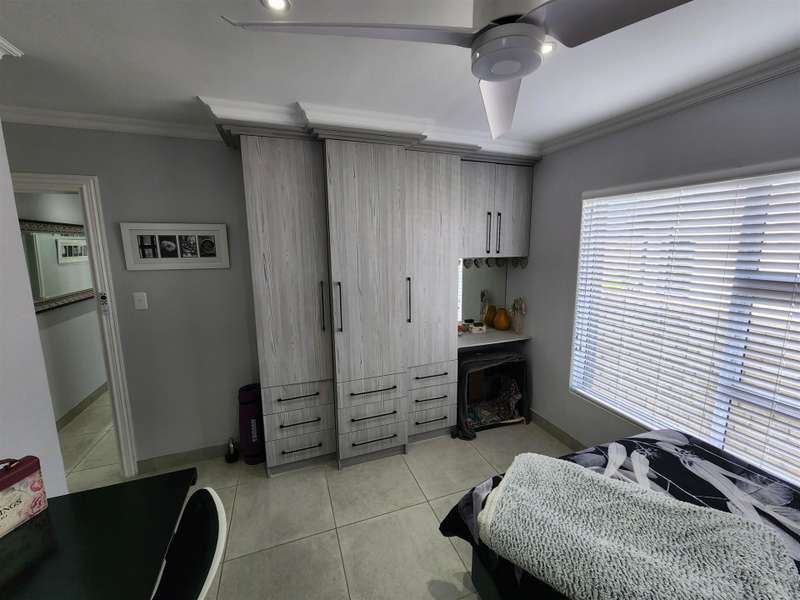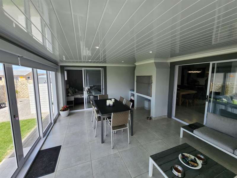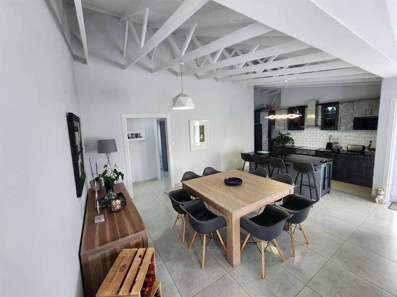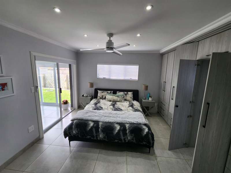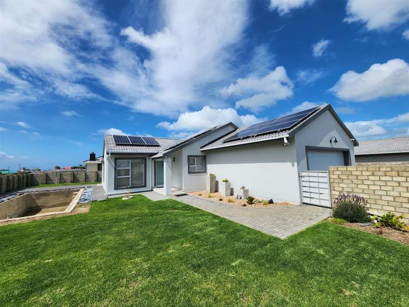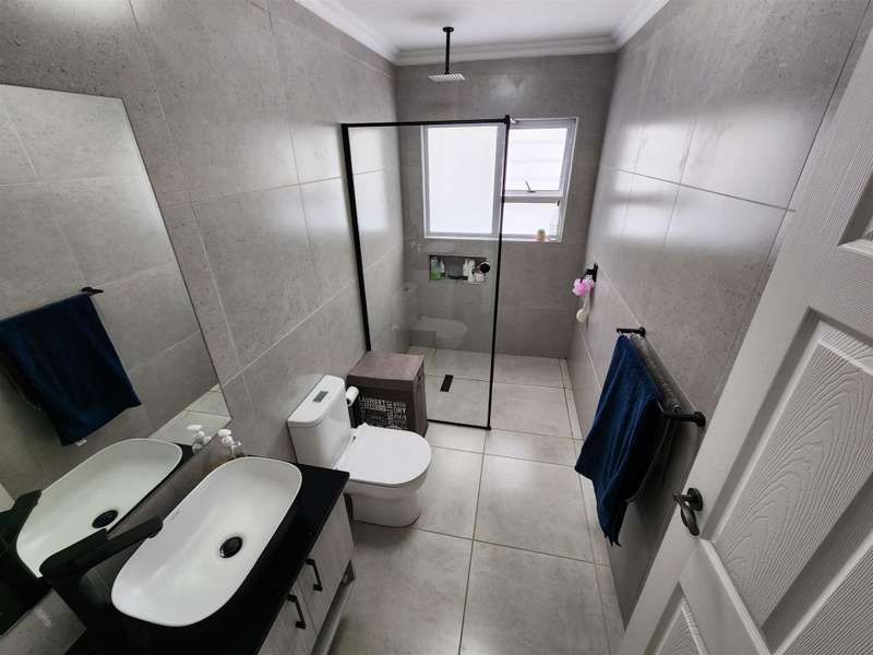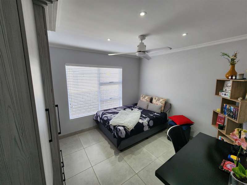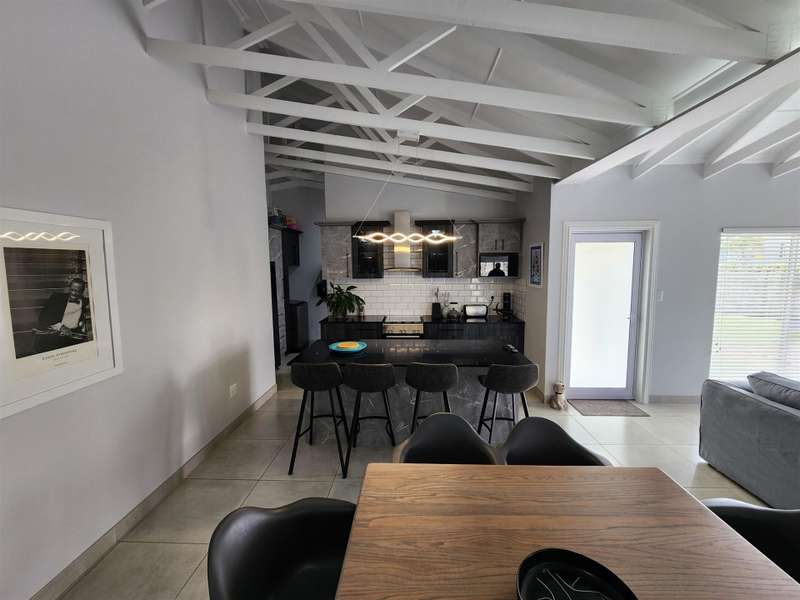 Exceptional Property!! Exclusive Mandate This beautiful property, situated in Fountains Estate, offers exceptional finishes and so much more. When entering the property through the front door you are welcomed by the seamless flow of the open plan living area, dining area and kitchen with high, open trusses to provide space and openness. Behind the kitchen you will find the scullery and laundry as well as the entrance to the double garage. The three large bedrooms and two bathrooms (MES), flows from the dining room area, and the main bedroom as well as the living area, opens up into the large enclosed patio with built-in braai and sliding doors into the back garden and the swimming pool. The property is fully walled with electric fencing, and ample space for the pets and kids to enjoy themselves, and the large swimming pool promises laughter and excitement during those hot summer months. The double garage houses the gas geysers for the bathrooms and kitchen, with a motorised door and ample space. A large 5000 litre water tank (not coupled) allows for extra water for the garden, or to top up the pool. Cameras are strategically placed for additional security. The solar system is not included in this deal. Viewing only by appointment
