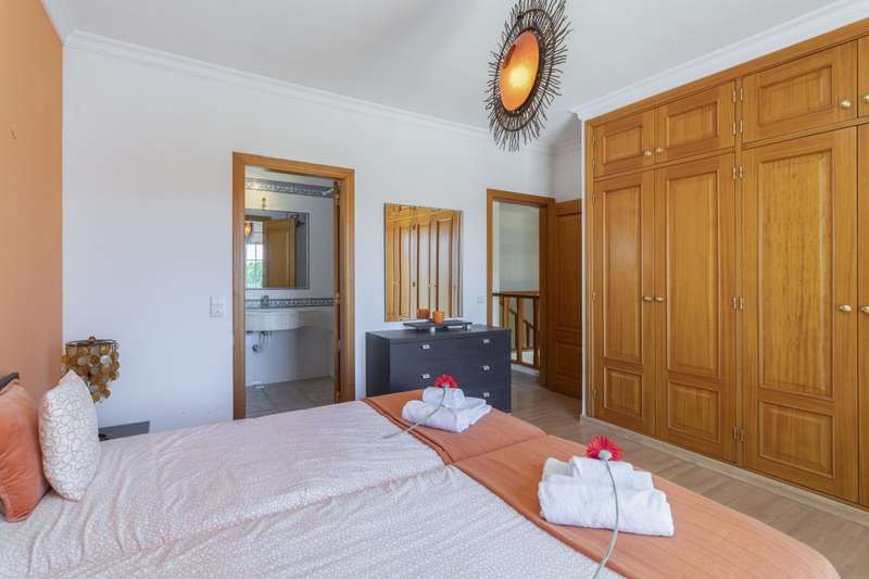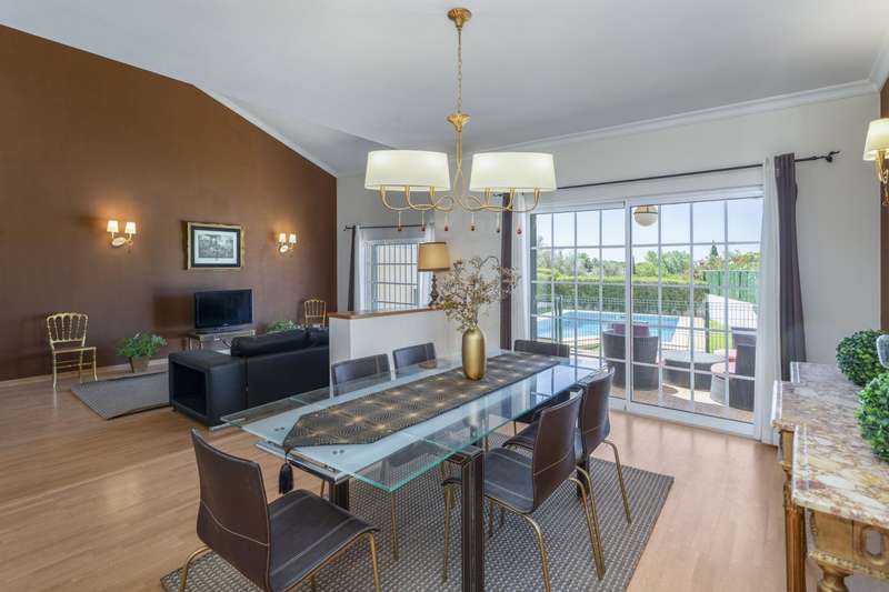 This 3-bedroom villa with pool is situated in the exclusive Encosta das Oliveiras in Vilamoura, a perfect location for those seeking tranquillity and convenience in the Algarve. With a sophisticated and practical distribution over three floors, this property offers the ideal balance between comfort, privacy and quality of life. On the ground floor, the generous open-plan social area includes an elegant living and dining room with a fireplace, providing direct access to the outside, while the fully equipped kitchen is ideal for socializing. The first floor is a real haven, with three spacious bedrooms with built-in closets, one of which is en-suite. Outside, the villa has a beautiful garden, a terrace with a barbecue and a pleasant outdoor dining area. The fantastic swimming pool is the perfect place to relax and enjoy the sun. The basement includes a garage with capacity for up to three cars and ample storage space . The property is also equipped with air conditioning and a security system, offering even more comfort and peace of mind. Situated in a prime and serene area of Vilamoura, this villa is just a few minutes from the best amenities, services and renowned beaches , and only 30 minutes from Faro International Airport. CHARACTERISTICS: Plot Area: 337 m2 | 3 627 sq ft Area: 303 m2 | 3 261 sq ft Building Area: 303 m2 | 3 261 sq ft Bedrooms: 3 Bathrooms: 3 Garage: 3 Energy efficiency: F FEATURES: 3 bedroom villa 3 floors Garage Swimming pool Equipped