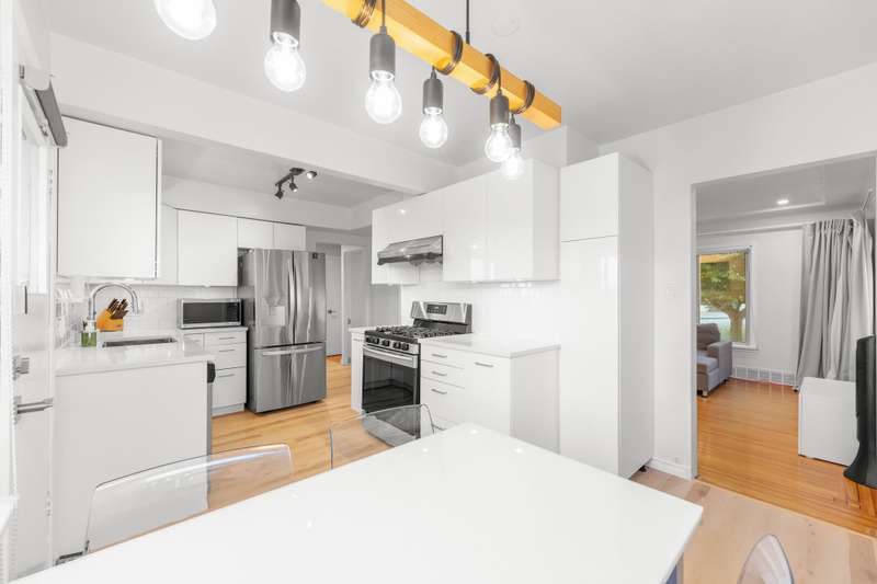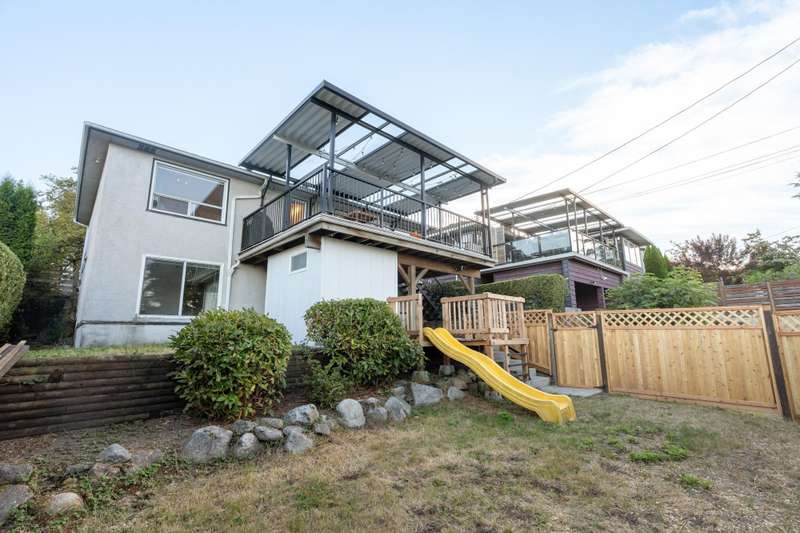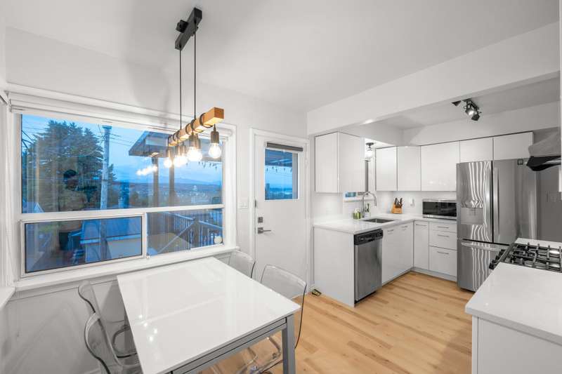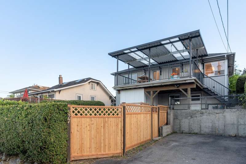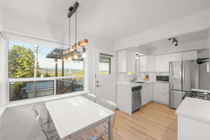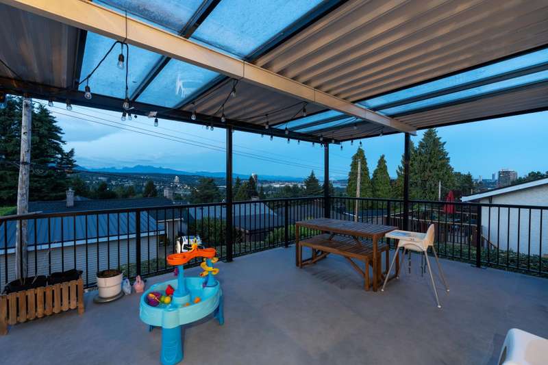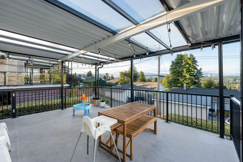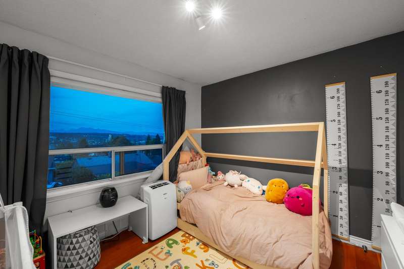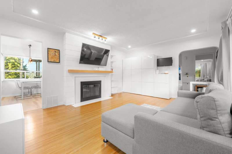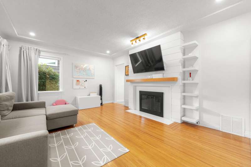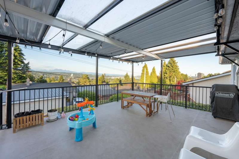 Beautiful 4 bed, 2 bath character bungalow in New West Heights! This 1,881 sqft home features a newer asphalt roof, patio awning, and railing (2021), updated kitchen with granite countertops, cabinets, and backsplash. Upstairs bathroom fully renovated; newer furnace (2018), hot water tank (2019), new cedar fencing 2025 & more. Enjoy oak & fir floors, cove ceilings, 2 fireplaces, cedar deck, and great layout. Separate 1-bed suite downstairs w seperate entrance—ideal for rental or nanny. Back lane access, quiet neighborhood, 3 min to Skwo:wech Elementary, 5 min to École Glenbrook Middle, near shopping, parks, and transit!