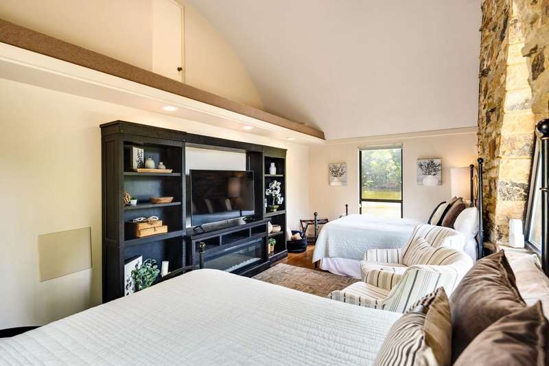 Turnkey Investment or Lifestyle Property ? This beautifully maintained 6 bedroom + Loft + Bonus Room, 4.1 bathrooms home is currently operated as a short-term rental and offers multiple income opportunities. Features include New In ground pool, modern kitchen, spacious living areas, serene 1.49 acre lot. Perfect as an investment property or primary residence. Buyer to verify all local regulations, zoning, and potential rental income. Income history available for informational purposes only; not guaranteed. Bedroom dimension are approx 15x17, 12x21, 12x18, 12x18, 10x17 with 13x13 Loft, 19x19 (2nd primary bedroom) with stove, frig and sink. Plus 17x47 Bonus Room. $50 yearly association cost. Stocked lake Hot tub and paddle boat included (not warrantied). Metal roof. Fiberglass heated salt water pool installed in 2024.