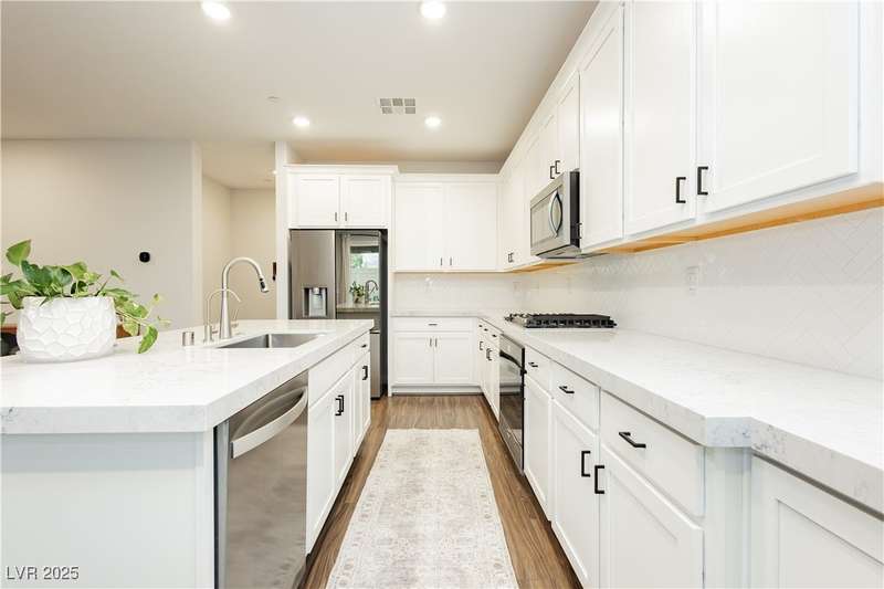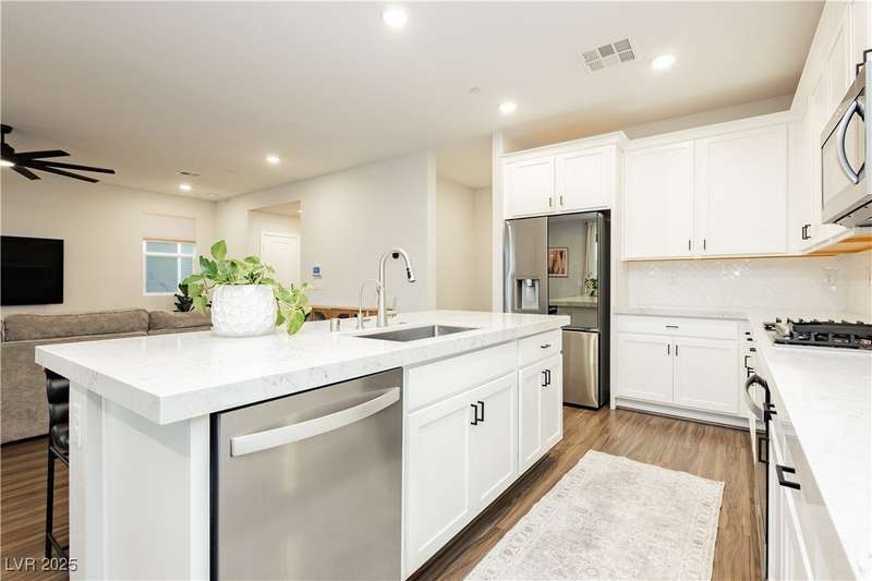 Discover this stunning 3-bedroom, 2.5-bathroom home that shows like a model from the moment you step inside. The beautifully upgraded kitchen is the heart of the home, featuring stainless steel appliances, marble countertops, and elegant finishes perfect for cooking, entertaining, or gathering with loved ones. Recessed lighting brightens the entire downstairs, highlighting the open layout and functional living space. All bedrooms are located upstairs, including a comfortable primary suite with ample space and beautiful bathroom attached with double sinks and makeup table. The backyard has been professionally completed with a $15K investment, providing a finished outdoor area ready for use with no additional work needed. With its stylish upgrades, thoughtful layout, and turnkey condition, this home delivers exceptional value and truly stands out. Don’t miss the opportunity to make it yours!