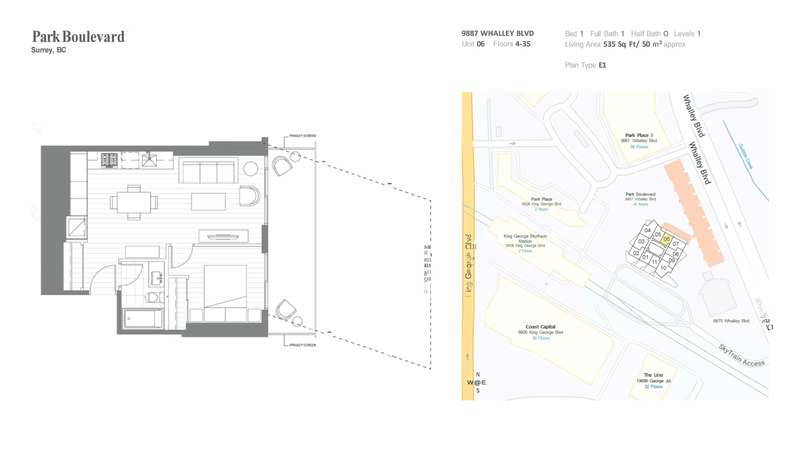 Live the ultimate resort-style lifestyle in the heart of Surrey City at Park Boulevard by Concord Pacific! This stunning, 3-year-new high-floor unit offers breathtaking panoramic views from the 35th floor, combining luxury, tranquility, and convenience. Elevated above the city buzz, enjoy peaceful living with quick access to everything you need: Skytrain, T&T, Surrey Shopping Centre, SFU, UBC (under construction), and Surrey General Hospital --- all just steps away. This move-in ready one-bedroom unit features a perfect layout, A/C, high-end appliances, a large storage locker (6'x4'x6'), and EV parking. Plus, take advantage of premium amenities like a swimming pool, gym, reading/ working room, lounge, BBQ garden, and more. Open house Sat 1-4 May31