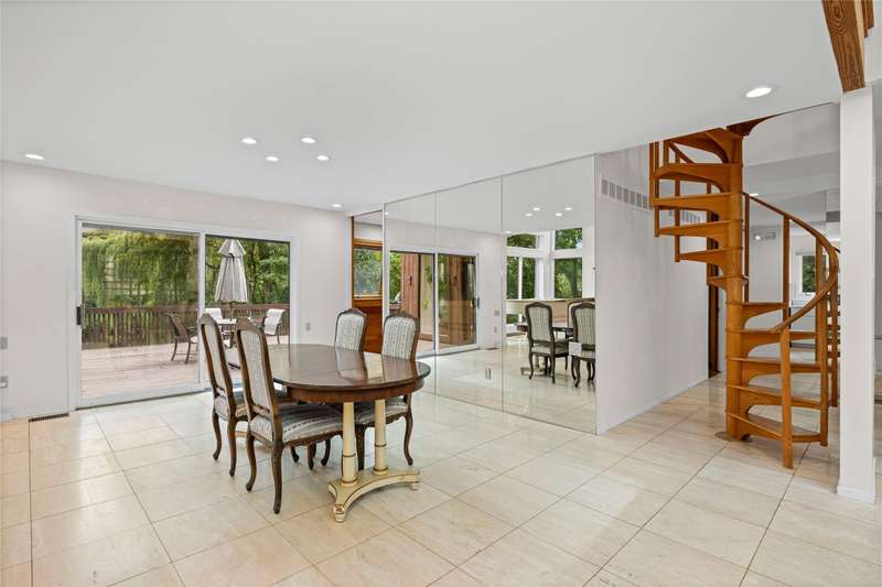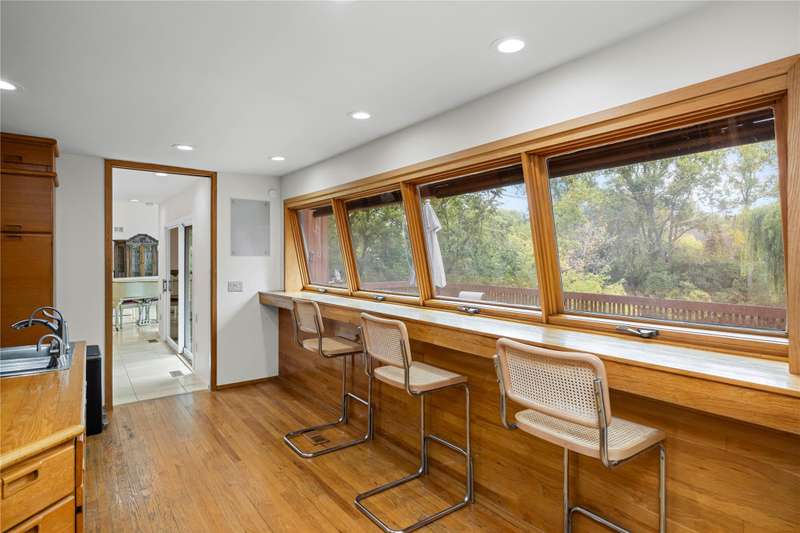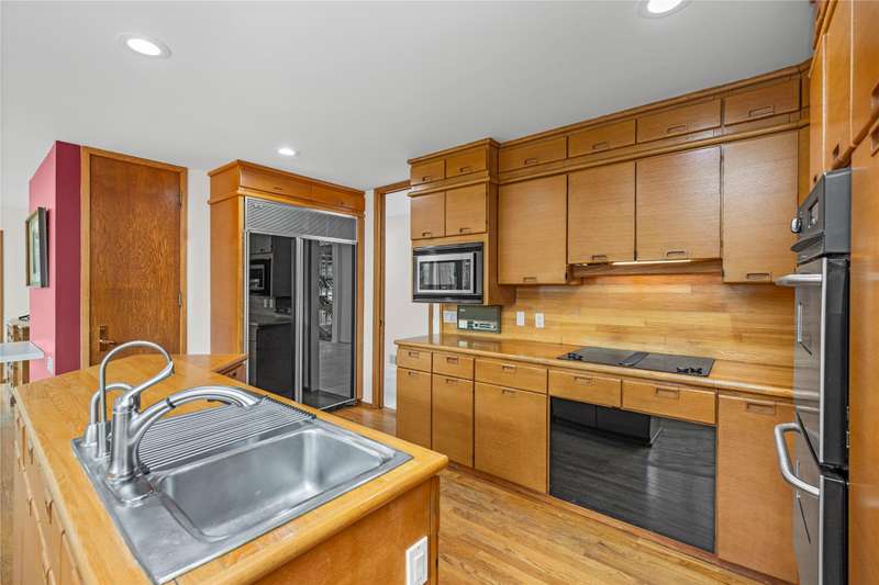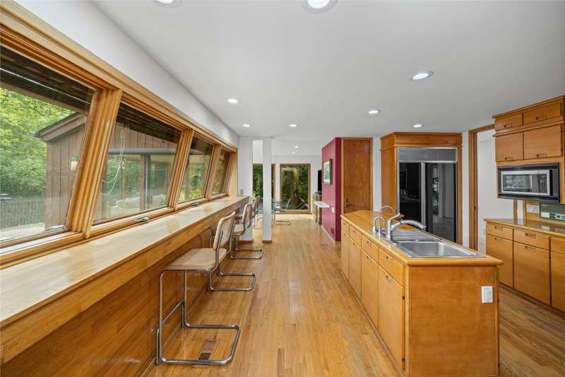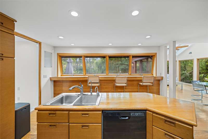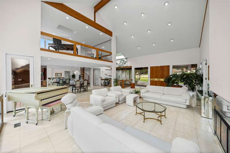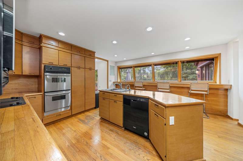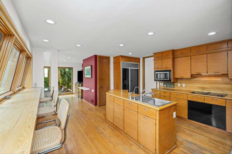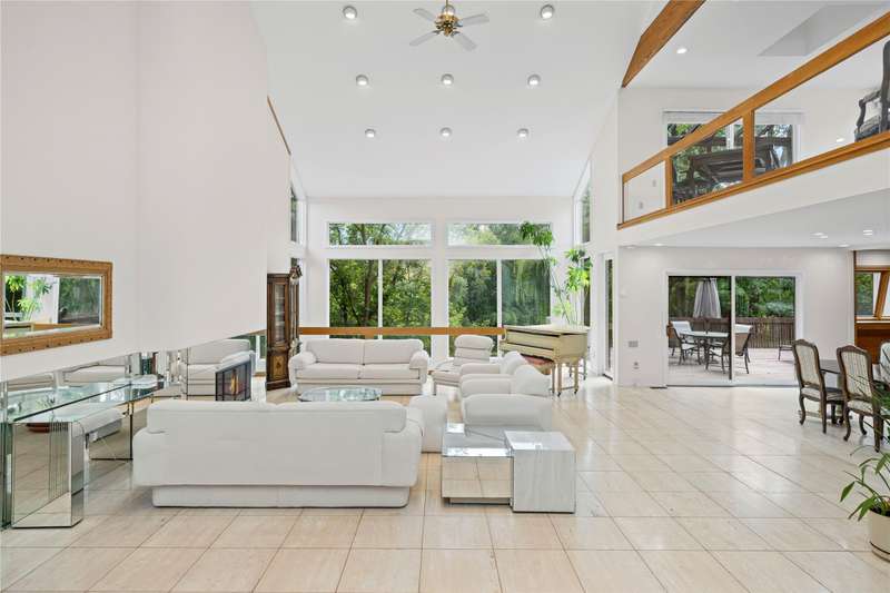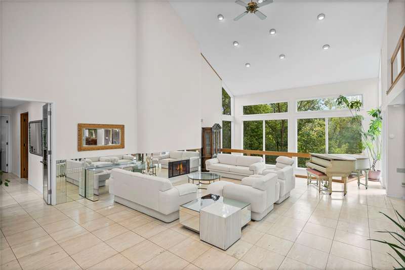 Welcome to this exquisite ranch estate nestled in the heart of West Bloomfield, meticulously designed and crafted by renowned architect David Lubin and being offered by it's original owners. This stunning residence seamlessly blends sophisticated architectural elements with luxurious water-front living. Step inside to soaring ceilings in the expansive great room, adorned with floor-to-ceiling windows that showcase breathtaking water vistas. The gas fireplace and elegant travertine flooring create a warm, inviting ambiance perfect for entertaining or relaxing. The gourmet kitchen is a chef’s dream, featuring high-end appliances, abundant cabinet and counter space, a generous walk-in pantry, and an oversized nook/ living room overlooking the tranquil water—ideal for casual dining or a morning coffee. A striking spiral staircase ascends to a versatile loft area, complete with its own gas fireplace, balcony overlooking the water, and panoramic views of the entire first floor. The primary suite offers a private retreat with natural hardwood floors, soaring ceilings, and a private balcony overlooking the water. His and her walk-in closets lead to a luxurious private ensuite. The second main-level bedroom boasts a large walk-in closet, a private ensuite, and versatile space suitable for an office or lounge area. The finished walk-out lower level adds approximately 3,400 square feet of versatile living space, featuring two additional bedrooms, a full bathroom, and a half bath. A spacious entertaining area with floor-to-ceiling windows offers stunning views of the backyard and water, providing an ideal space for relaxation or entertaining. Located in the vibrant West Bloomfield community, this exceptional home is served by the award-winning Bloomfield Hills Schools. Experience luxurious waterfront living in this architecturally and functionally stunning estate.