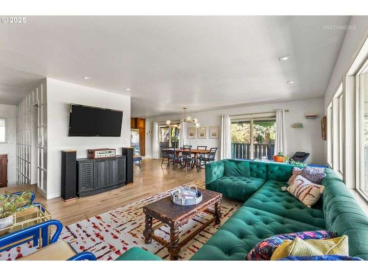 Perched on a park-like .35-acre lot in West Linn, this swanky 1973 split-level is all clean lines, big views, and laid-back sophistication. Floor-to-ceiling windows frame the drama of Mount Hood while flooding the home with light. The circular main-level flow was made for hosting—whether it’s a cocktail soirée or Sunday brunch. Highlights that make you look twice: Views for days: Sweeping Mount Hood vistas from the main living room and wrap-around deck. Entertainer’s dream: Open-concept living, dining, and a spacious eat-in kitchen with deck access. Primary suite escape: Main-level retreat with en-suite bath. Space to spread out: Daylight lower level with family room, bonus room, fourth bedroom, and laundry/half bath. Modern comforts: Beautiful oak hardwood floors throughout the living areas of the upper level, newer forced-air gas heat, and central air, and updated lighting. Neighborhood swimming pool – just 2 minutes away. Homeowners are one of 35 members/owners. Buyers have option to purchase membership for $2,500 from homeowners without having to wait year plus on the waiting list. The sleek 1970’s contemporary design gives a treehouse-like sense of privacy while the oversized lot offers room to play, garden, or just relax under the PNW sky. Whether you’re sipping coffee at sunrise or hosting under the stars, this is the place to live your best mod life. Enjoy living near Marylhurst Heights Park!