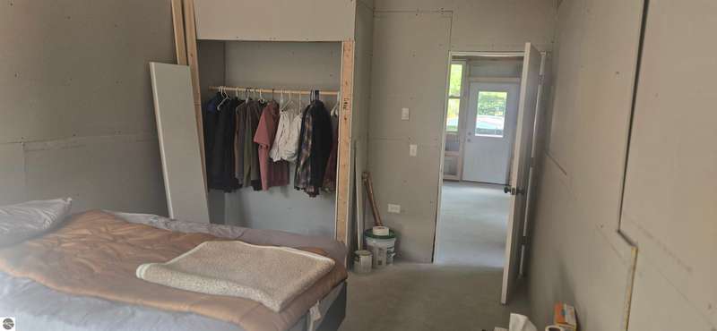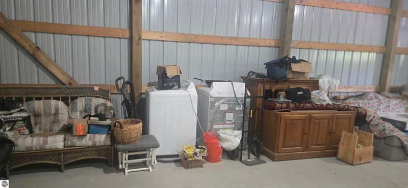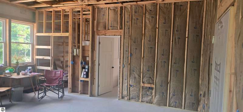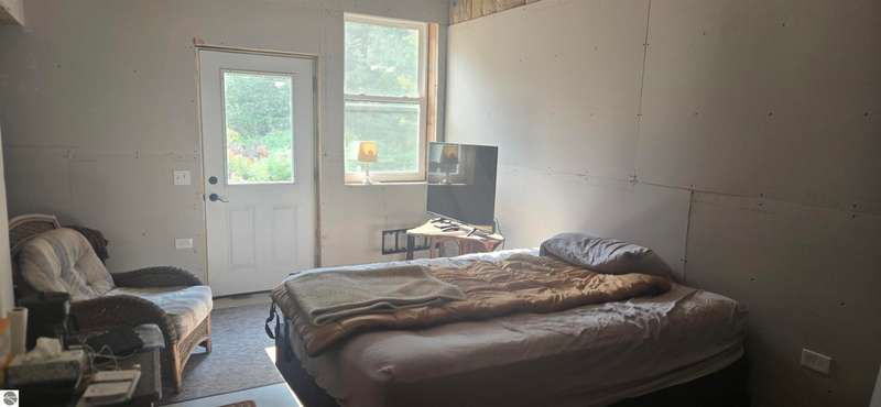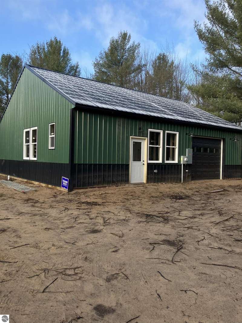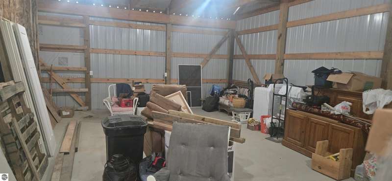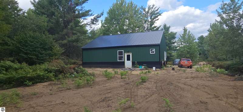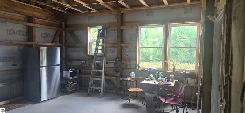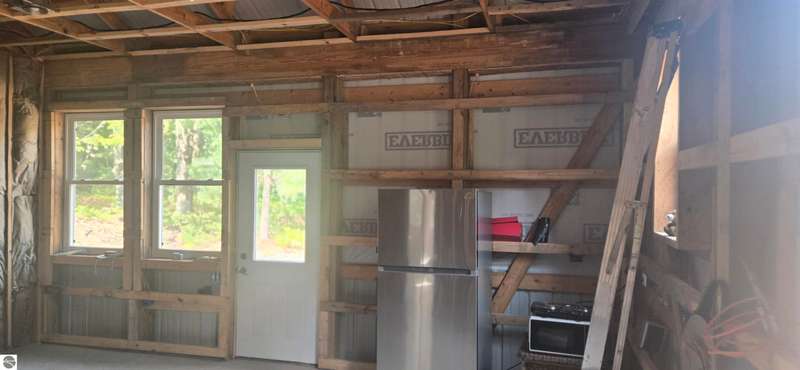 Truly a unique opportunity to create your own barndominium retreat right on the 15th hole of the Lakes of the North Golf Course! The big ticket work is already done -- the shell is up, cement floors are in, the well and septic are complete, and the interior is partially framed, waiting for your finishing touch. Originally designed as a barndominium with garage, the 36' x 40' barn is thoughtfully divided: one half for comfortable living space, the other for a spacious two-car garage. Inside, most walls are already framed to include a full bath, mechanical/laundry area, and an open-concept kitchen/living room. The primary bedroom is mostly drywalled, and some plumbing is in place for water and septic through the cement slab. Even better -- some appliances and fixtures are included: a refrigerator, washer/dryer, new toilet, and shower enclosure (still in boxes) are all ready to be installed. Beyond your property, Lakes of the North offers an unbeatable lifestyle: Championship golf course, Clubhouse with restaurant and bar, Beautiful indoor pool & tennis courts, Fitness center, ORV and Snowmobile trails, a Private airport & lake access privileges. This is your chance to own not just a property, but a lifestyle -- with the flexibility to finish it exactly the way you want. Opportunities like this don't come often.