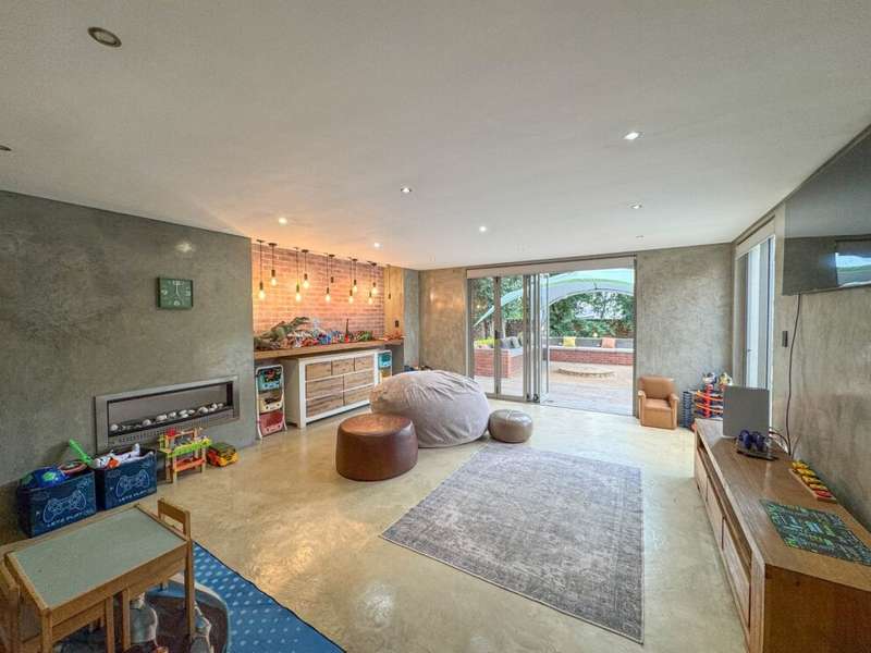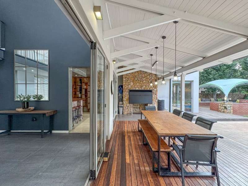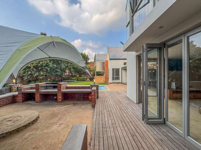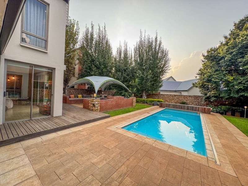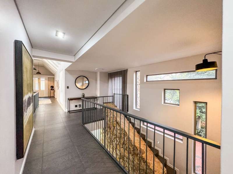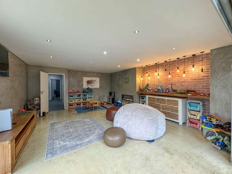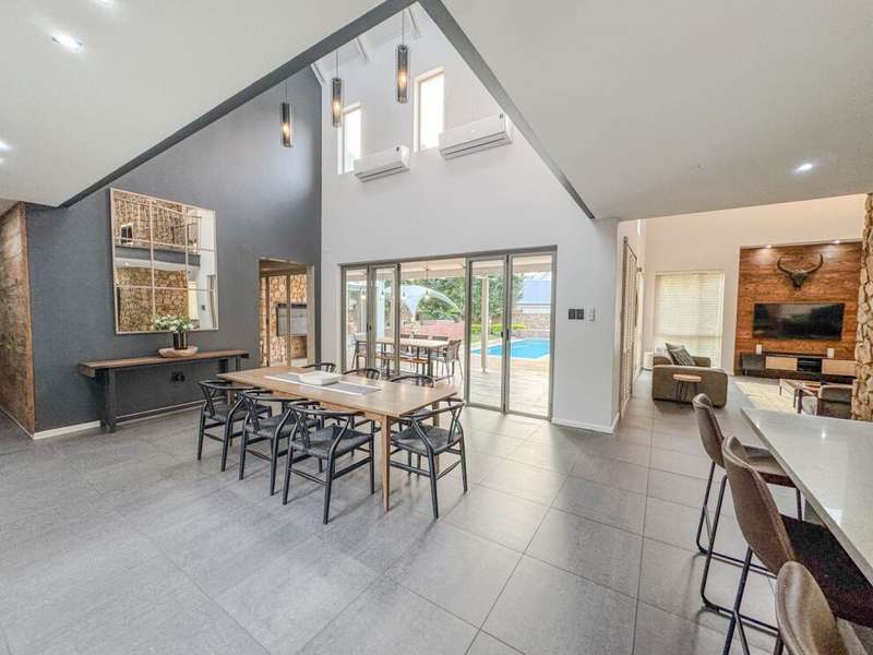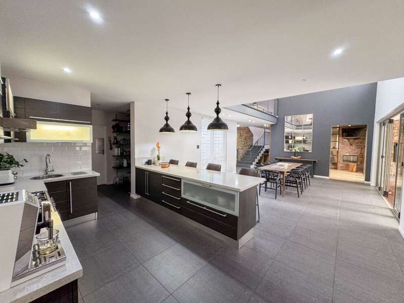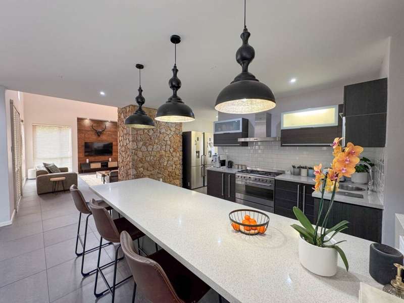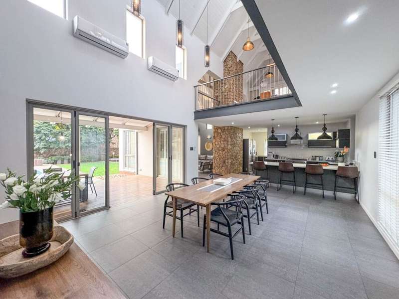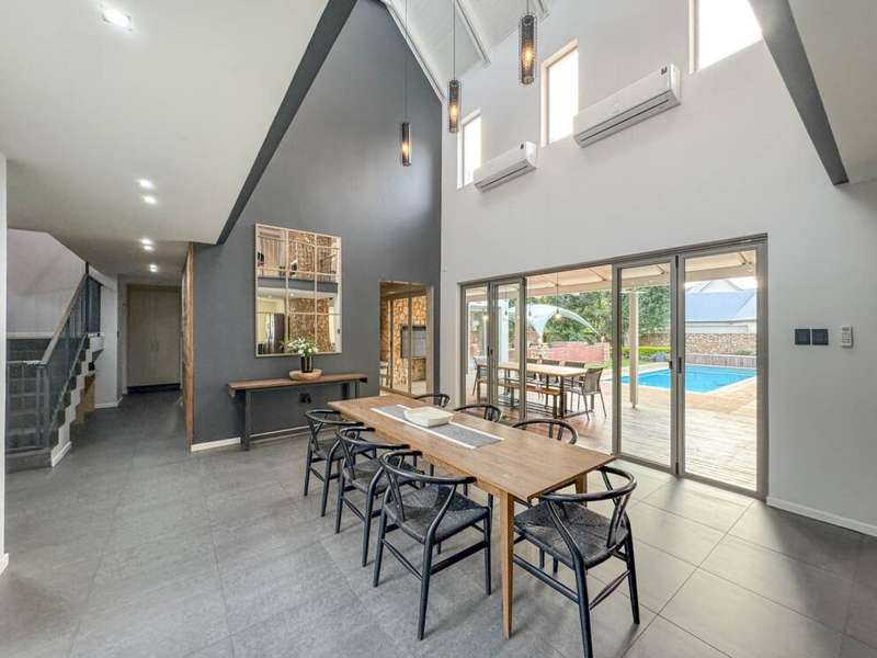 Exclusive Mandate. Step into contemporary luxury with this stunning 5-bedroom, 4-bathroom home located in the highly sought-after Southdowns Estate, Centurion. From its impressive double-volume ceilings to beautifully designed open-plan spaces, this home effortlessly blends style with practicality. Property Highlights: • 5 Generously sized bedrooms and 4 sleek bathrooms, ideal for family living or entertaining guests • Designer kitchen with a large island, premium appliances, and modern finishes flowing seamlessly into the open-plan dining and living areas • Soaring double-volume ceilings and exposed beams enhance the sense of space and light • Versatile pajama lounge, perfect for a home office, gym, or kids’ lounge • A beautifully positioned additional entertainment/lounge area opens directly onto the boma and pool — ideal for kids’ indoor play or casual gatherings • Staff accommodation for added convenience • Entertainment-ready outdoor area with a swimming pool, boma fire pit, and a shaded lounge zone • Private bar area with rustic charm, ideal for hosting • Beautifully landscaped garden with a paved driveway and double garage • Located within a secure, family-friendly estate with top schools and amenities close by. Whether you’re looking for a peaceful retreat or a stylish entertainer’s dream, this home offers it all. Your next chapter starts here – contact me for an exclusive viewing.