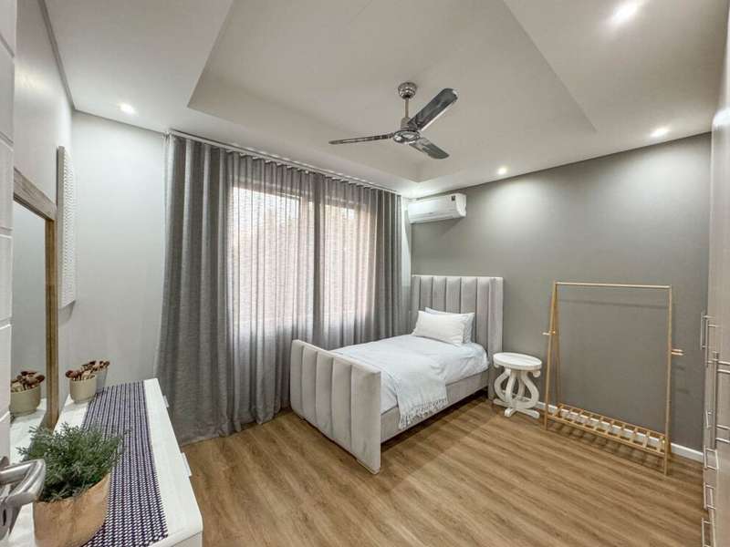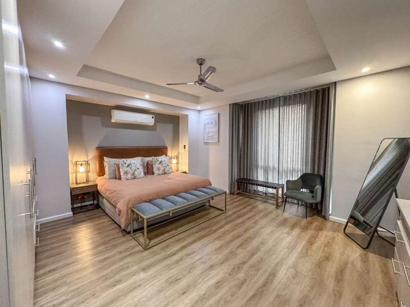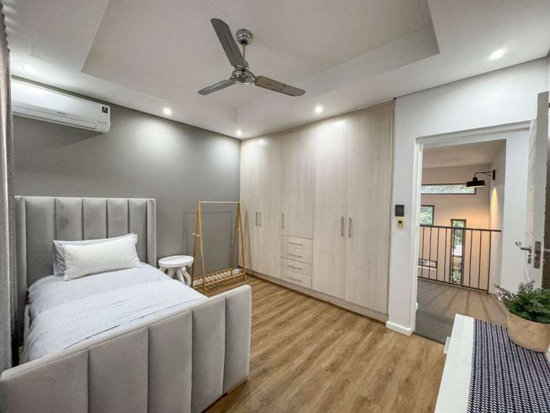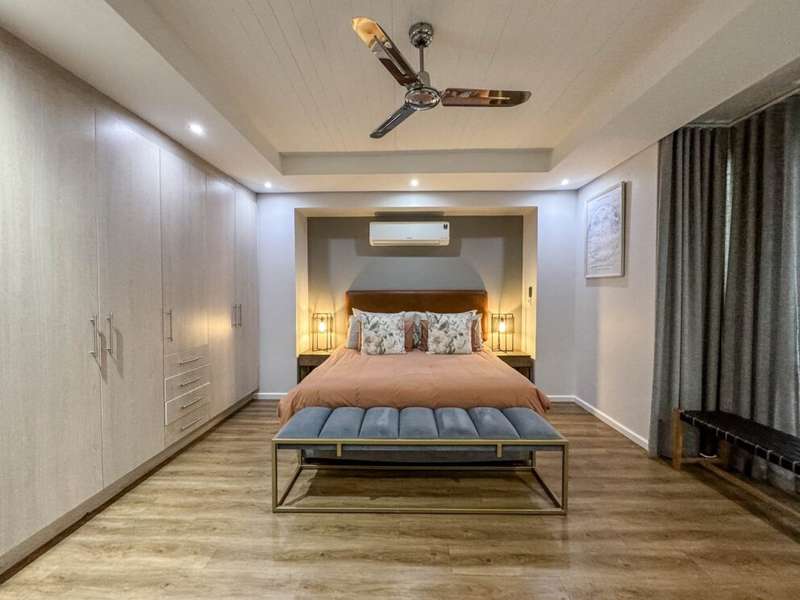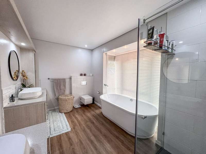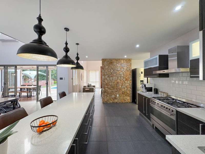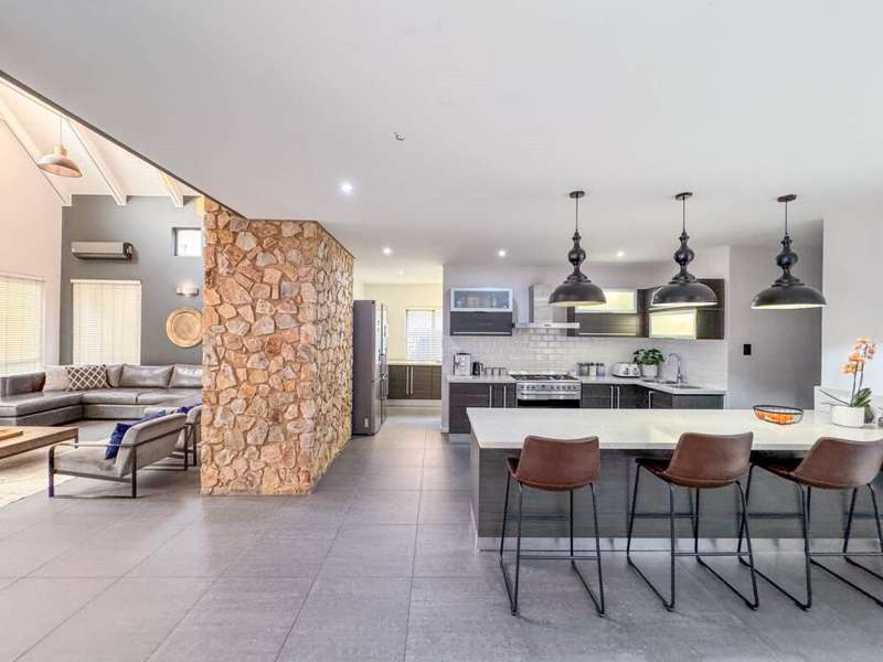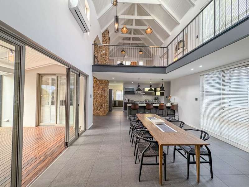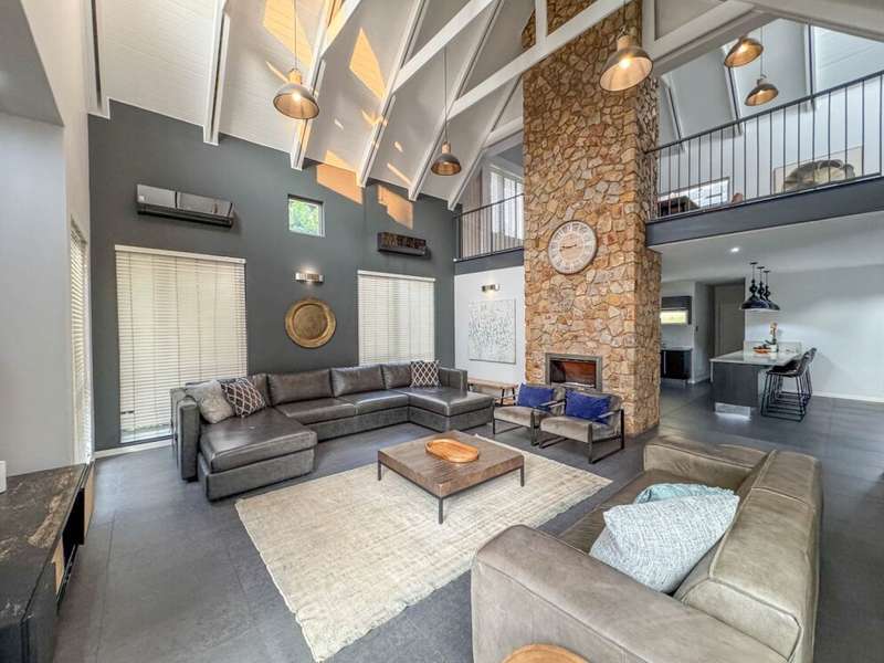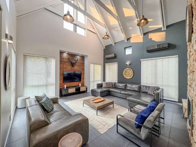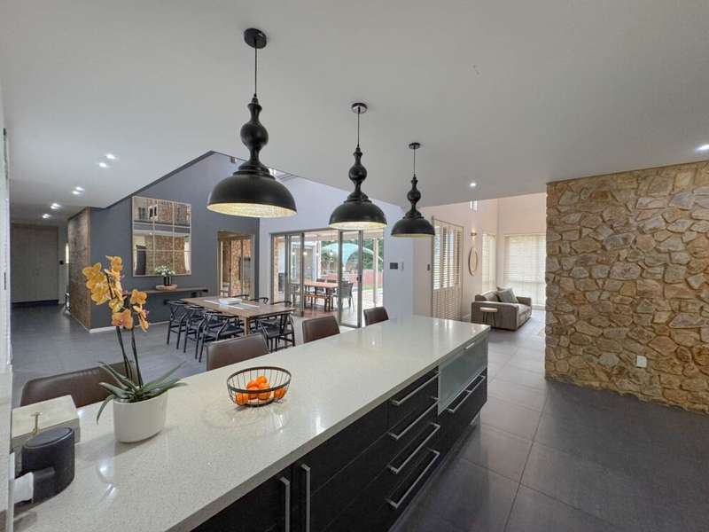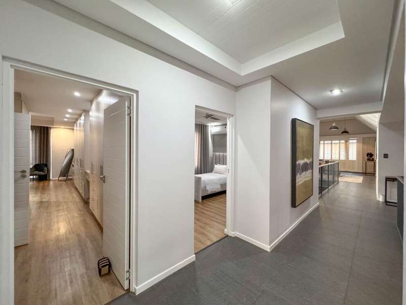 Exclusive Mandate. Step into contemporary luxury with this stunning 5-bedroom, 4-bathroom home located in the highly sought-after Southdowns Estate, Centurion. From its impressive double-volume ceilings to beautifully designed open-plan spaces, this home effortlessly blends style with practicality. Property Highlights: • 5 Generously sized bedrooms and 4 sleek bathrooms, ideal for family living or entertaining guests • Designer kitchen with a large island, premium appliances, and modern finishes flowing seamlessly into the open-plan dining and living areas • Soaring double-volume ceilings and exposed beams enhance the sense of space and light • Versatile pajama lounge, perfect for a home office, gym, or kids’ lounge • A beautifully positioned additional entertainment/lounge area opens directly onto the boma and pool — ideal for kids’ indoor play or casual gatherings • Staff accommodation for added convenience • Entertainment-ready outdoor area with a swimming pool, boma fire pit, and a shaded lounge zone • Private bar area with rustic charm, ideal for hosting • Beautifully landscaped garden with a paved driveway and double garage • Located within a secure, family-friendly estate with top schools and amenities close by. Whether you’re looking for a peaceful retreat or a stylish entertainer’s dream, this home offers it all. Your next chapter starts here – contact me for an exclusive viewing.