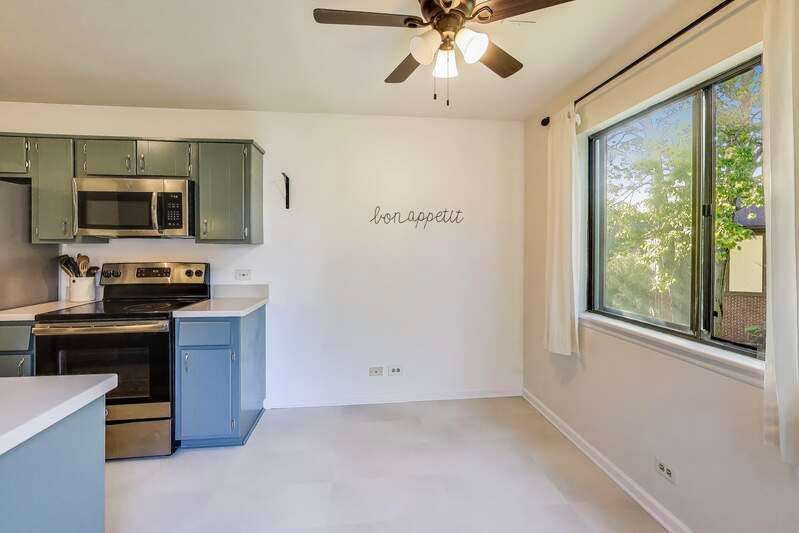Today's lifestyle, ready to call home-with major expenses already done! This inviting second-floor residence features updated mechanicals, newer flooring throughout, all Stainless Steel kitchen appliances, and thoughtfully updated bathrooms. The open, light-filled layout includes a spacious living room with a cozy fireplace and access to a private balcony through sliding glass doors. The separate dining room flows easily from the kitchen, which offers a breakfast area, large window, and a second balcony door for abundant natural light. The generous primary suite boasts a walk-in closet and an updated en suite bath with a walk-in shower, while the comfortable second bedroom offers a large closet and easy access to the redesigned hall bath. Enjoy the convenience of in-unit laundry with a full-size stackable washer and dryer plus extra storage space, as well as an oversized 1-car garage. Major updates include a new furnace (2024), A/C (2024), water heater (2021), kitchen floor (2025), carpet (2022/2023) and refreshed bathrooms. Residents of Lexington Green II enjoy a pool, clubhouse with party room, and playground-all with low monthly HOA fees. Ideally located on a quiet interior street with easy access to parks, shopping, and expressways, and within the attendance area of highly rated Link Elementary, Mead Middle, and Conant High School. Can only be rented to family.