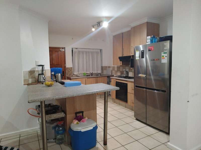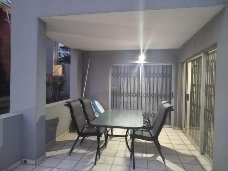 Introducing a modern, secure, and clean 3-bedroom apartment in Sunnyridge. The well-looked-after apartment is found on the ground floor and has an open plan, that flows into the lounge, dining, and kitchen area. The kitchen has built-in cupboards with an oven and a hob. The apartment is tiled throughout. All 3 bedrooms have built-in cupboards. The main bedroom has an ensuite with a shower, it has a sliding door that flows to the balcony. The main bathroom is spacious with a big bathtub. The outside area has a large balcony with phenomenal sea views, the space can be used as an additional dining area. All sliding doors have trelli doors. The apartment is very secure and has a remote-controlled gate and electric fence. The outside area at the back has a small garden. It also has a garage and an additional parking space.