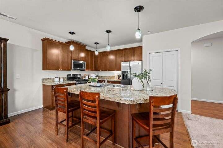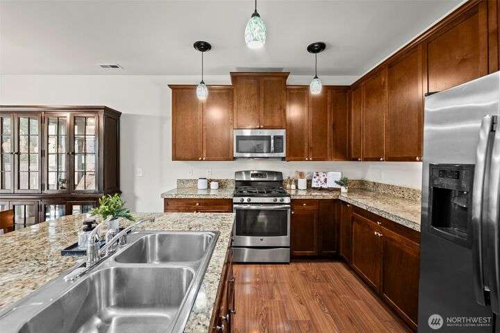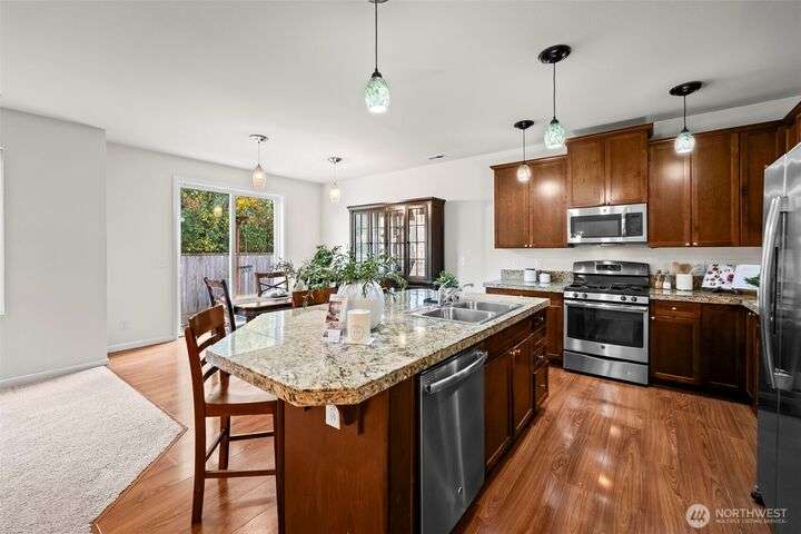 Welcome to Red Hawk, one of Puyallup’s sought-after communities. This spacious 2,696 sq ft home offers 5 bedrooms, 2.5 baths, and versatile living with a main floor office, open concept kitchen, and expansive living areas ideal for gatherings. Upstairs, enjoy a generous bonus room and well-sized bedrooms, including a primary suite with a 5-piece bath and walk-in closet. A 3-car garage adds convenience and storage. Living in Puyallup means access to excellent schools, vibrant shopping at South Hill, popular dining, local parks, and easy commuting options, blending small-town charm with everyday convenience.