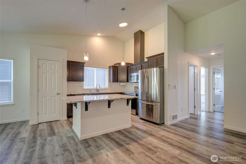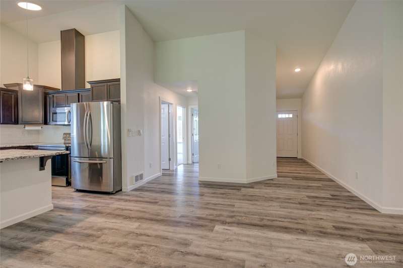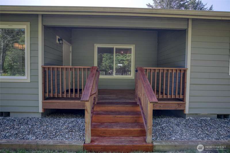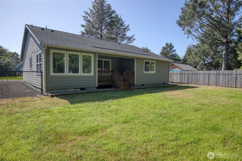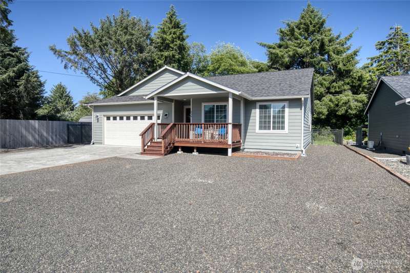 Beautiful home just a half mile from beach access, on a tranquil, serene street! Home features open concept great room/kitchen/dining room. Two of the bedrooms and main bath are on one side of the living space, and the primary suite is secluded on the other side of the home. Primary has a walk in closet and en-suite bath with dual sinks, walk in shower and water closet. Kitchen has slab stone countertops, island eating bar and stainless appliances. Laundry room is between primary suite and two car garage. Home also features covered decks on front and rear of home, and a fully fenced back yard. Room to park an RV out front. Great location for your primary residence or your beach vacation home! Come enjoy living on beach time!