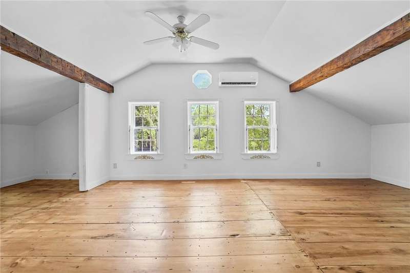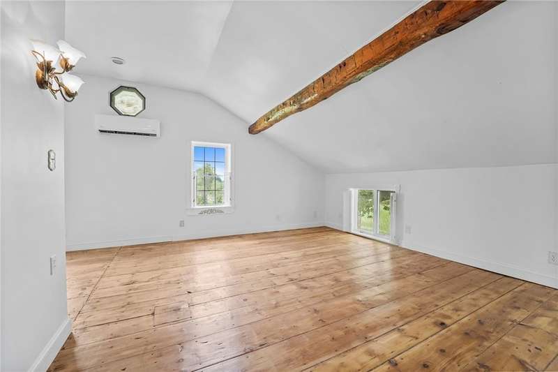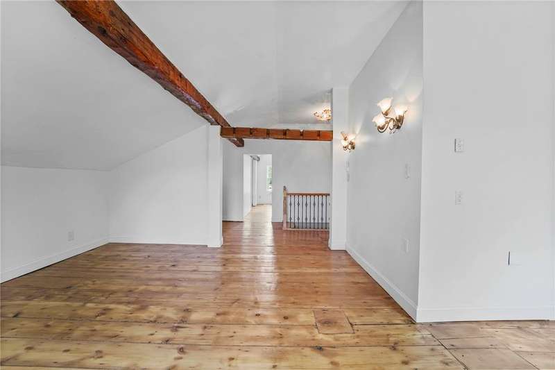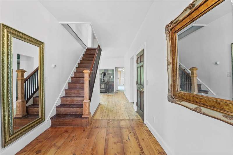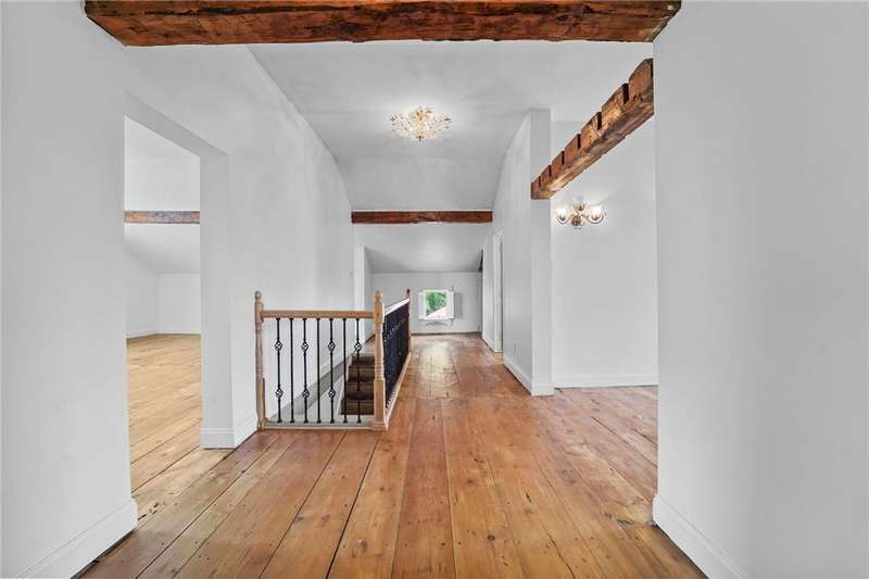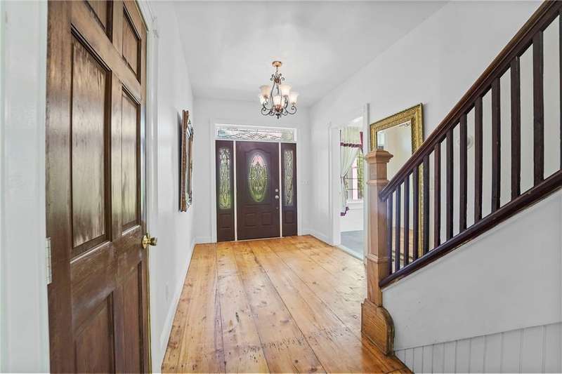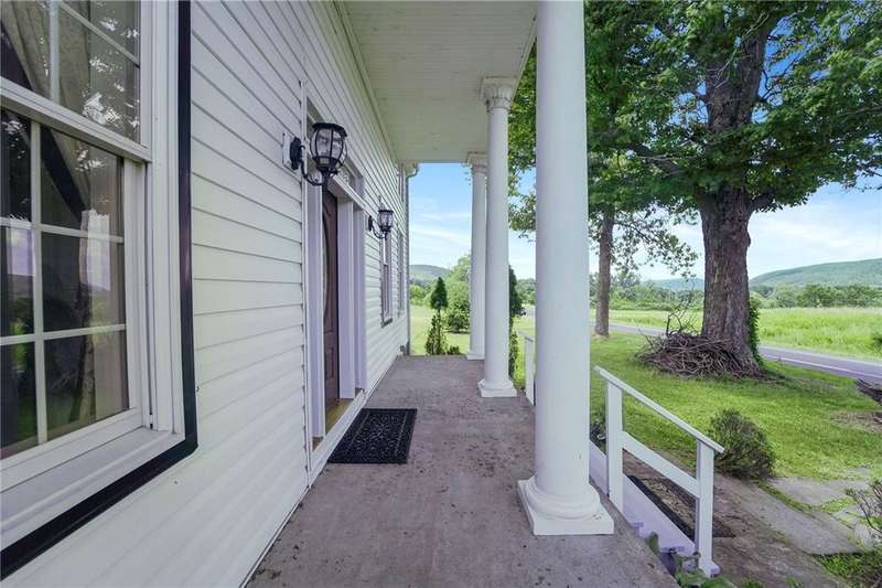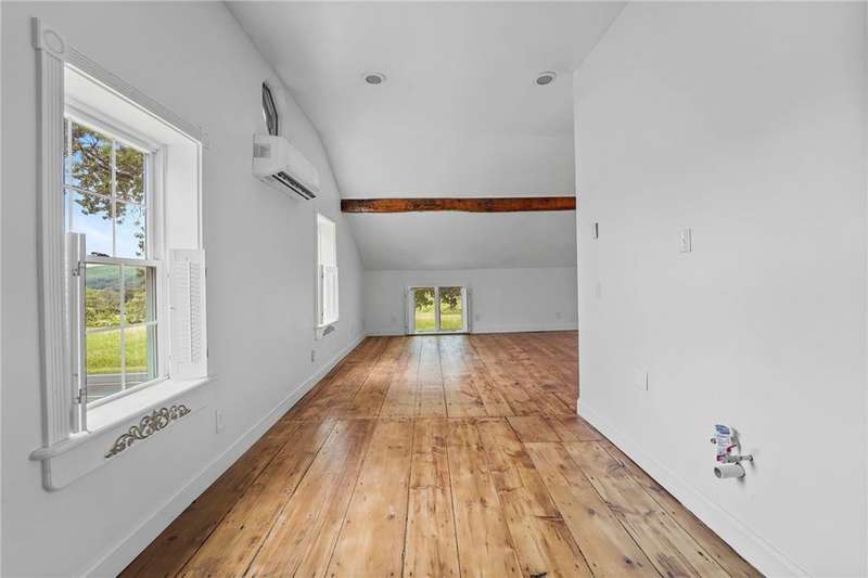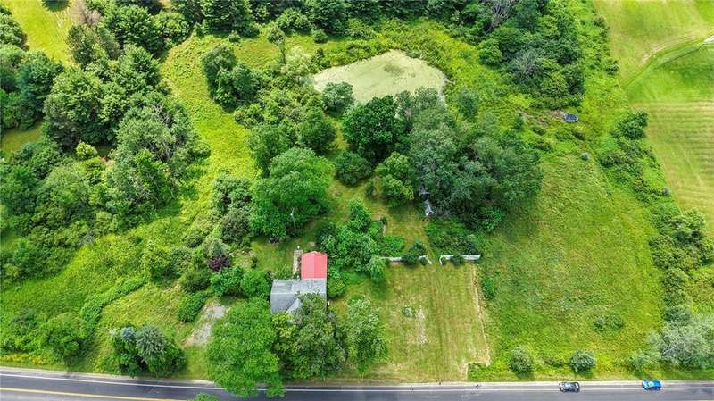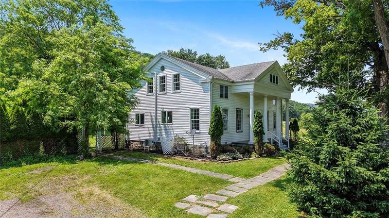 Welcome to this beautifully renovated Greek Revival, blending timeless architecture and history with modern luxury. Nestled on nearly 3 partially wooded acres with a private pond and breathtaking views, this home offers the perfect mix of serenity and convenience. Step inside to discover over 2,000+ sq ft of thoughtfully designed living space, featuring wide plank wooden floors throughout, cathedral ceilings, and large windows that flood the home with natural light. The spacious main-floor primary suite is a true retreat, complete with a massive bathroom and soaking tub. Flexible floorplan includes 3 bedrooms, 2.5 baths, and a potential library, playroom, office, or tailored space. Entertain in the gourmet-ready kitchen or relax in the family room with gorgeous views and stove. Extensive updates including mini-splits, new furnace, and modern septic system?mean you can move in with peace of mind and appreciation. Exposed plumbing upstairs offers the opportunity to potentially add a bathroom, kitchen, or laundry room or simply consider additional space for rooms to suit your needs. Large attached storage area, workshop, or hobby space (not included in the square footage) provides incredible versatility?for craftsman, artists, or storage in addition to the chicken coop and shed. Unique enclosed outdoor entertainment space is a perfect place to unwind! A property like no other and a straight and fast commute to downtown Ithaca!