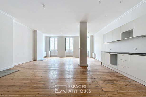 The living space is distinguished by its conviviality and optimal layout. A bright dining room with open and welcoming fitted kitchen opens onto a superb living room. The old parquet floors and interior wooden shutters add a warm and authentic touch.