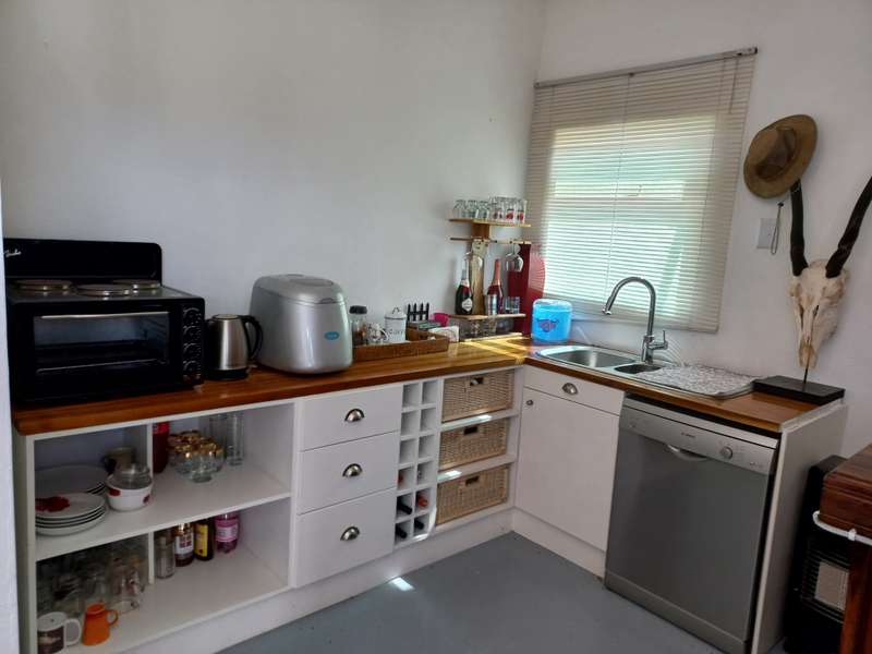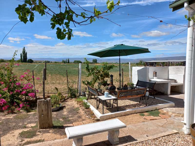 This immaculate, refurbished three-bedroom home, with a modern yet cozy cottage-style flair to it, with a separate Guest-flatlet, is situated in the farmlands on the outskirts of Calitzdorp on the Western Side of the Little/Klein Karoo in the Western Cape Province of South Africa on the famous Route 62. This property is perfect for the family or couple wanting to break from the rat race and change to a country style living. The guest-flatlet is perfect to generate an extra income, also ideal to utilize as a work-from-home office or an artist’s studio. This property has so much more to offer than meets the eye. The property is surrounded with a 360-degree breathless view of mountains and farm lands creating that much needed and welcome peaceful and calm milieu. The main house consists of three spacious bedrooms, all with build-in cupboards, and a full bathroom (bath, shower, basin, and toilet) with gas geyser. The kitchen is fitted with beautiful cupboards, counter tops, and gas stove (gas hob and electric oven combo). The open plan living/dining area has beautiful wooden floors, adding more character of the country/farm feeling, and has a fireplace to keep you warm during the cold winter days and French doors leading to an enclosed veranda, where you enjoy your early morning coffee or late afternoon sundowners. The guest-flatlet is separate from the main house, and has an open plan lounge/bedroom area, kitchenette, and bathroom (with a shower, basin, and toilet with gas geyser). The property has a very large farm-style garage (much larger than your normal size garage) and ample secure off-street parking which includes net-covered carports. The outdoor braai has the most magnificent views of the surrounding farms, mountains, and countryside, allowing ample space for private entertainment. The garden is a typical farm style garden with olive trees, fruit trees, some grape vines, and a vegetable patch, with a water tank and irrigation system. Calitzdorp is a haven for enthusiasts of fishing, bird-watching, 4×4 and other scenic routes, horse-riding, and wine tasting. Calitzdorp is renowned as a centre of the port wine industry in South Africa (also referred to as the Port Capital of South African) with several major wine estates famous for their award-winning products. This property will sell fast - Call me now for a viewing and allow me to connect your heart to this home. Erf Size: 936m² Rates and Taxes: R315 Bedrooms: 3 Bathrooms: 2 Lounge: 1.5 Dining area: 1 Kitchen: 1.5 Guest Flatlet: 1 Parking: 6 Backup water: 1 water tank and irrigation Geysers: 2 Gas Security: Alarm System Pre-paid Electricity