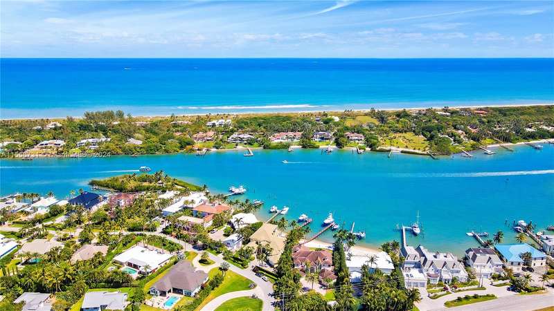 Absolutely Stunning One of a Kind Opportunity to Own on the Direct Blue Water Intracoastal in Martin County Jupiter/Tequesta encompassing .713 Acres of Gated Privacy. This palatial estate home is custom designed and beautifully laid out for entertaining on a grand scale as well as family enjoyment. As you enter through the double doors into the 2 story formal living room complete with Gas Fireplace and Full Wet Bar will greet you with a wall of windows giving way to breath taking Blue Water Views. The Main Level includes Formal Living, Dinning, Chefs Kitchen, Family Room/Informal Dinning,2 Ensuite Guest Bedrooms, Half Bath, Laundry, 3 Car Garage. Second Level Boasts 2 Sumptuous Primary Suites and Baths with Private Balconies overlooking the Intracoastal and another ensuite Guest Bedroom.