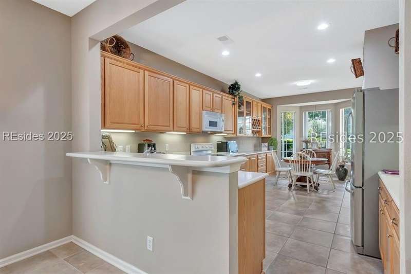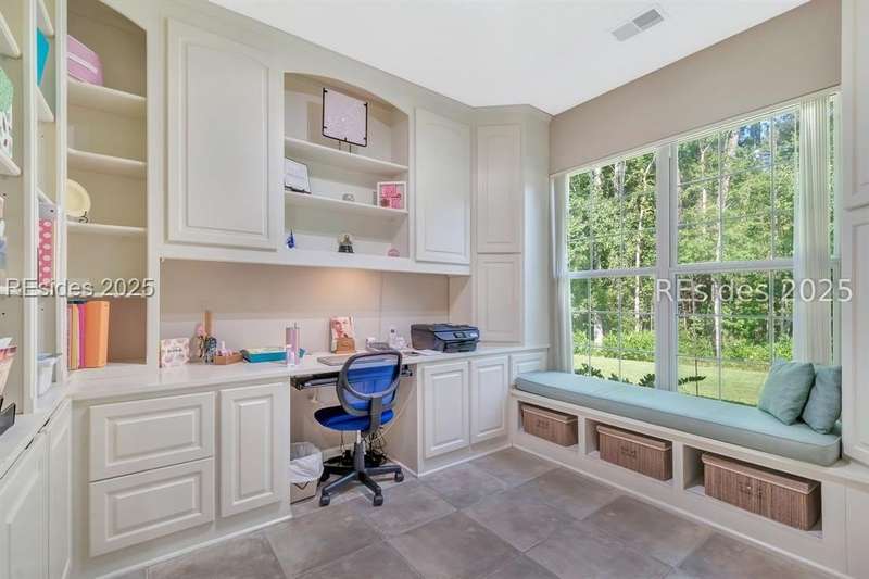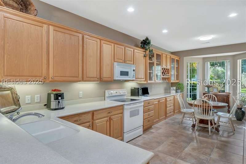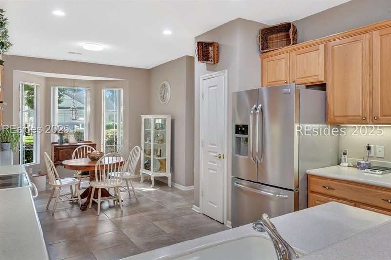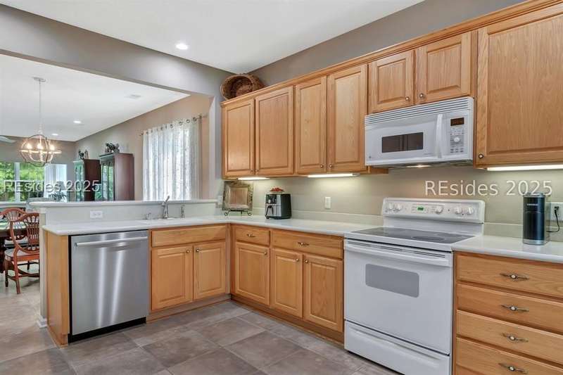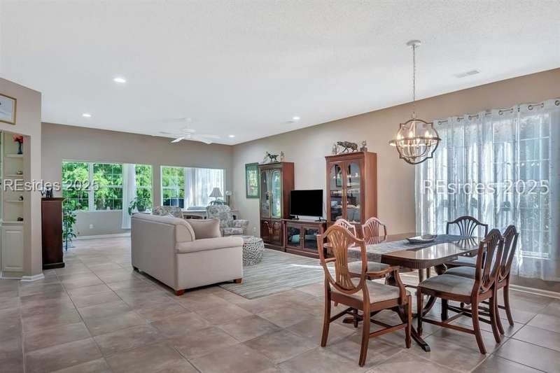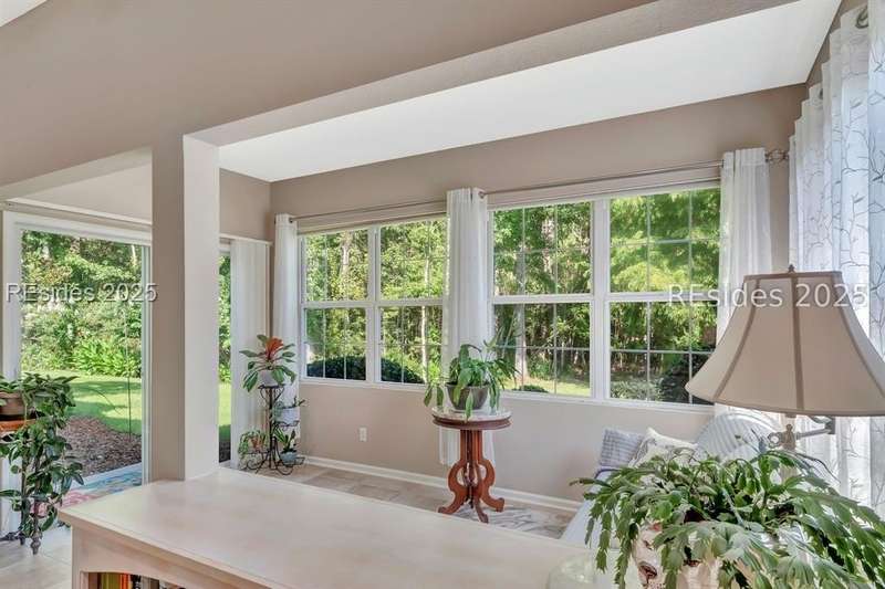 Serene, private, tranquil describes the view from the Carolina room, Primary bedroom and den plus patio. This 2-bedroom, 2 bath Pelican not only offers space but peaceful surroundings. The large eat in kitchen boasts of extra cabinets not often found for all the platters and dishes plus a wire rack. The bay window in the eating area is a bonus. The great room features a bank of bookshelves adding a touch of home. The den also features many built-in including desks and shelves. A charming window seat is also featured. The primary bedroom has a bonus of an extra-large closet. Its a must see. The extended garage is another bonus. This is perfect for anyone wanting the in Sun City lifestyle with the numerous events and amenities offer. A wonderful house to call home!