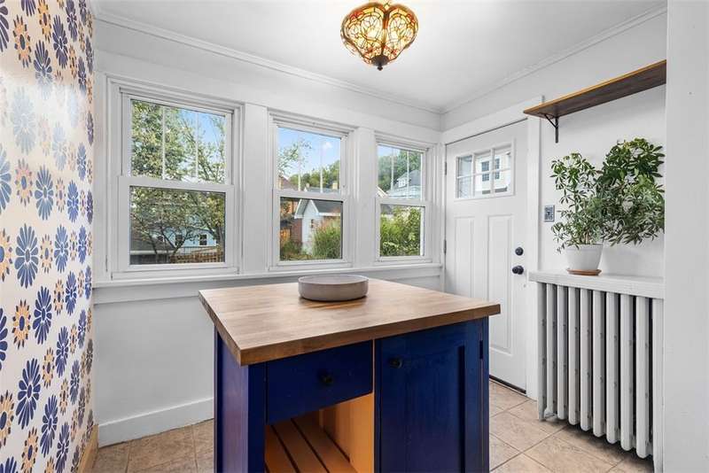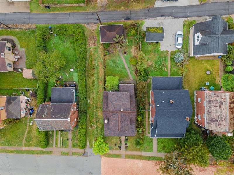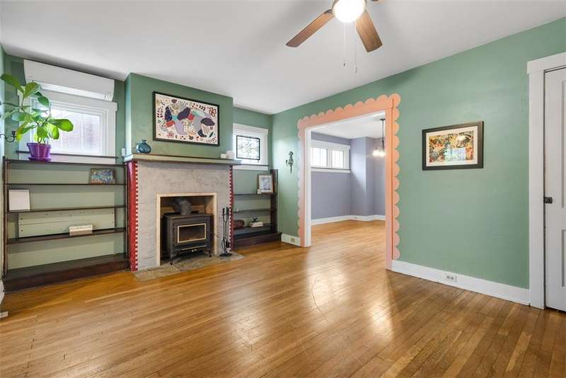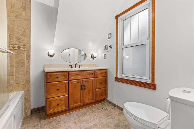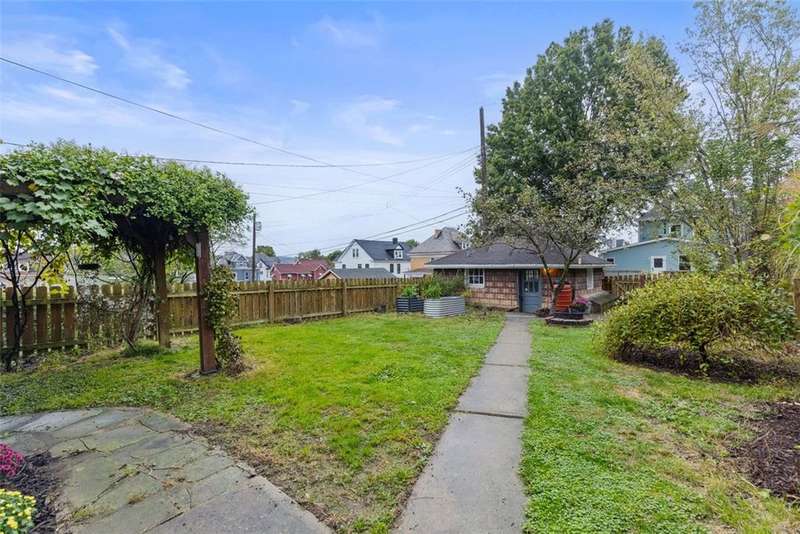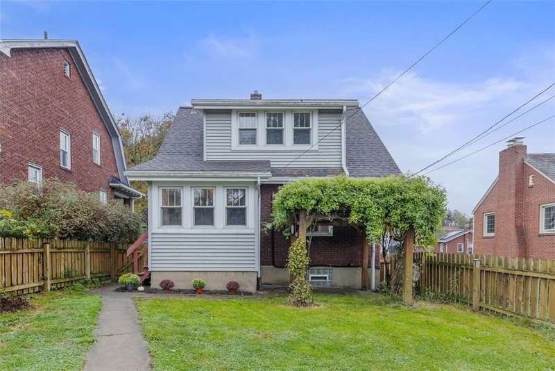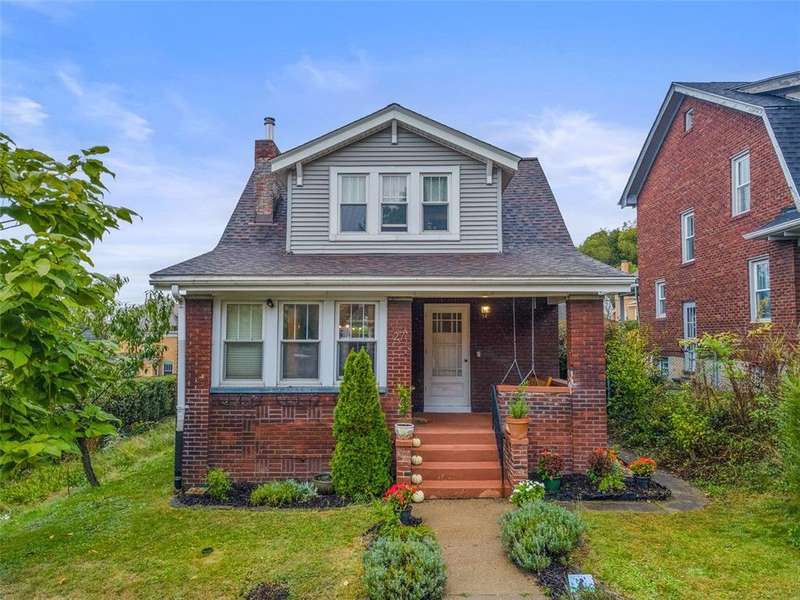 This brick charmer welcomes you with a covered front porch complete with swing. Inside discover charming details blending with modern comfort throughout. The cozy living room features built-ins & a fireplace, perfect for relaxing fall evenings. The spacious dining room & updated powder room are ideal for entertaining. You'll love the bright breakfast nook with butcher block island-from there back door opens to a fully fenced yard- easy access for pets! You'll feel like you're in a secret garden with a pergola & firepit setting the stage for gatherings with friends. Plenty of space remains for play or gardening, plus easy garage access! Upstairs find generous bedrooms, including a custom walk in closet on the primary, & updated full bath. Partly finished basement with room for an office, gym, workshop- name it! Plus large storage rooms & laundry area. AND a newer roof for peace of mind. Walkable to parks, coffee shop, school, & shopping. Don't miss the chance to make this charmer yours!