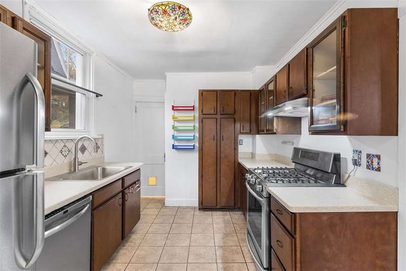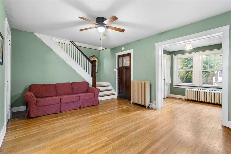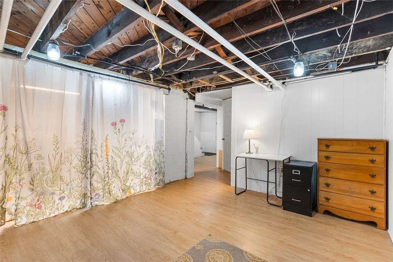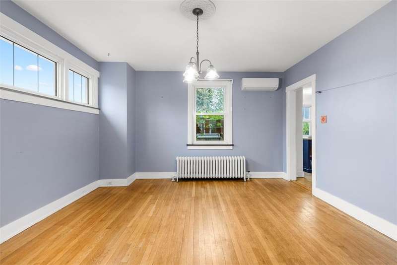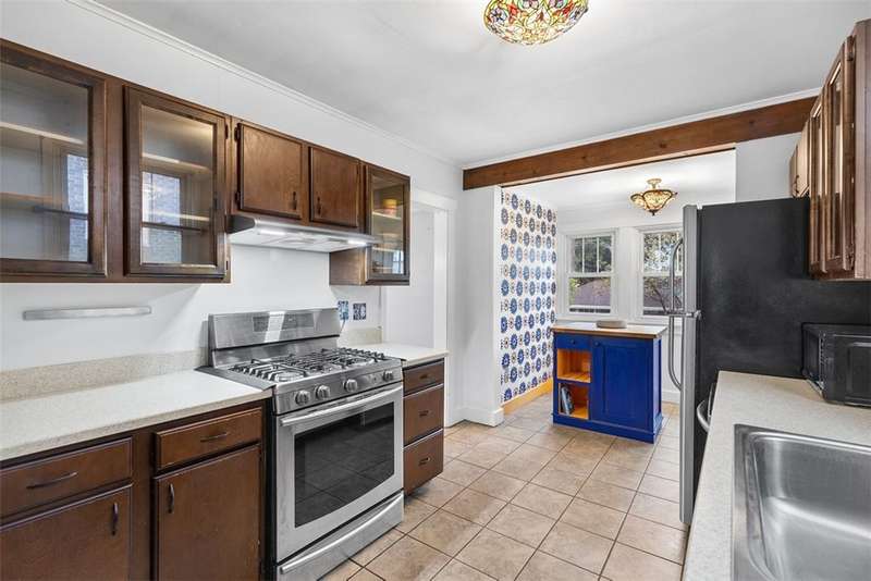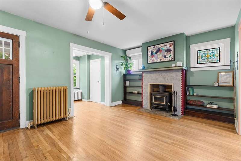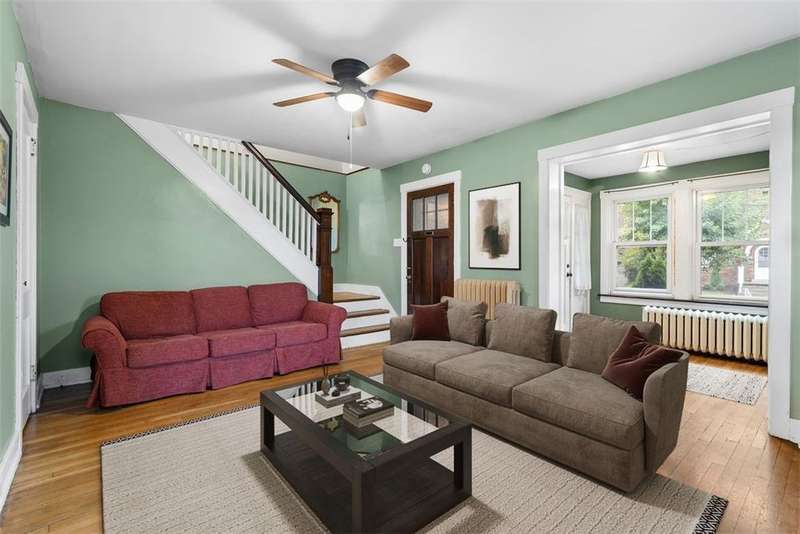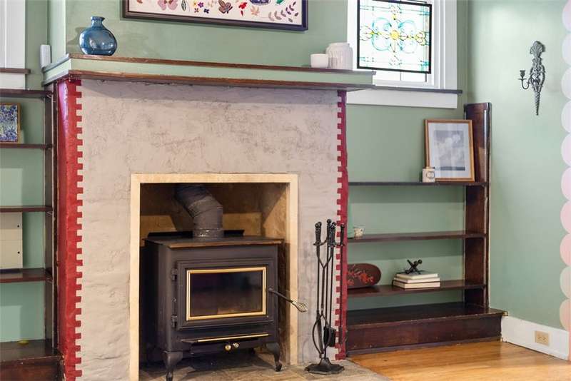 This brick charmer welcomes you with a covered front porch complete with swing. Inside discover charming details blending with modern comfort throughout. The cozy living room features built-ins & a fireplace, perfect for relaxing fall evenings. The spacious dining room & updated powder room are ideal for entertaining. You'll love the bright breakfast nook with butcher block island-from there back door opens to a fully fenced yard- easy access for pets! You'll feel like you're in a secret garden with a pergola & firepit setting the stage for gatherings with friends. Plenty of space remains for play or gardening, plus easy garage access! Upstairs find generous bedrooms, including a custom walk in closet on the primary, & updated full bath. Partly finished basement with room for an office, gym, workshop- name it! Plus large storage rooms & laundry area. AND a newer roof for peace of mind. Walkable to parks, coffee shop, school, & shopping. Don't miss the chance to make this charmer yours!