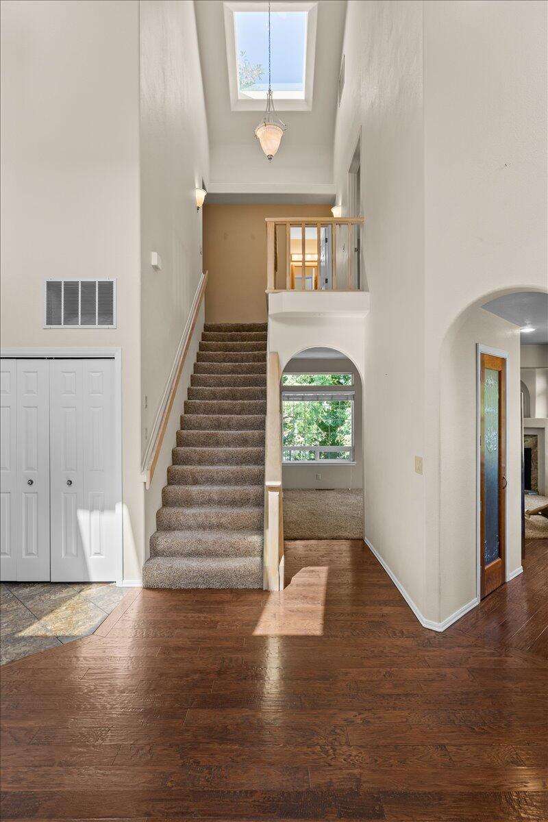 Welcome to this grand home in the highly desirable Rogue Terrace Estates, offering 3 bedrooms, 3 full baths, plus a spacious 525 sq. ft. bonus room. The main level is filled with natural light and sweeping river views, showcasing an open floor plan with a living room, dining area, kitchen, and family room with a cozy gas fireplace. A full guest bath, laundry area, and attached 2-car garage complete this level. Upstairs, you'll find a generous primary suite with a walk-in closet, two guest bedrooms, an additional full bath, and abundant storage. The lower-level bonus room offers endless possibilities—ideal for an additional bedroom, entertainment space, home office, or studio. All three levels feature decks that invite you to relax and take in the breathtaking views of the Rogue River and surrounding mountains, along with the soothing sounds of the water.