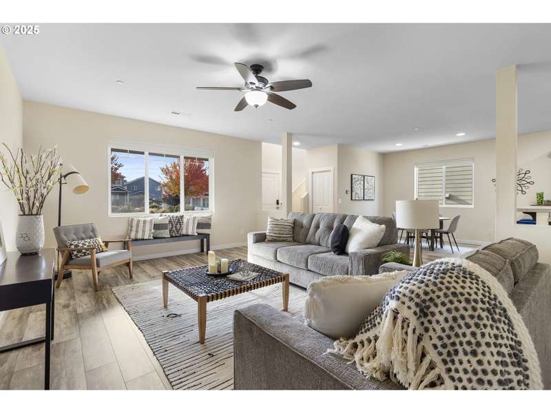 BEST PRICE IN THE AREA! Welcome to this inviting 4-bedroom, 2.5-bath home built in 2018, located in the highly sought-after Green Mountain community of Camas. Featuring 1,902 square feet of comfortable living space, this home offers a perfect blend of style, function, and convenience. The main level showcases laminate flooring throughout and an open-concept layout with a spacious kitchen and dining area. Enjoy stainless steel appliances, a gas burner range, eating bar, and pantry—ideal for everyday living or entertaining. The oversized living room overlooks the generous front yard, while the large covered front patio adds a charming outdoor living space. Upstairs, you’ll find all four bedrooms along with a conveniently located laundry room and custom blinds in all rooms. The primary suite features an en-suite with a walk-in closet, walk-in shower, and ceiling fan for year-round comfort. Outside, the back patio and expansive side yard offer an oversized cement area—perfect for gatherings, playtime, or outdoor dining. A 2-car attached garage is located at the back of the home for easy access. Residents of Green Mountain enjoy a resort-style community with amenities including a pool, hot tub, BBQ area, park, and scenic walking trails. Conveniently located near shopping, dining, Camas Meadows Golf Course, and Lacamas Lake, this home offers everything you need in one of Camas’s most desirable neighborhoods. You are also able to apply for boundary acceptance into Camas schools if you desire that option. THIS IS A MUST SEE!!
