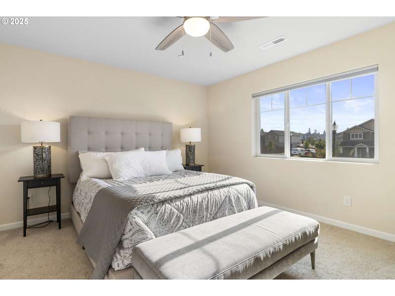 PRICE IMPROVEMENT! Welcome to this inviting 4-bedroom, 2.5-bath home built in 2018, located in the highly sought-after Green Mountain community of Camas. Featuring 1,902 square feet of comfortable living space, this home offers a perfect blend of style, function, and convenience. The main level showcases laminate flooring throughout and an open-concept layout with a spacious kitchen and dining area. Enjoy stainless steel appliances, a gas burner range, eating bar, and pantry—ideal for everyday living or entertaining. The oversized living room overlooks the generous front yard, while the large covered front patio adds a charming outdoor living space. Upstairs, you’ll find all four bedrooms along with a conveniently located laundry room and custom blinds in all rooms. The primary suite features an en-suite with a walk-in closet, walk-in shower, and ceiling fan for year-round comfort. Outside, the back patio and expansive side yard offer an oversized cement area—perfect for gatherings, playtime, or outdoor dining. A 2-car attached garage is located at the back of the home for easy access. Residents of Green Mountain enjoy a resort-style community with amenities including a pool, hot tub, BBQ area, park, and scenic walking trails. Conveniently located near shopping, dining, Camas Meadows Golf Course, and Lacamas Lake, this home offers everything you need in one of Camas’s most desirable neighborhoods.