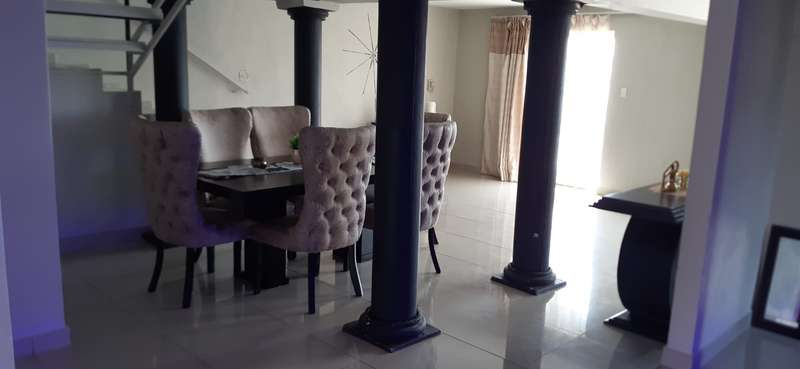 Welcome to your dream home! Nestled in a serene neighborhood, this exquisite double-storey house offers the epitome of luxurious living. Featuring four spacious bedrooms and four-and-a-half bathrooms, this home is perfect for growing families or those who love to entertain guests. The expansive living and dining areas provide ample space for relaxation and social gatherings, adorned with polished tiles that exude elegance and charm. Step outside to your private oasis – a delightful patio and balconies beckon you to enjoy the beautiful views and tranquil surroundings. With double garages and ample storage space, convenience meets functionality effortlessly. But that's not all – this home comes with domestic quarters comprising two additional bedrooms and a bathroom, perfect for accommodating guests or staff members. Plus, there are storage rooms to keep your belongings organized and tidy. While most of the house boasts exquisite finishes, there are some unfinished areas awaiting your personal touch. A blank canvas ready for your creativity, whether it's the kitchen or other spaces needing the final touch-ups and painting. Don't miss this opportunity to make this house your forever home. Schedule a viewing today and start envisioning the endless possibilities of luxury living in this stunning property!