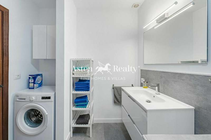 The building is distributed over three floors, offering multiple possibilities. Currently, there are two apartments and an office. One of the apartments consists of a kitchen, living room, one bedroom and a bathroom, while the second apartment is more spacious and has a living room, kitchen, three bedrooms and two bathrooms, providing comfortable and functional spaces for living or renting. On the roof terrace, there is a laundry room, a tool room and a large terrace with stunning sea views, a perfect space to relax, enjoy the surroundings or even transform it into an exclusive chill-out area.