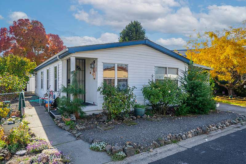 Location, location, location! Looking for a charming home in a 55+ community? If so, this is the one for you! This 1990-built home features 3 bedrooms, 2 bathrooms, 1056 sq ft, open floor plan, all appliances included, vaulted ceilings, enclosed patio, spacious yard, attached carport, detached shed, landscaped front and back, & much more! Space rent is $845 per month and includes clubhouse, pool, & gym. Great opportunity for anyone looking for a low maintenance property close to everything Medford has to offer!
