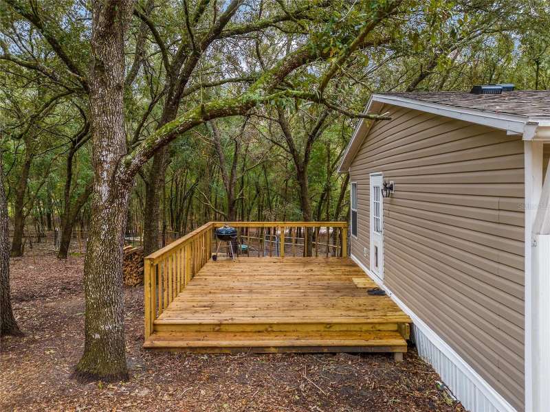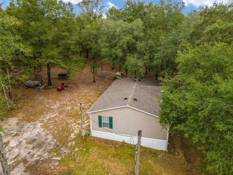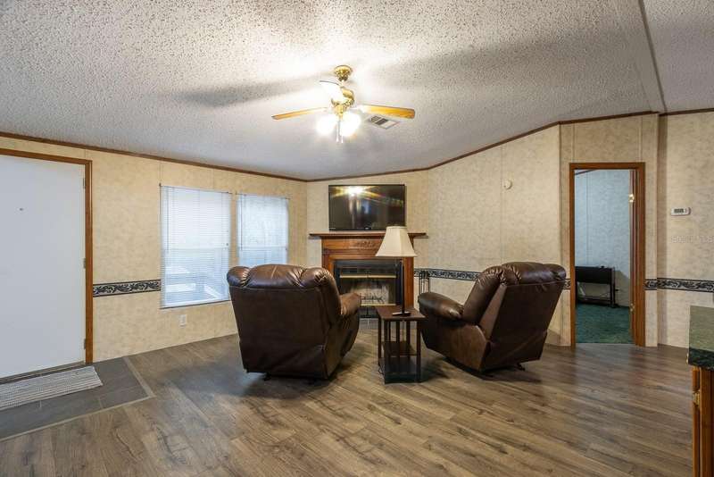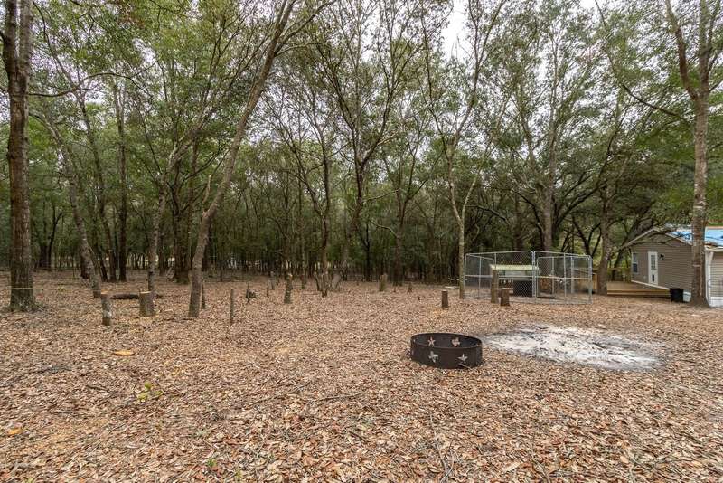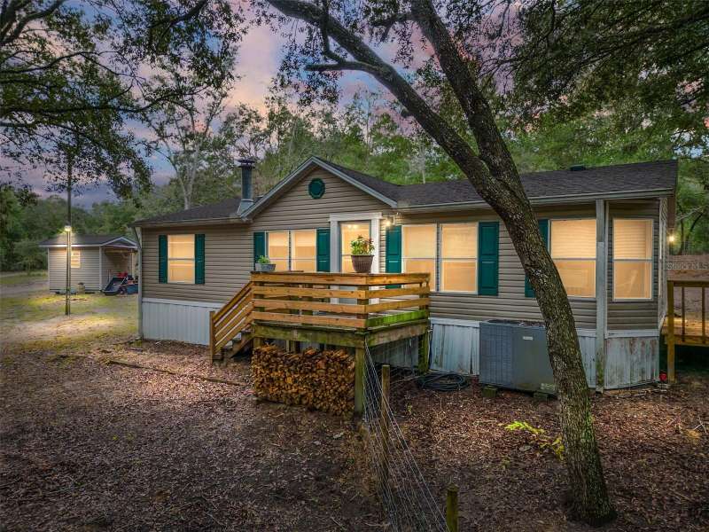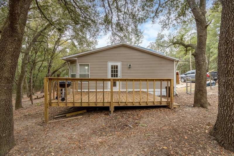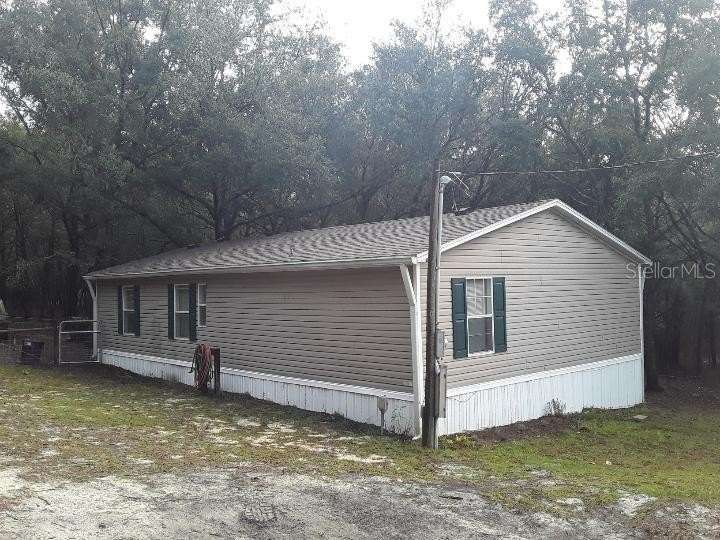 Forget that you’re in Florida on this beautiful 2.5 acre property. This 3 bed/ 2 bath 2001 manufactured home has a bright and airy feel with its tall ceilings and open concept. The kitchen boasts plenty of cabinets, bar seating, a farm style sink, and a breakfast nook. The living room has a real wood burning fireplace and built-in shelves. The master bedroom has a walk in closet. The master bathroom has a separate garden tub and shower. There is an indoor laundry room with the washer and dryer included. Only 2 of the bedrooms have carpet (clean) and there is a flooring credit so you can pick your own colors later. The real beauty is outside. Stand on your wood deck and admire your 2.5 glorious acres (made up of two 1. 25 acre lots). Want to build another home? Live on the ready made home now, while you build on the second acre next door. Wooded and quiet yet just 3 or 4 minutes from the Save-A-Lot grocery store, Ace Hardware, Dollar General Market and various restaurants. Only 12 minutes from the Super Walmart. Best of all, the AC is only 5 years old and roof is brand new. Low utility bills with CFEC. No HOA fees or restrictions. NOT in a flood zone. Good cell service. Internet and Satellite available. CFEC Electric has been installing high speed fiber in the surrounding areas and plans to install high speed fiber within the next 2 years.