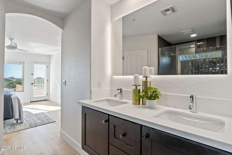 Beautifully remodeled from floor to ceiling in McDowell Mountain Ranch! OVER 200K in top quality upgrades. NOT A ''FLIP'' -owners renovated for themselves with no corners cut! 4 bedrooms and 3.5 baths, including 2 primary suites--one upstairs and one downstairs. Interiors shine with fresh paint, luxury plank flooring, quartz counters, custom cabinetry, and GE Profile appliances. Chef's kitchen boasts a gas range, microwave drawer, and beverage fridge built into the island. Spa-inspired primary baths feature glass walk-in showers, floating vanities, backlit mirrors, and a soaking tub in both suites. New hardware and designer lighting t/o. The resort-style backyard highlights fresh turf, new landscaping, heated spa with spillway fountain, updated irrigation with sunset & mountain views! WOW Award-winning McDowell Mountain Ranch is a premier master-planned community located in North Scottsdale. Situated at the foothills of the McDowell Mountains, enjoy the beautiful desert serenity yet also have all the conveniences of living "in-town" just outside the neighborhood. The 101 Freeway is 5 minutes away, as well as restaurants, shopping, groceries, and so much more!