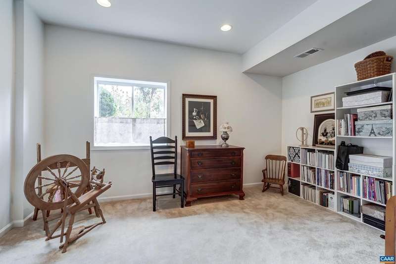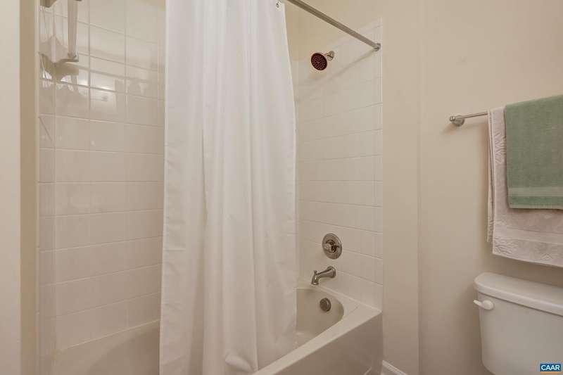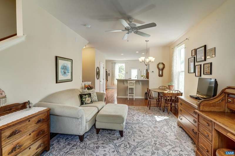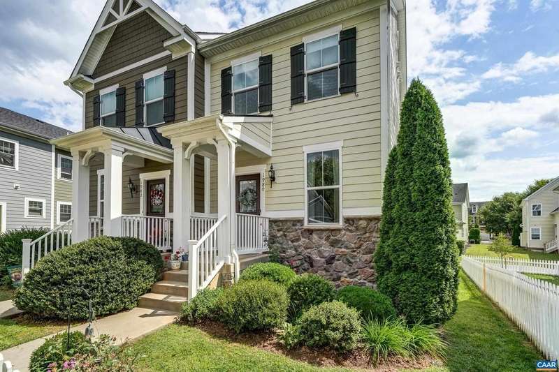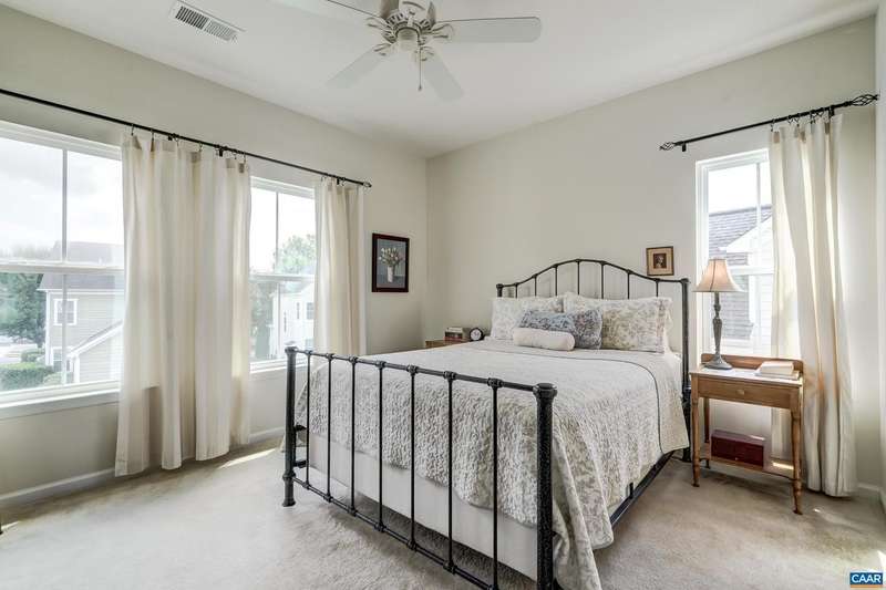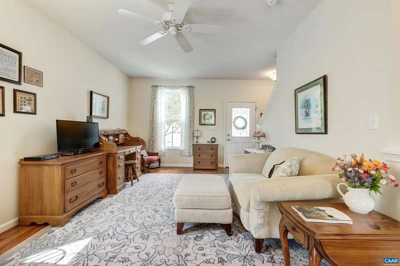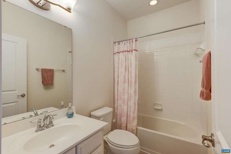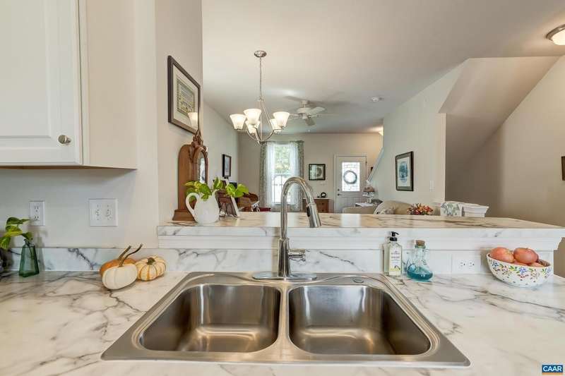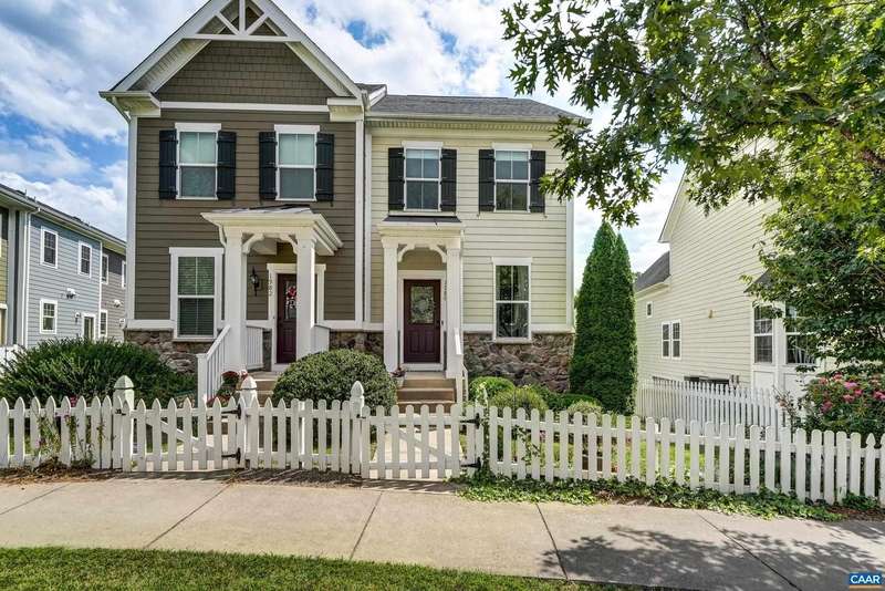 This charming duplex in Wickham Pond with a full basement is a rare find in Western Albemarle! With white picket fence and beautiful gardens and landscaping, this home looks like it's straight out of a fairytale. This light-filled home features an open main level floor plan with hardwood floors, two bedrooms on the second level plus a full basement that could be a great in-law or teen suite! The great room/dining area opens to the practical kitchen with white cabinets, island work surface and white appliances with stainless steel refrigerator. Upstairs, the primary bedroom features an ensuite bathroom with tub/shower combo, and two large closets. The second bedroom, full bathroom and stacked washer/dryer complete the second floor. The lower level boasts a large rec room, third bedroom and accessible bathroom with zero-step shower. Two private parking spots at the rear of the home too!,White Cabinets